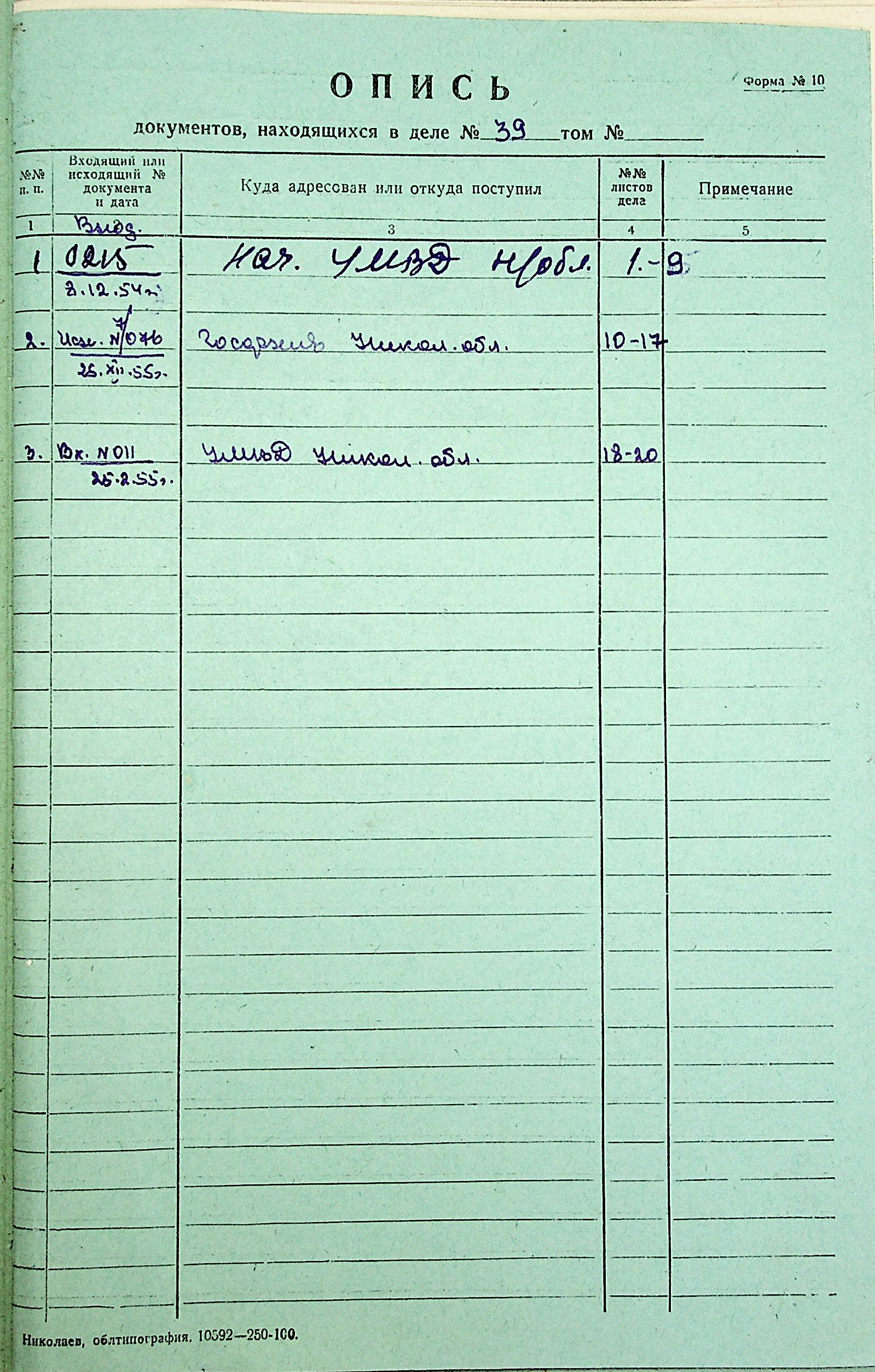 ◦ ◦ ◦ Опис № 3 справ постійного зберігання за 1943–1953 роки