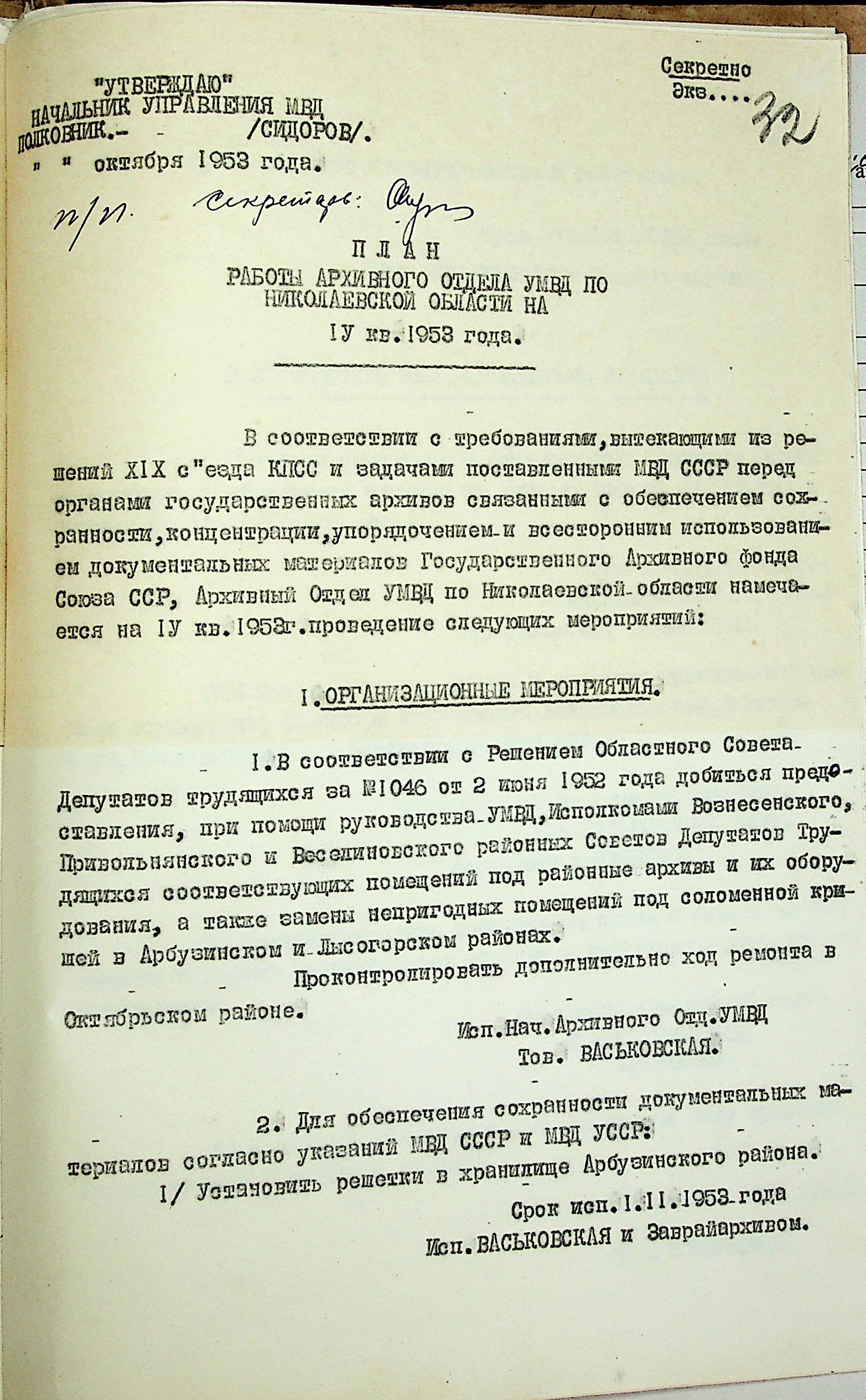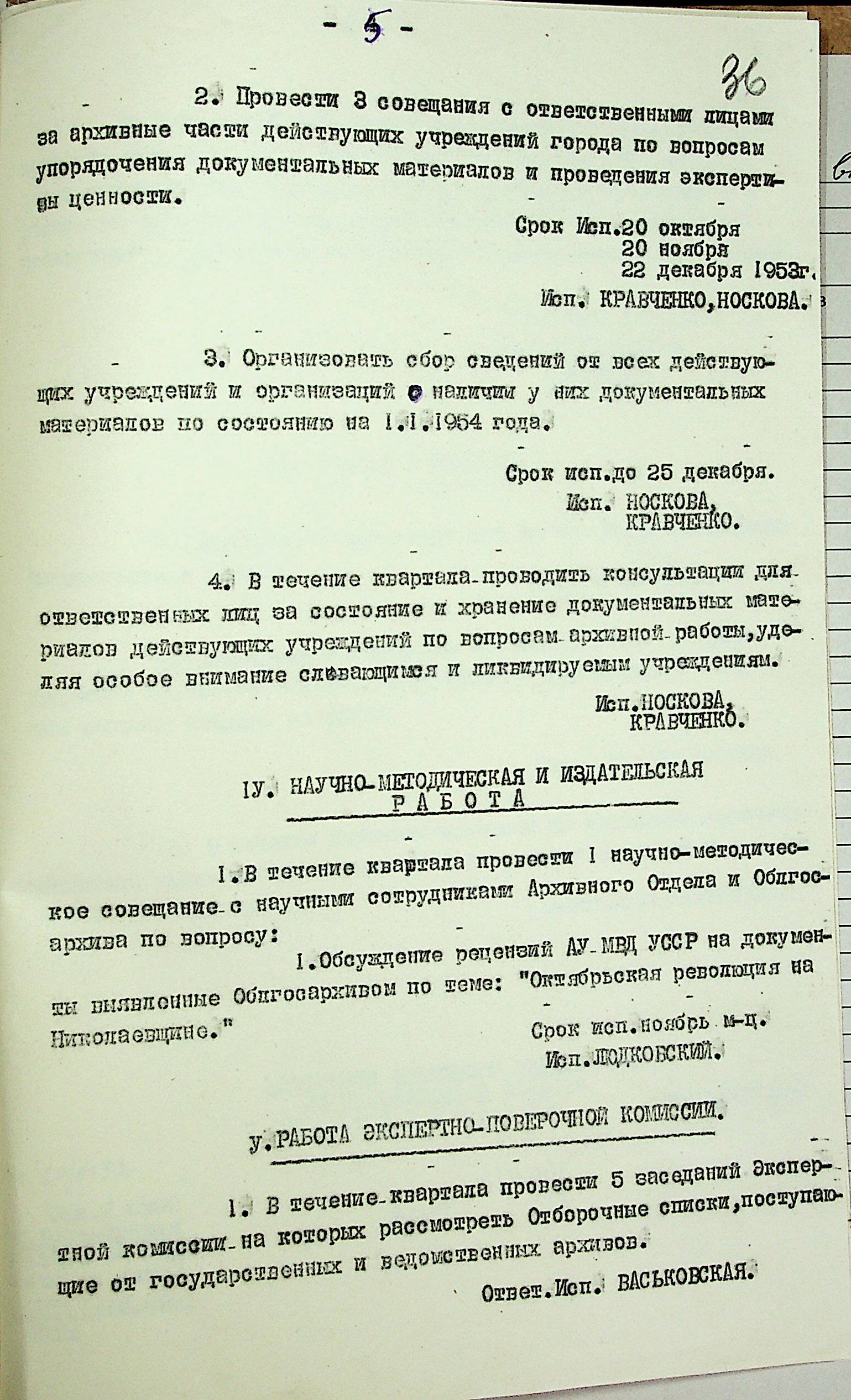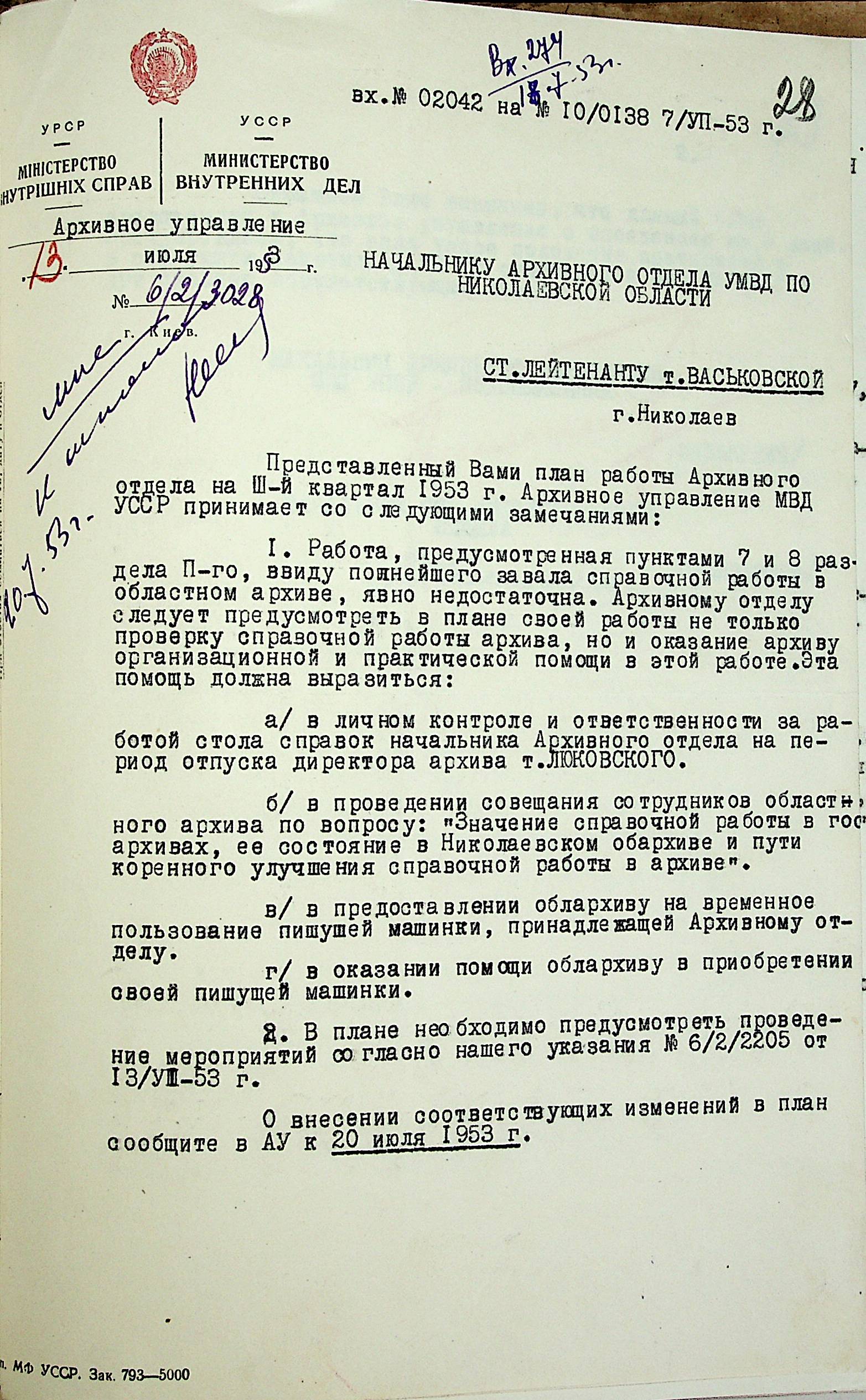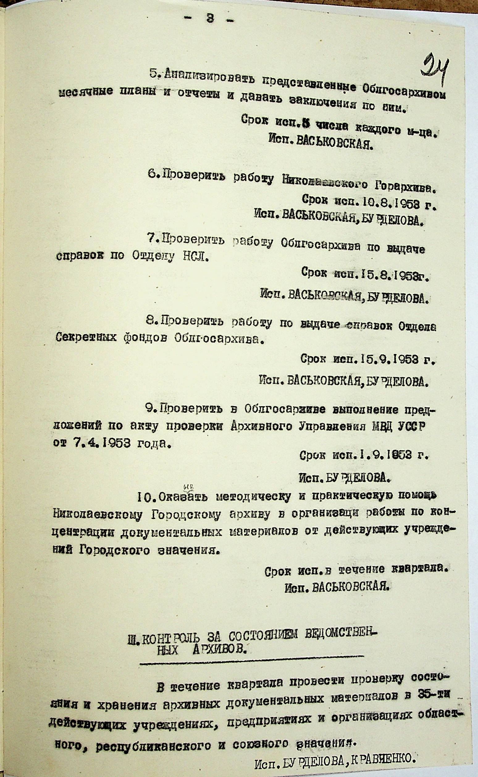 • • • • Справа № 204 “Квартальні плани Архівного відділу Управління МВС Миколаївської області на 1953 р.”
