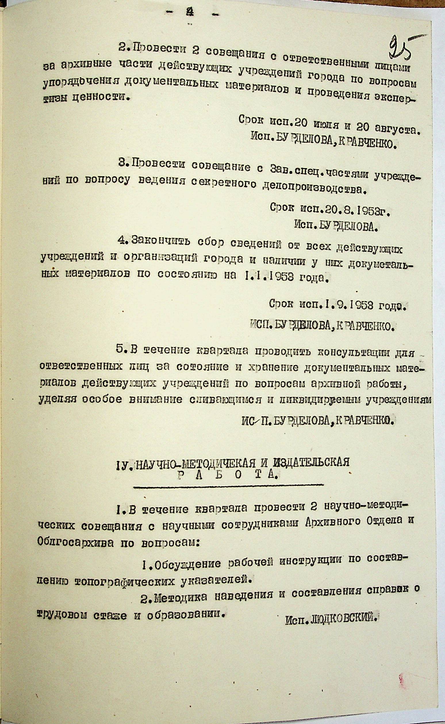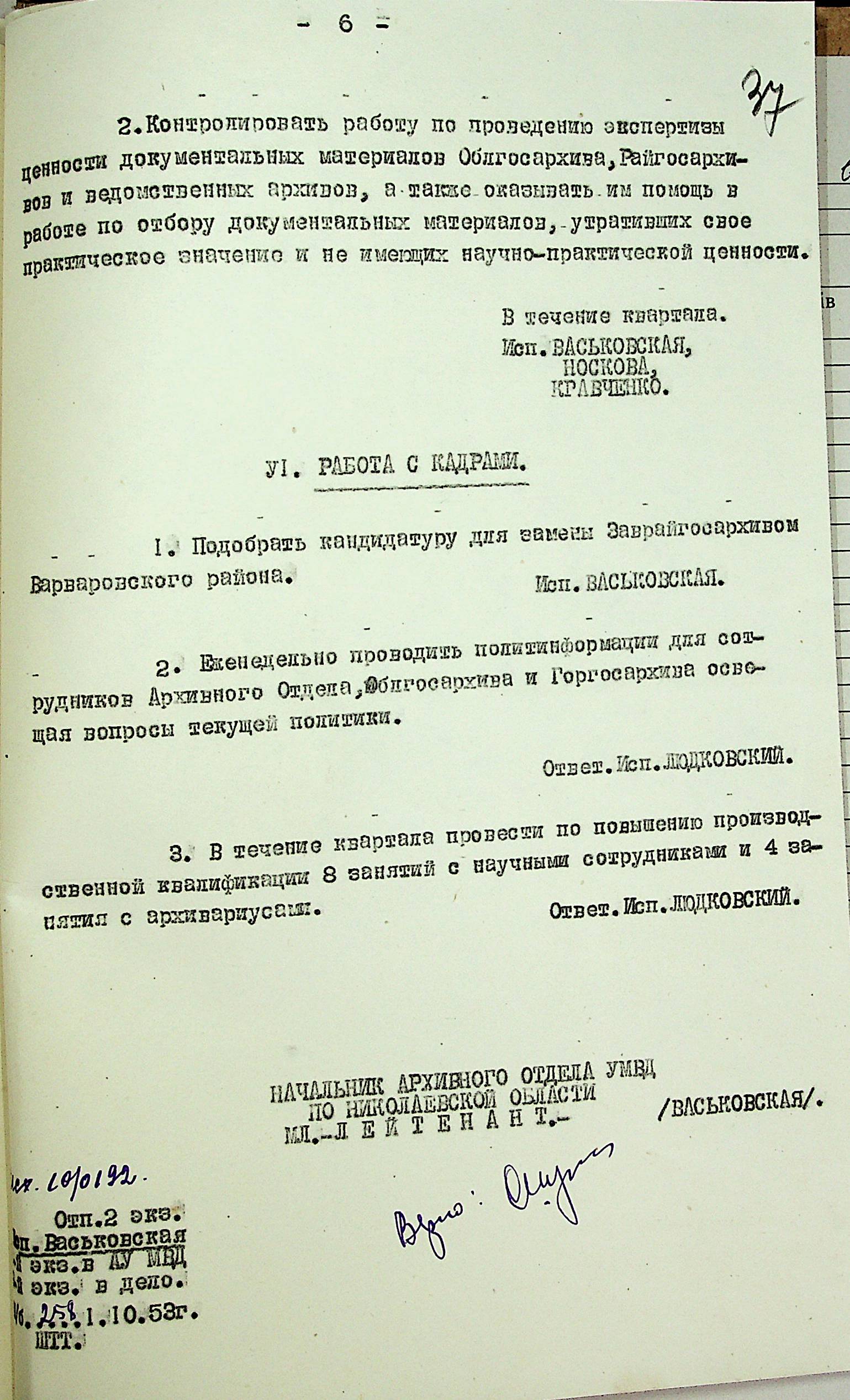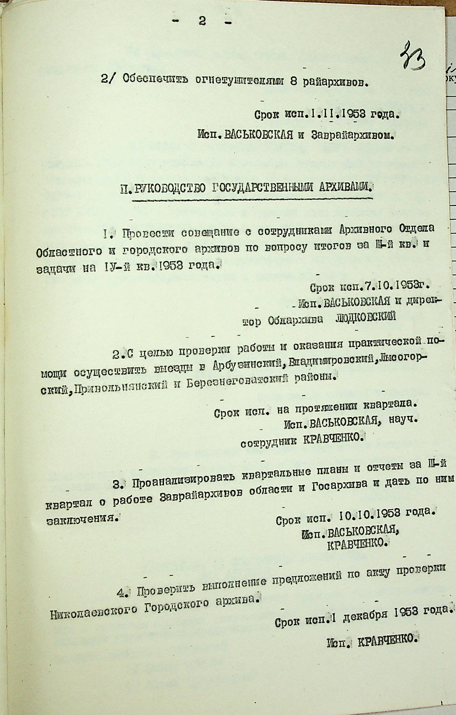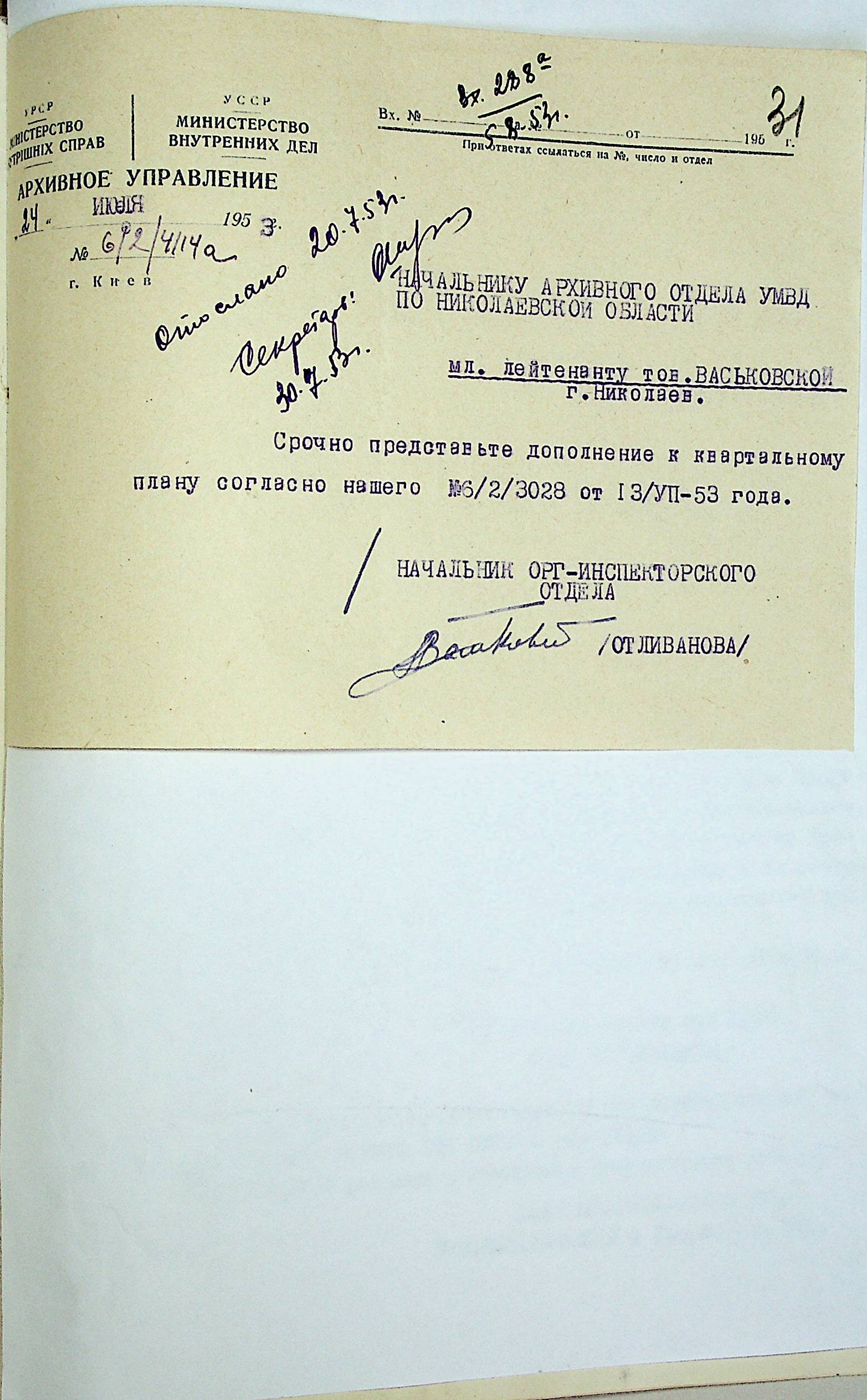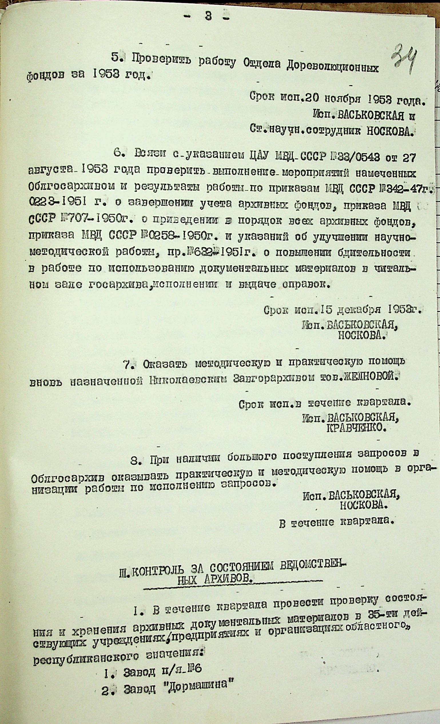 • • • • Справа № 204 “Квартальні плани Архівного відділу Управління МВС Миколаївської області на 1953 р.”