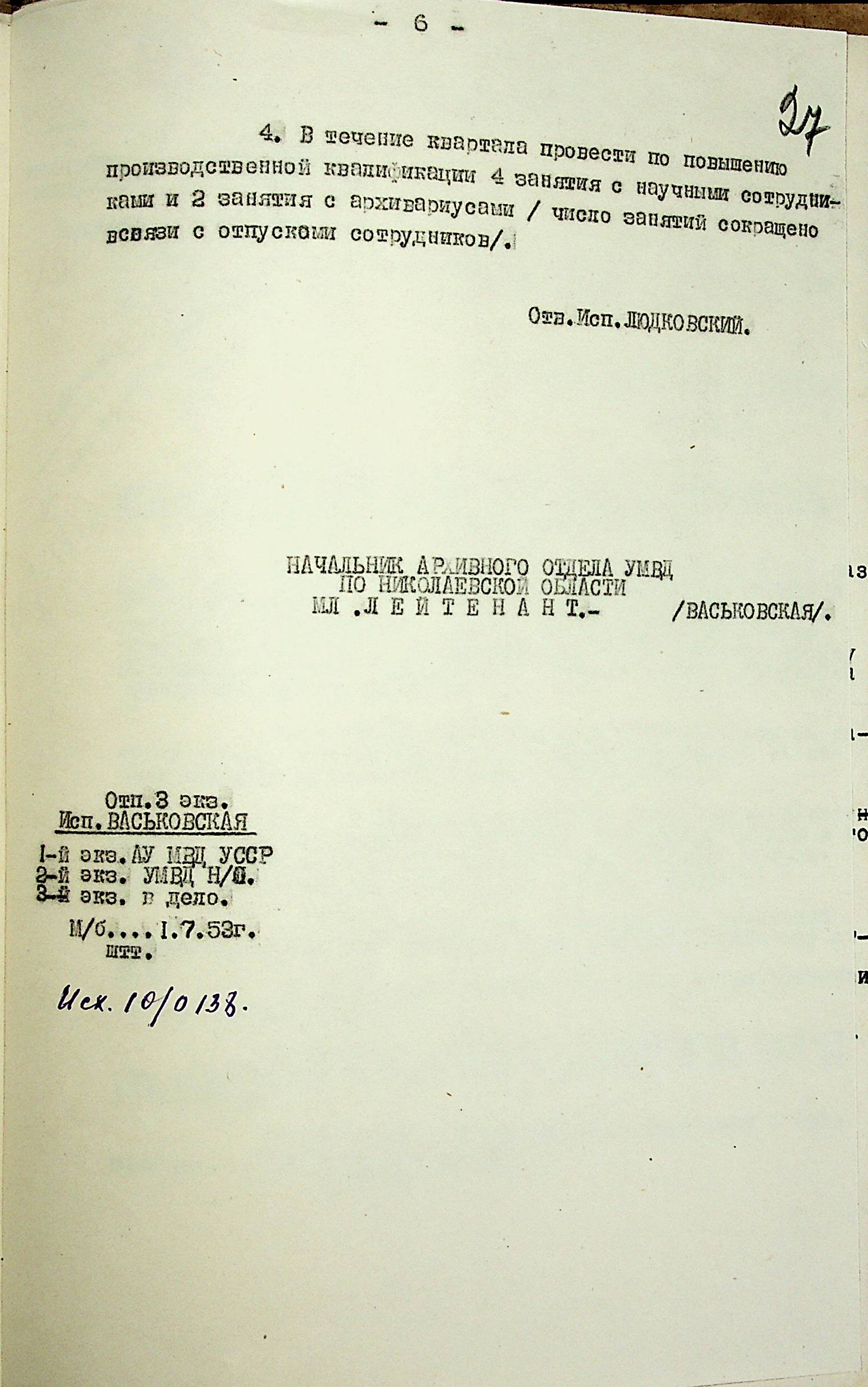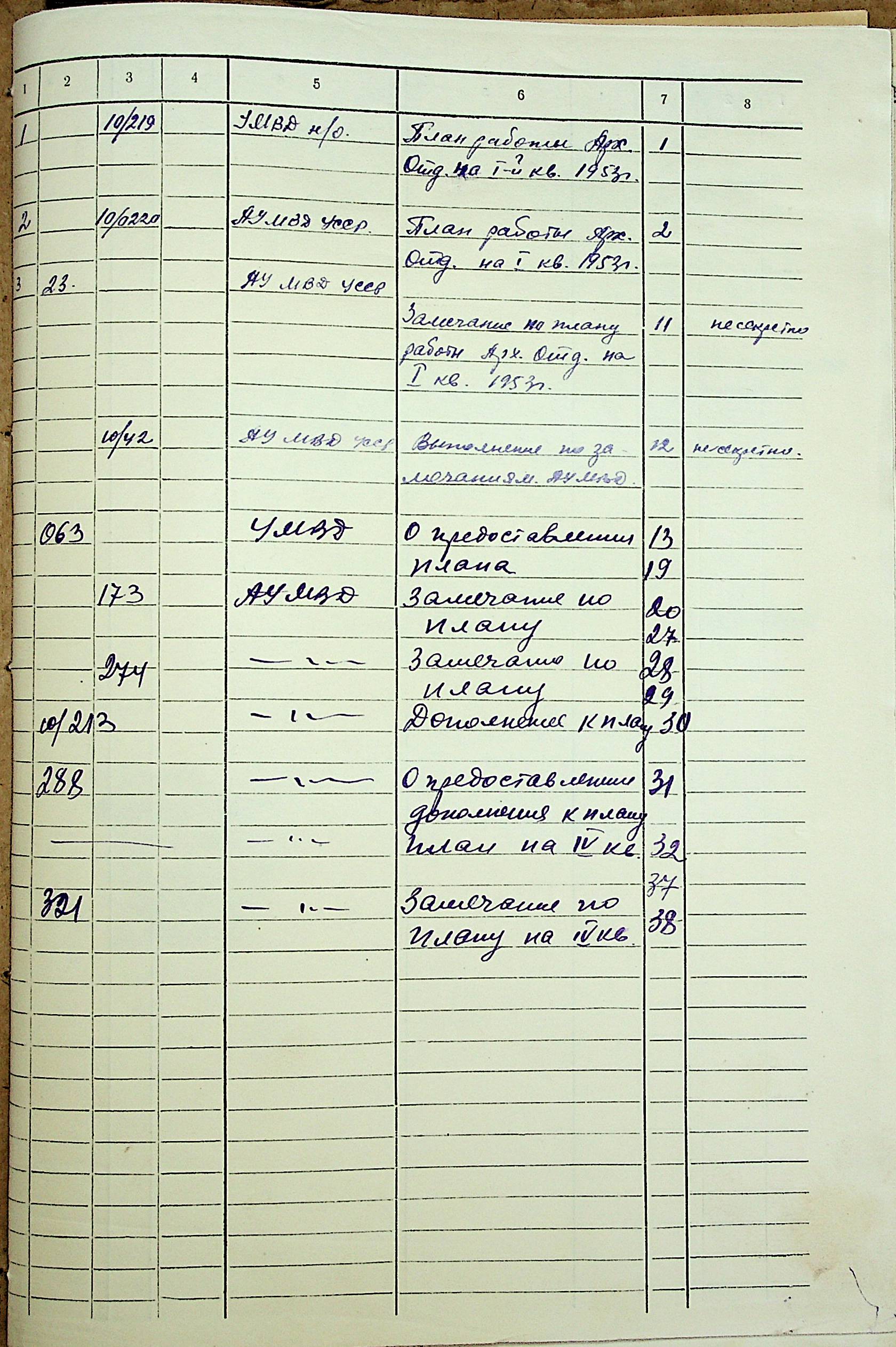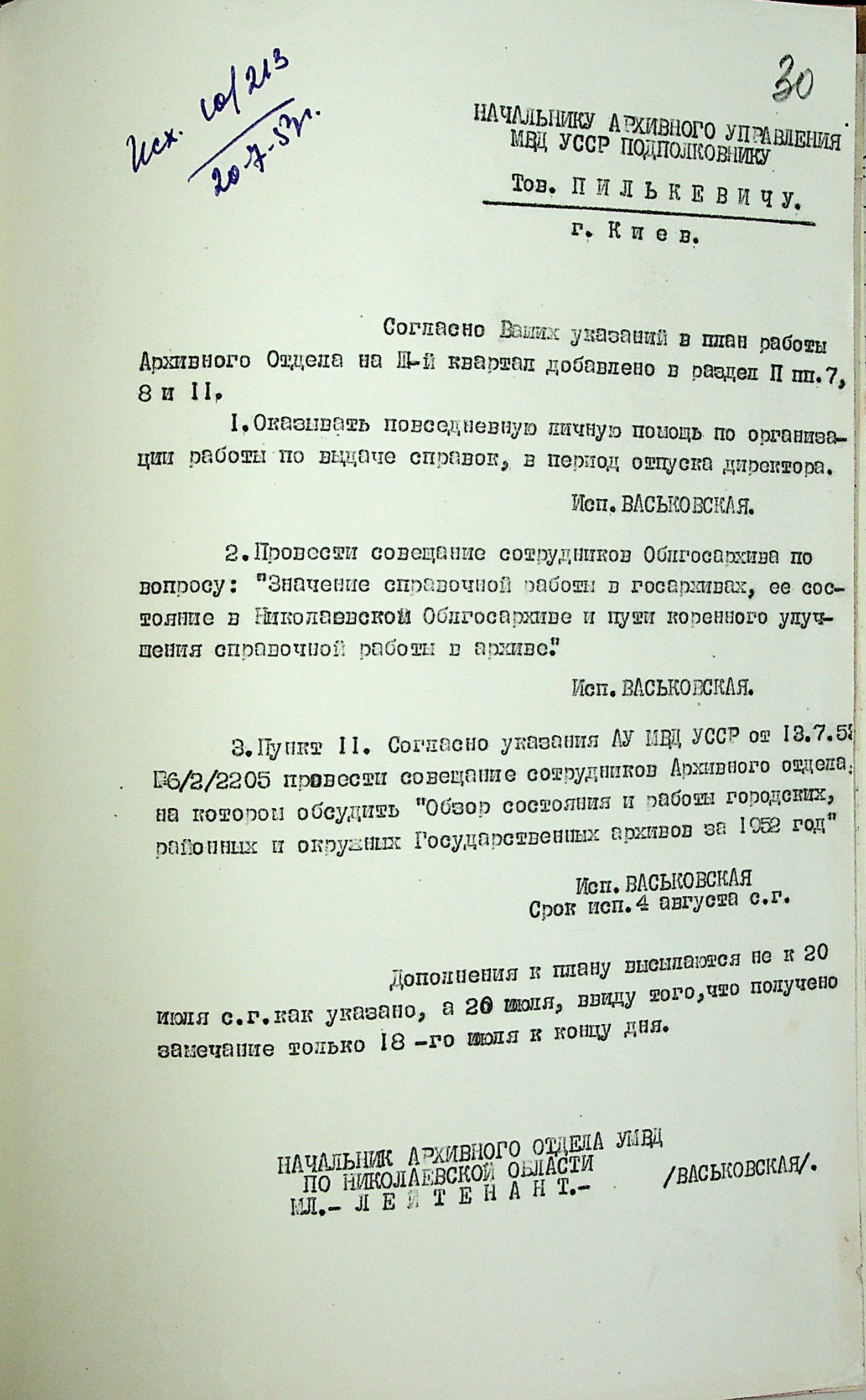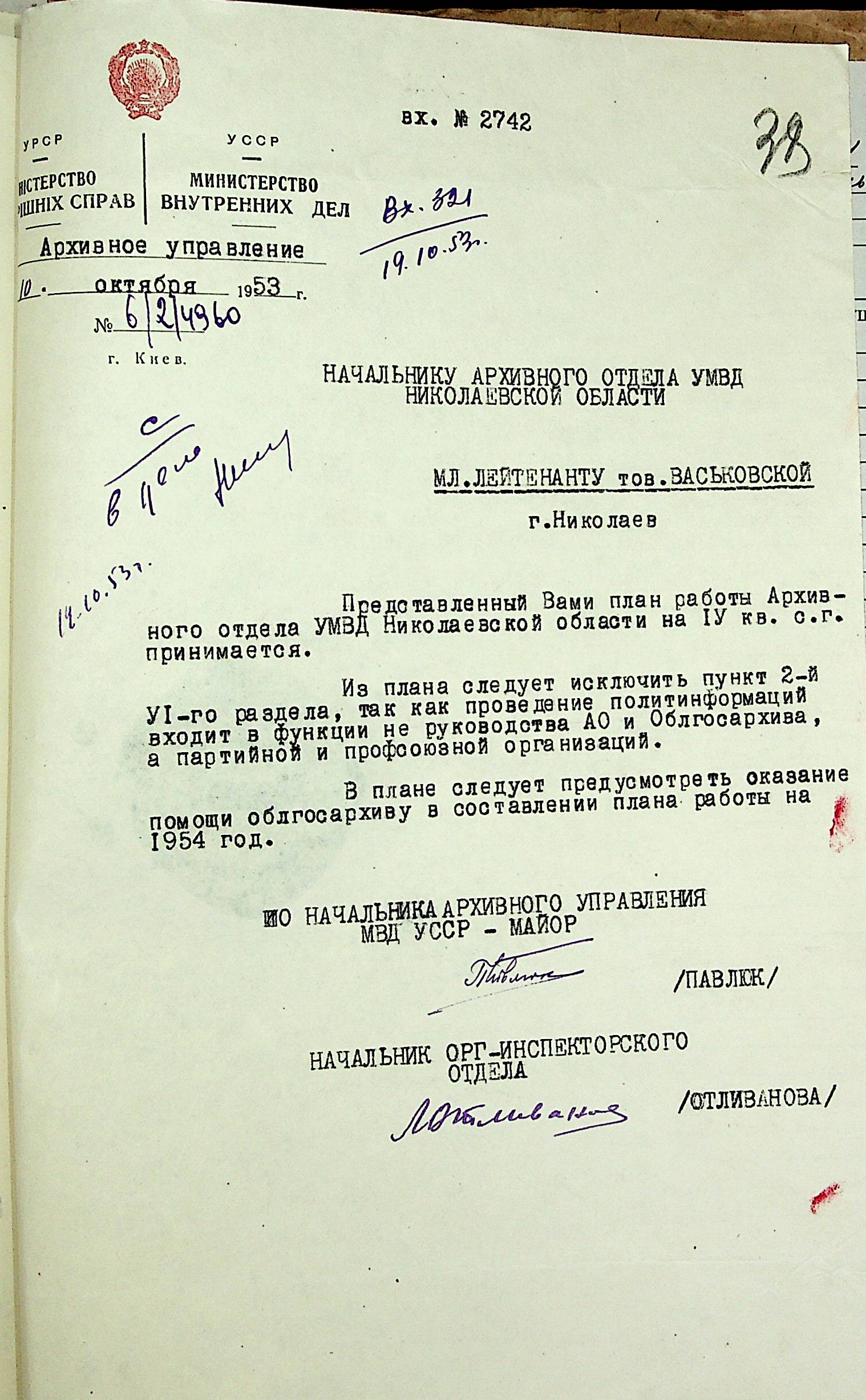• • • • Справа № 204 “Квартальні плани Архівного відділу Управління МВС Миколаївської області на 1953 р.”