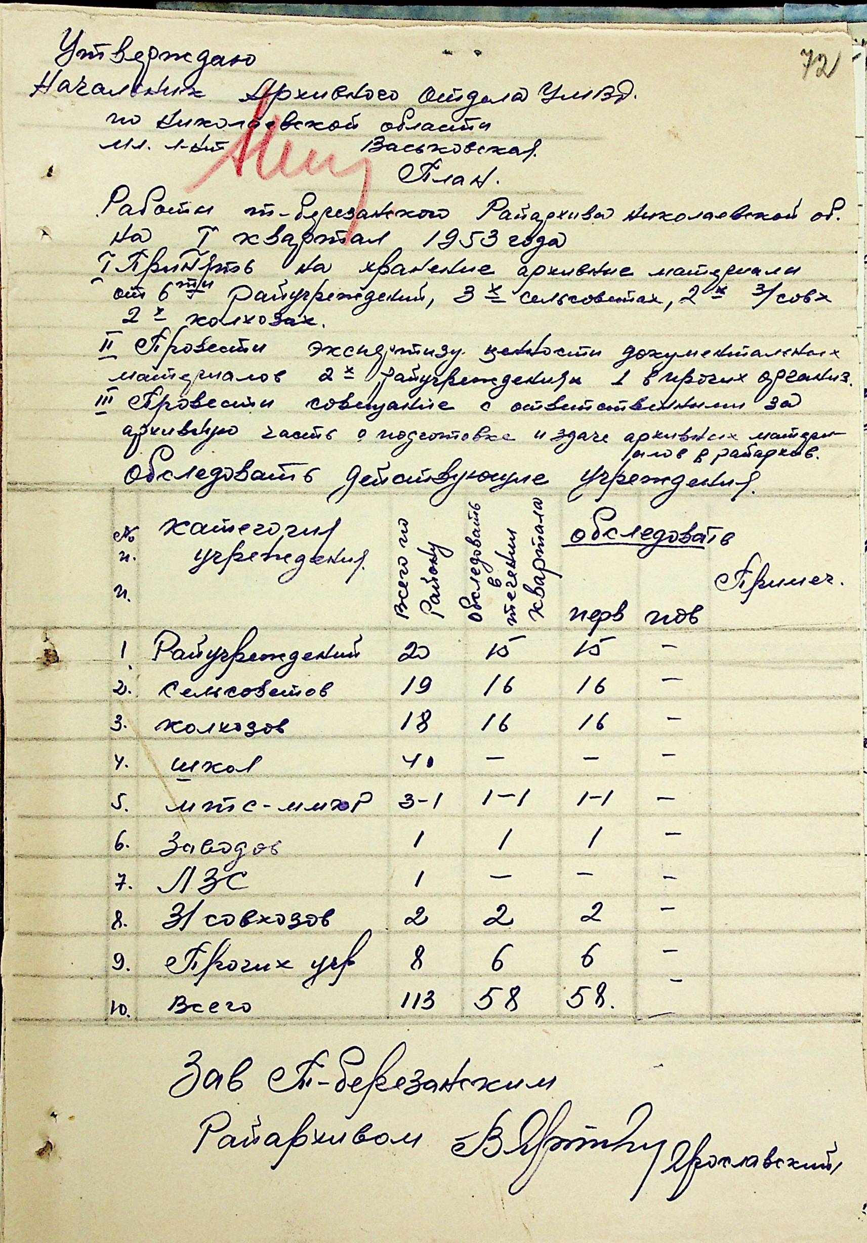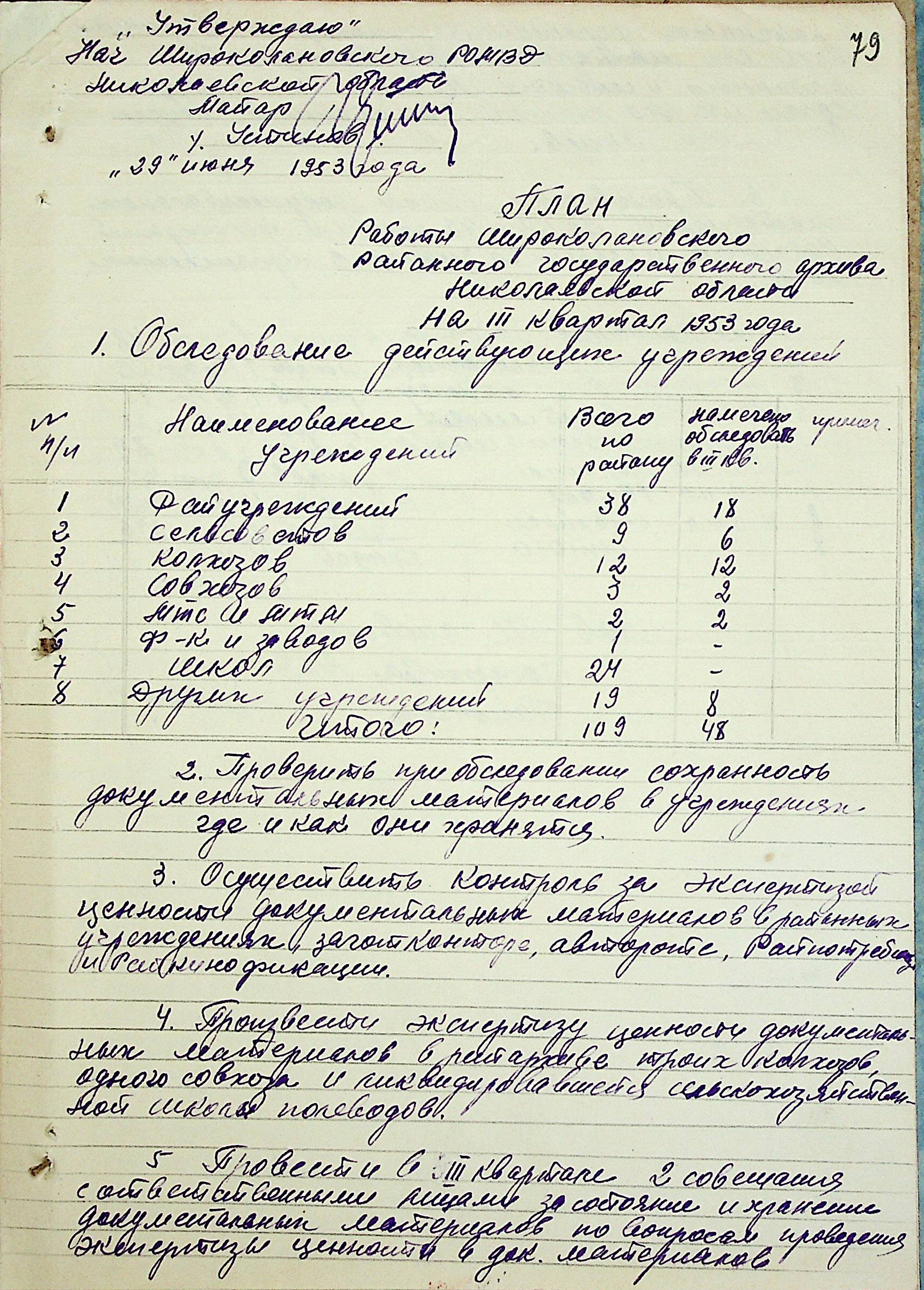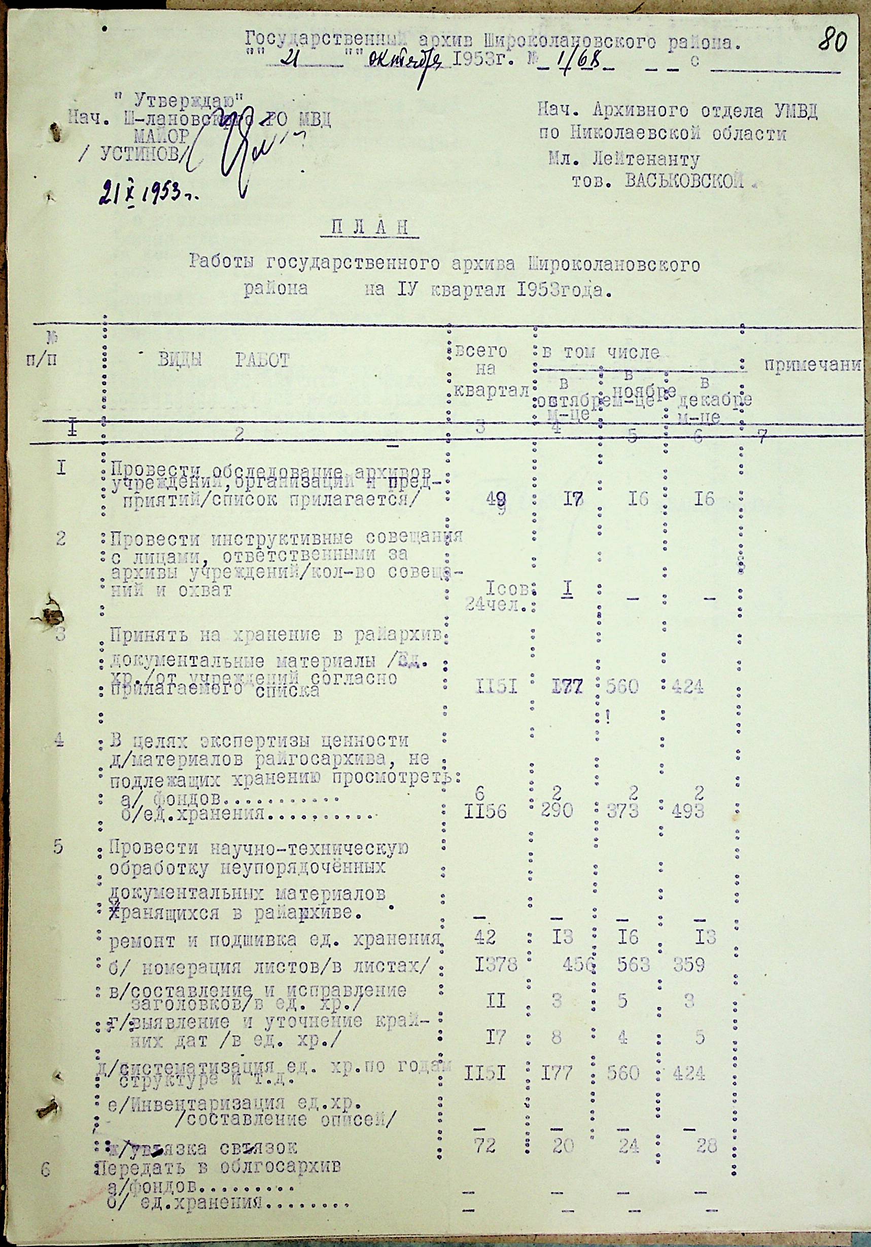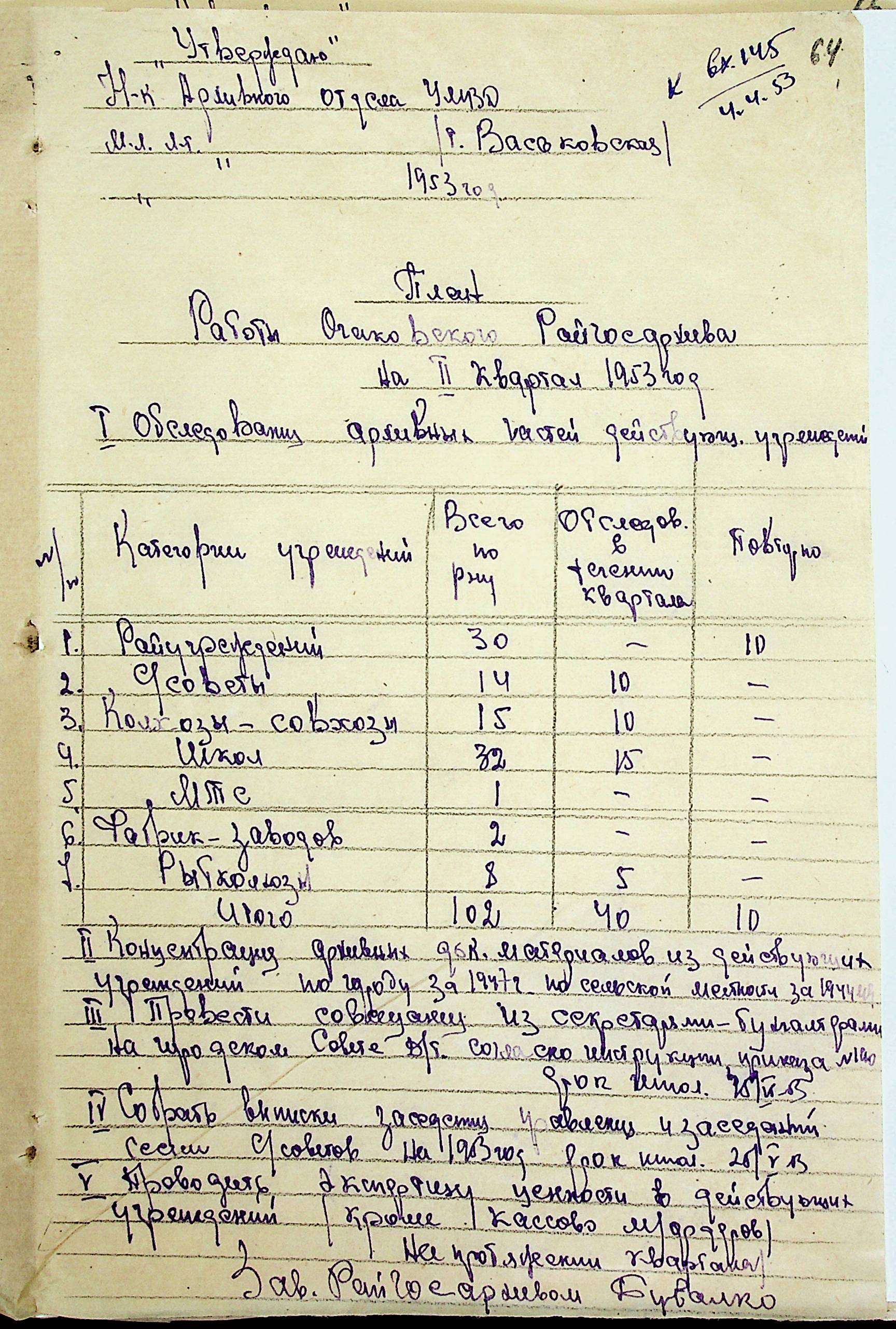 • • • • Справа № 205 “Квартальні плани роботи міських та районних архівів Миколаївської області за 1953 р.”