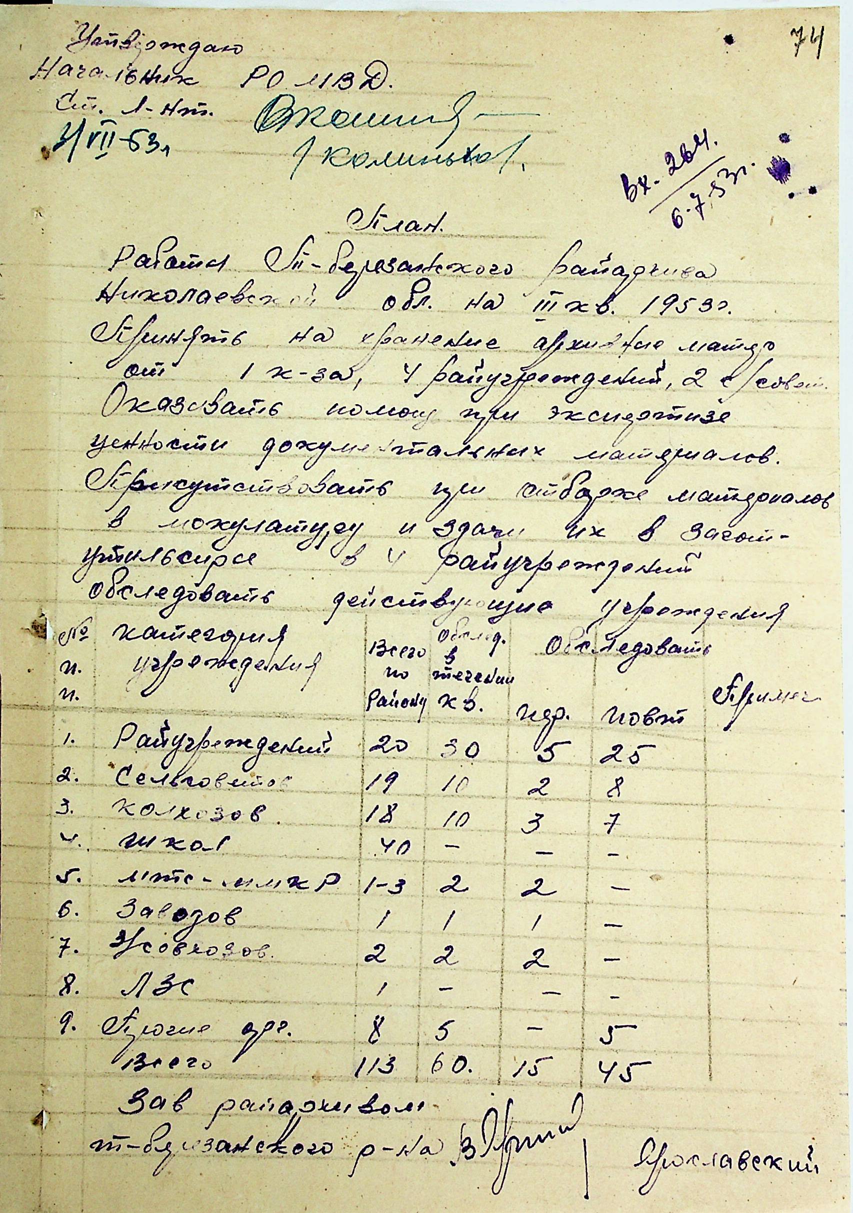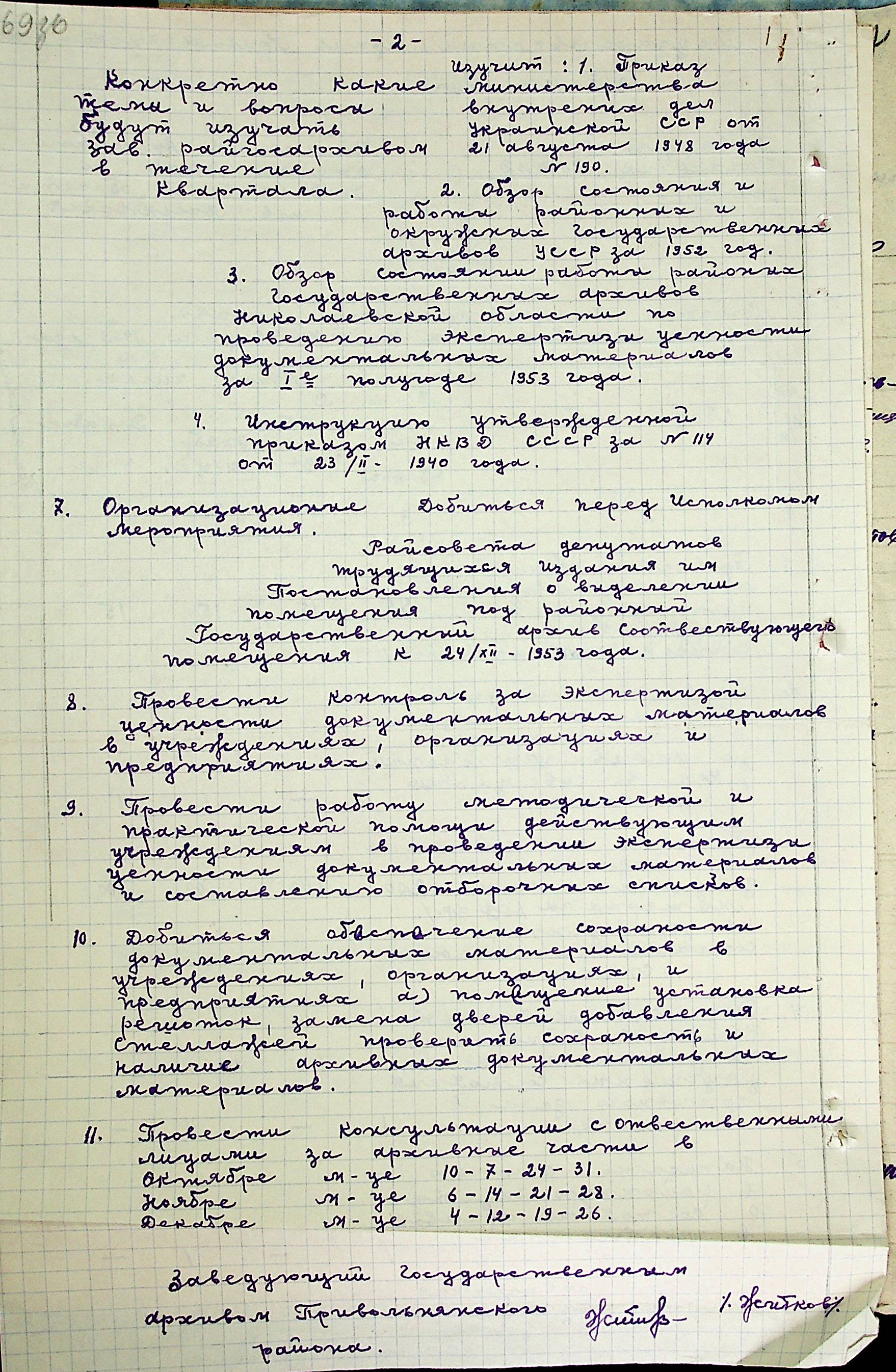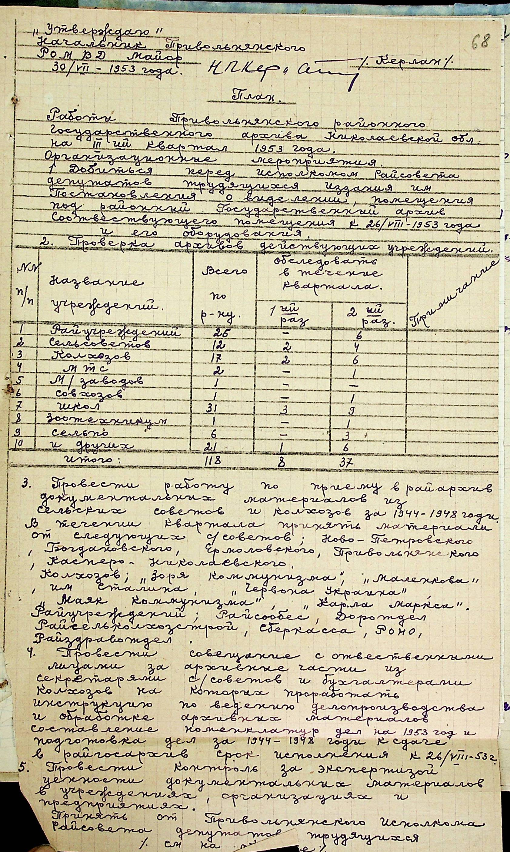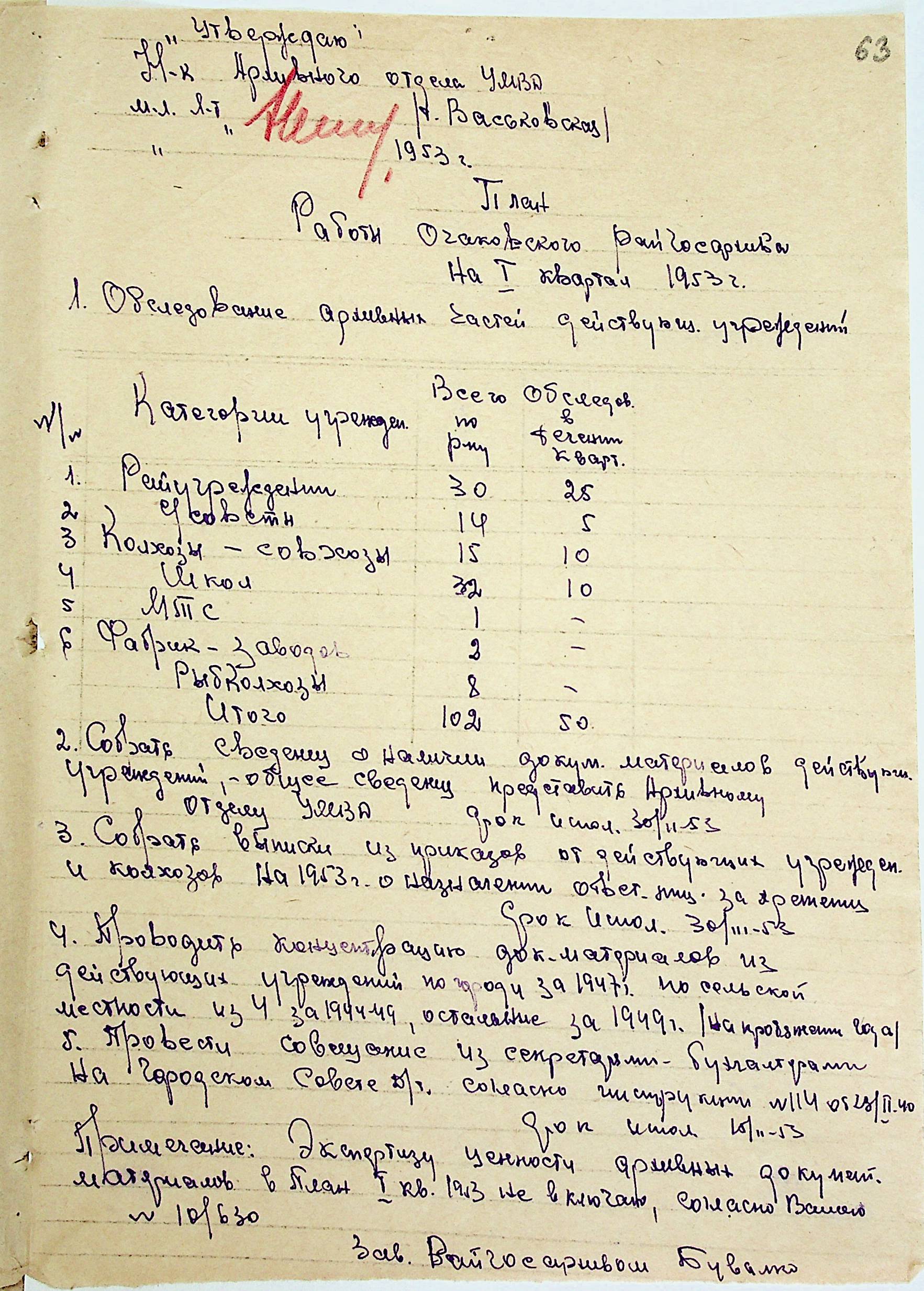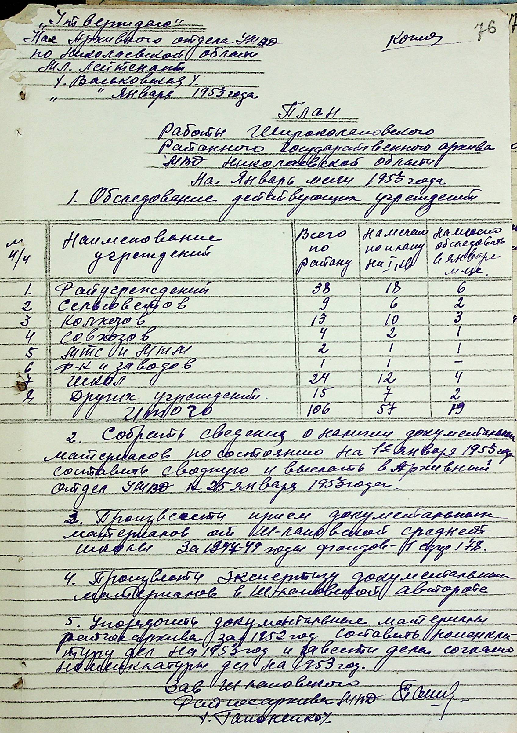 • • • • Справа № 205 “Квартальні плани роботи міських та районних архівів Миколаївської області за 1953 р.”