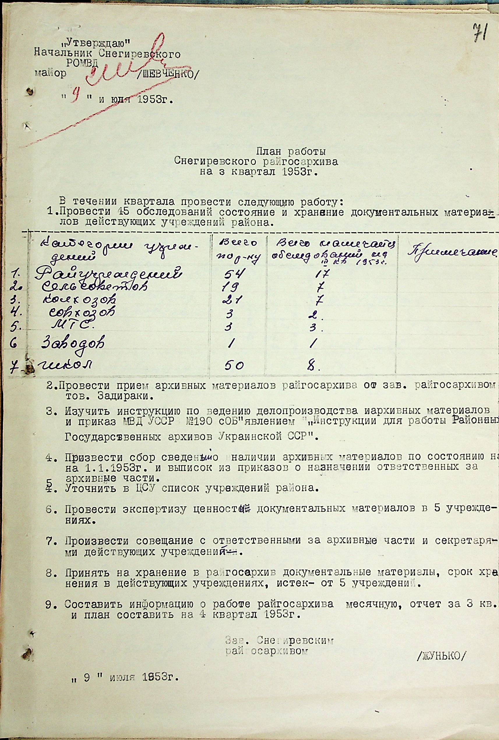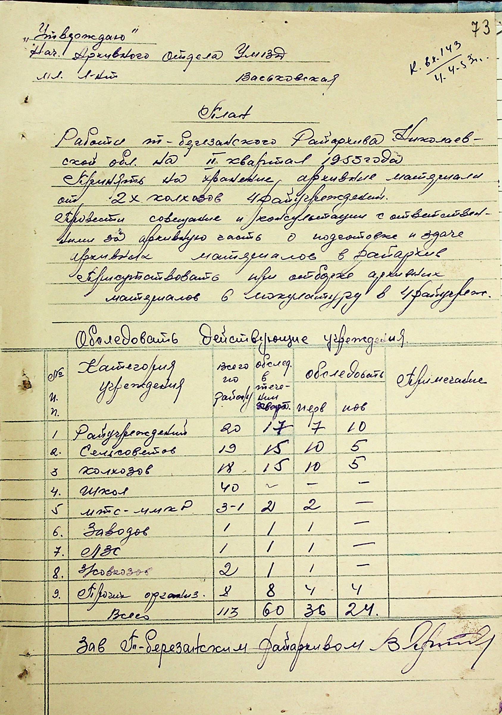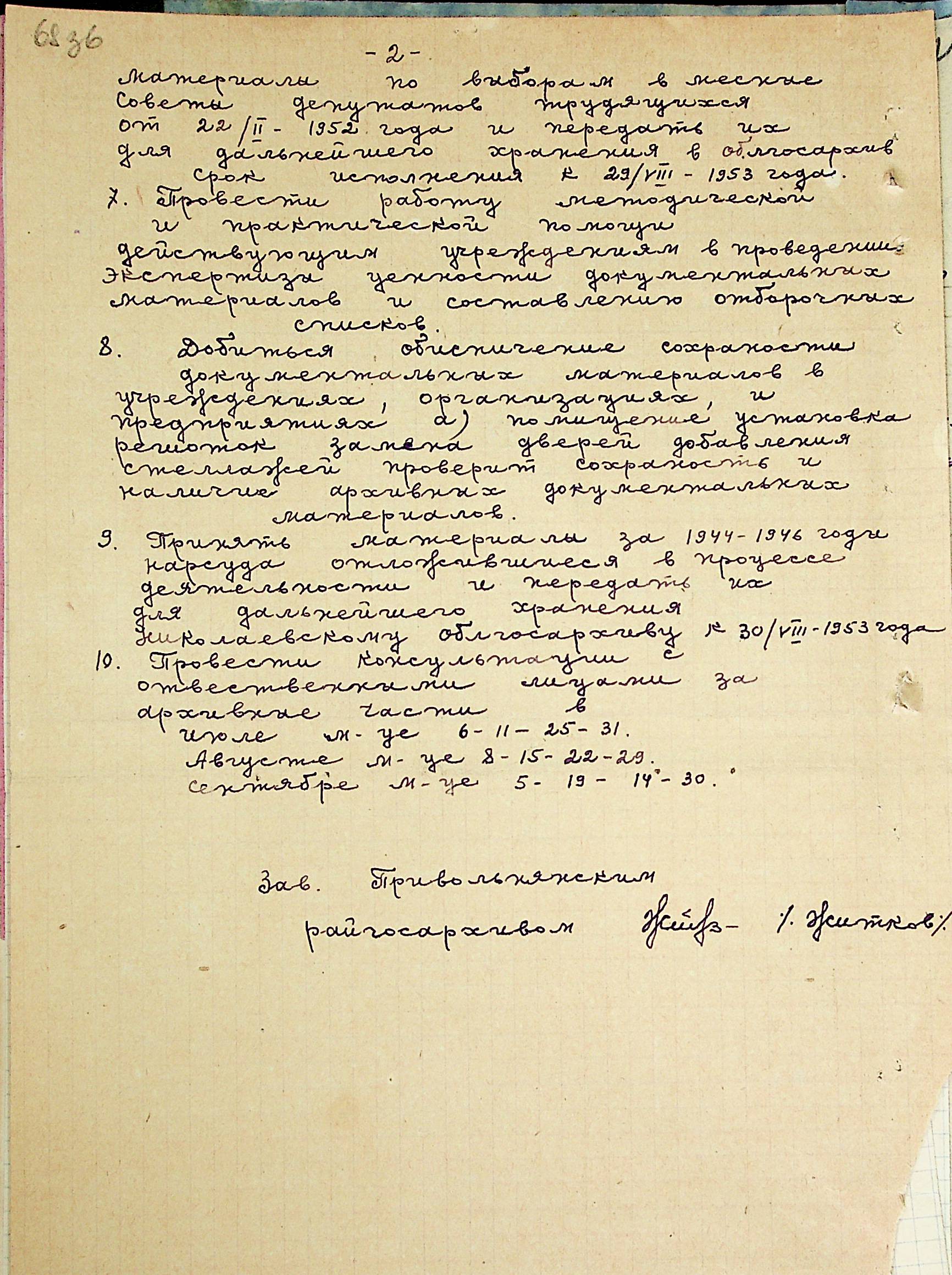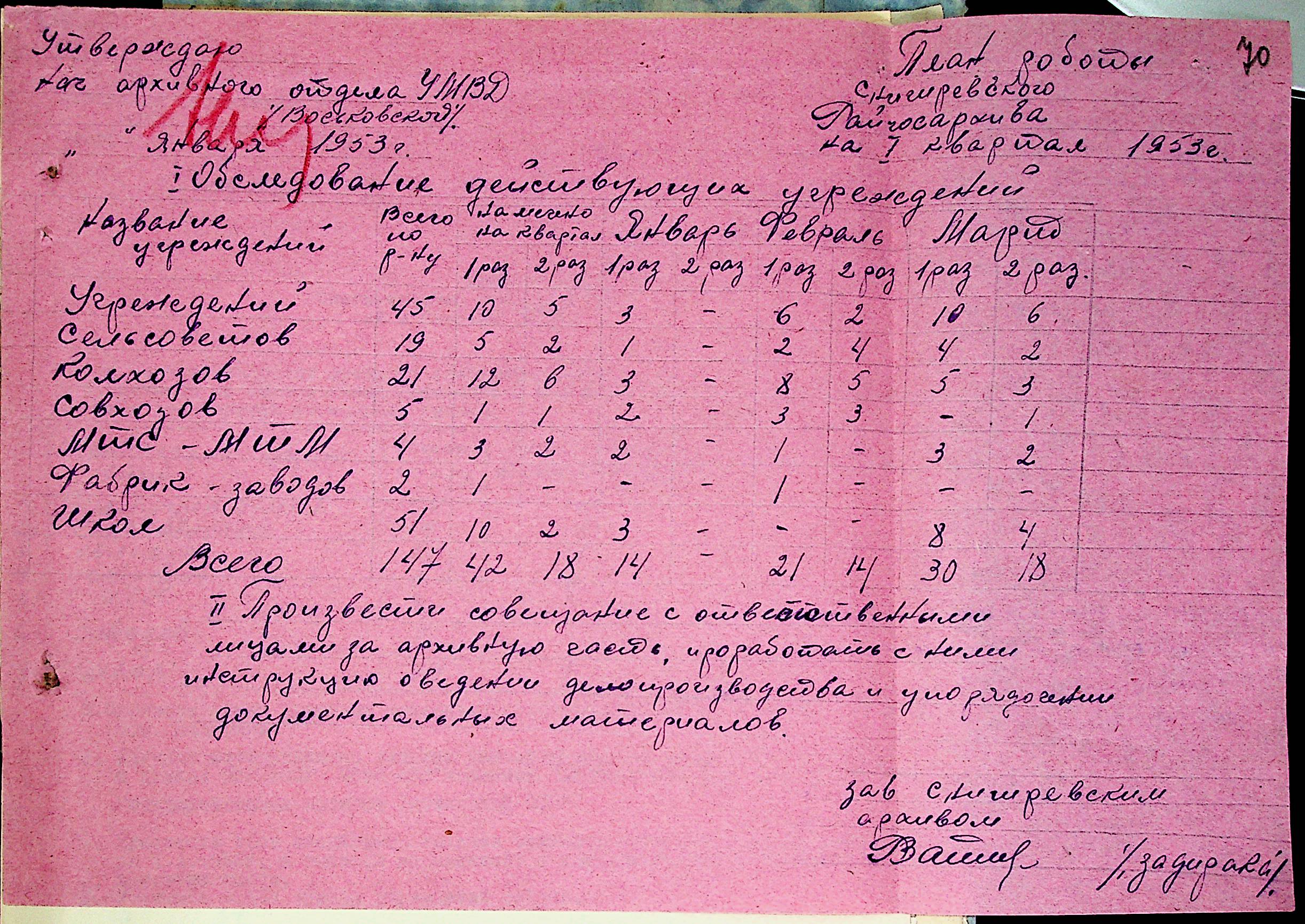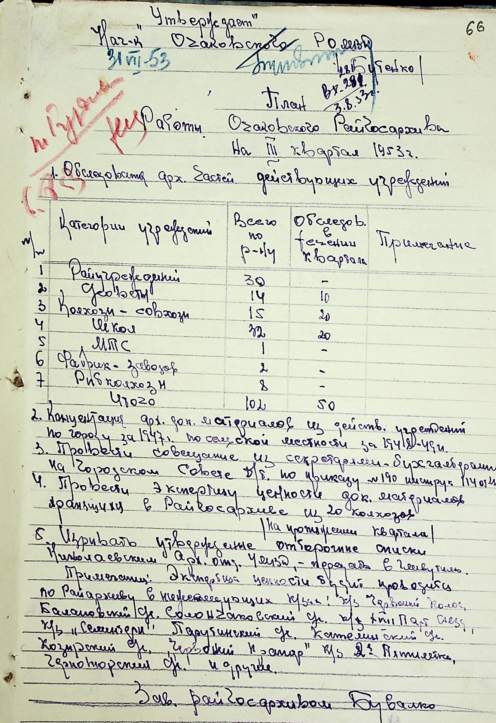 • • • • Справа № 205 “Квартальні плани роботи міських та районних архівів Миколаївської області за 1953 р.”