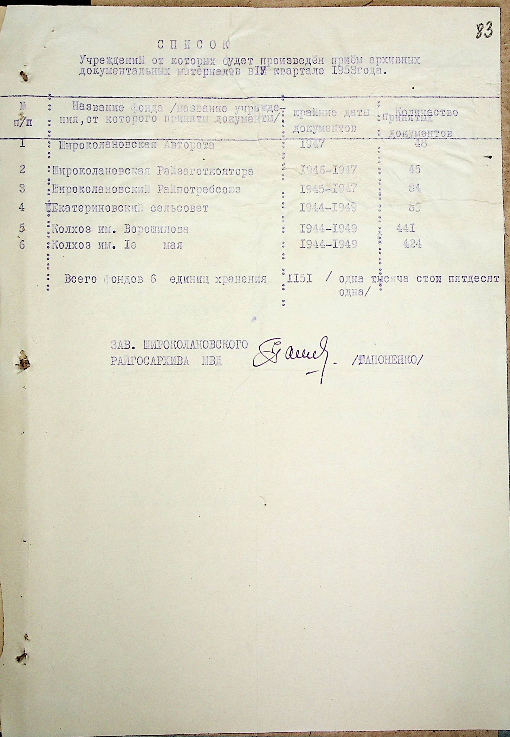 ◦ ◦ ◦ Опис № 3 справ постійного зберігання за 1943–1953 роки
