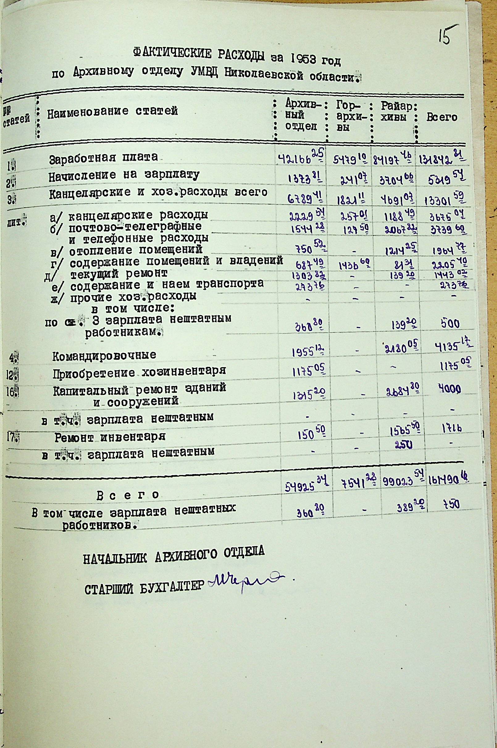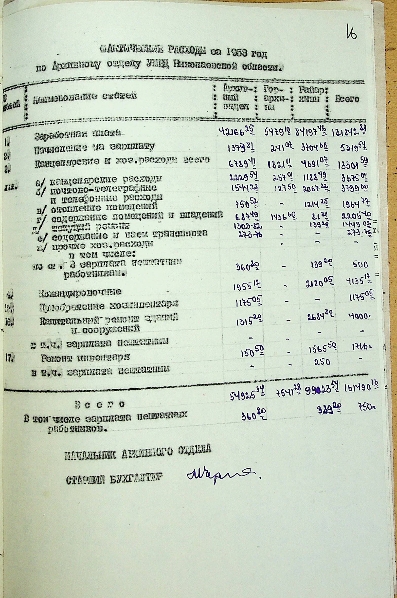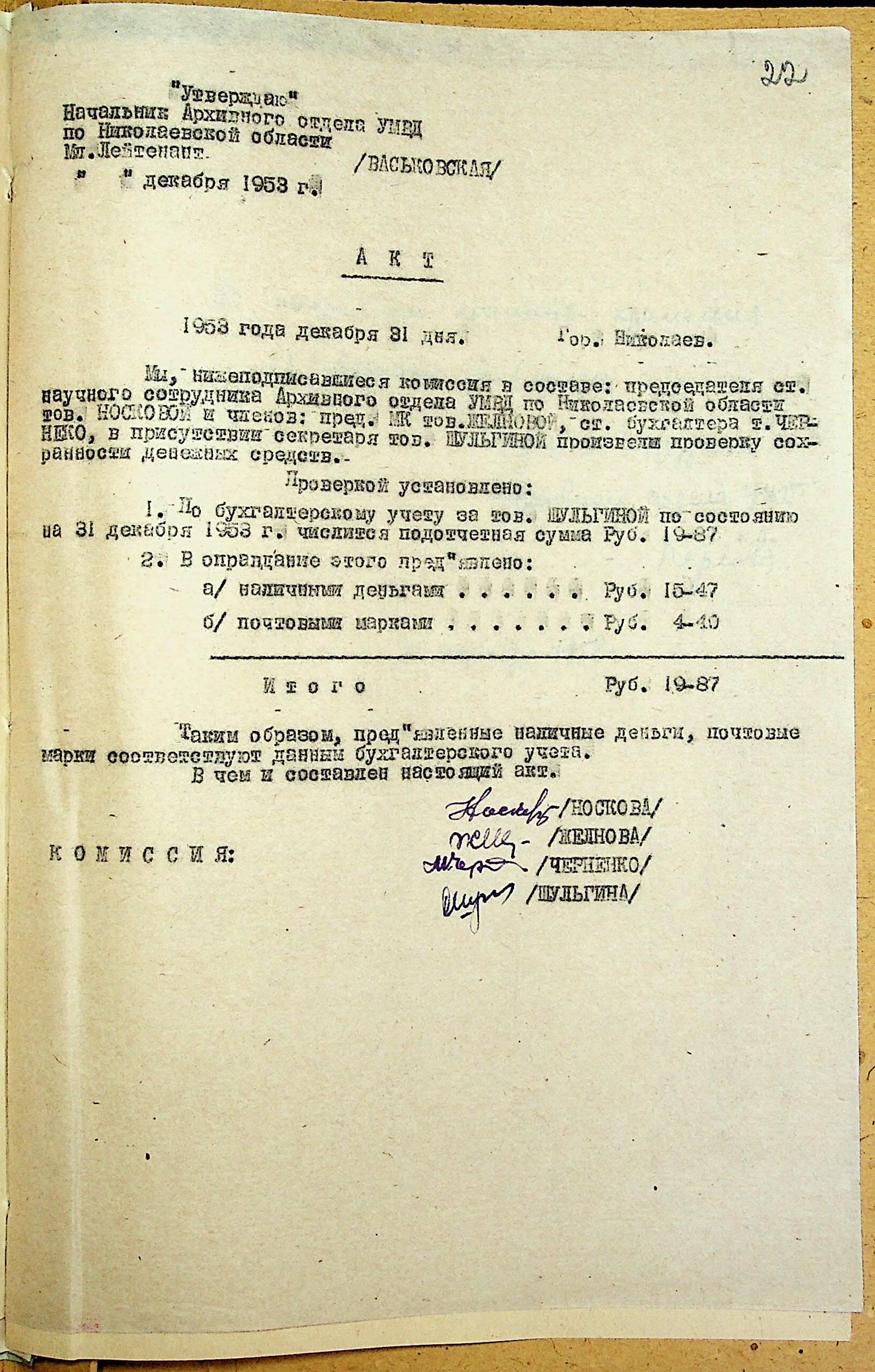 • • • • Справа № 207 “Річний фінансовий звіт за 1953 р.”