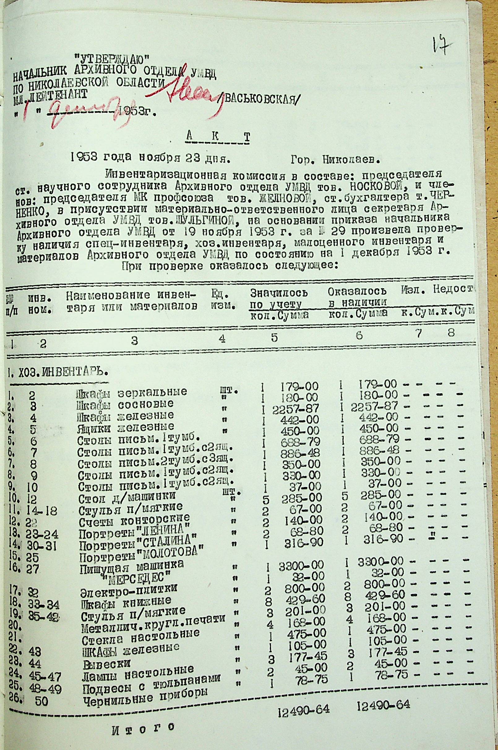 ◦ ◦ ◦ Опис № 3 справ постійного зберігання за 1943–1953 роки
