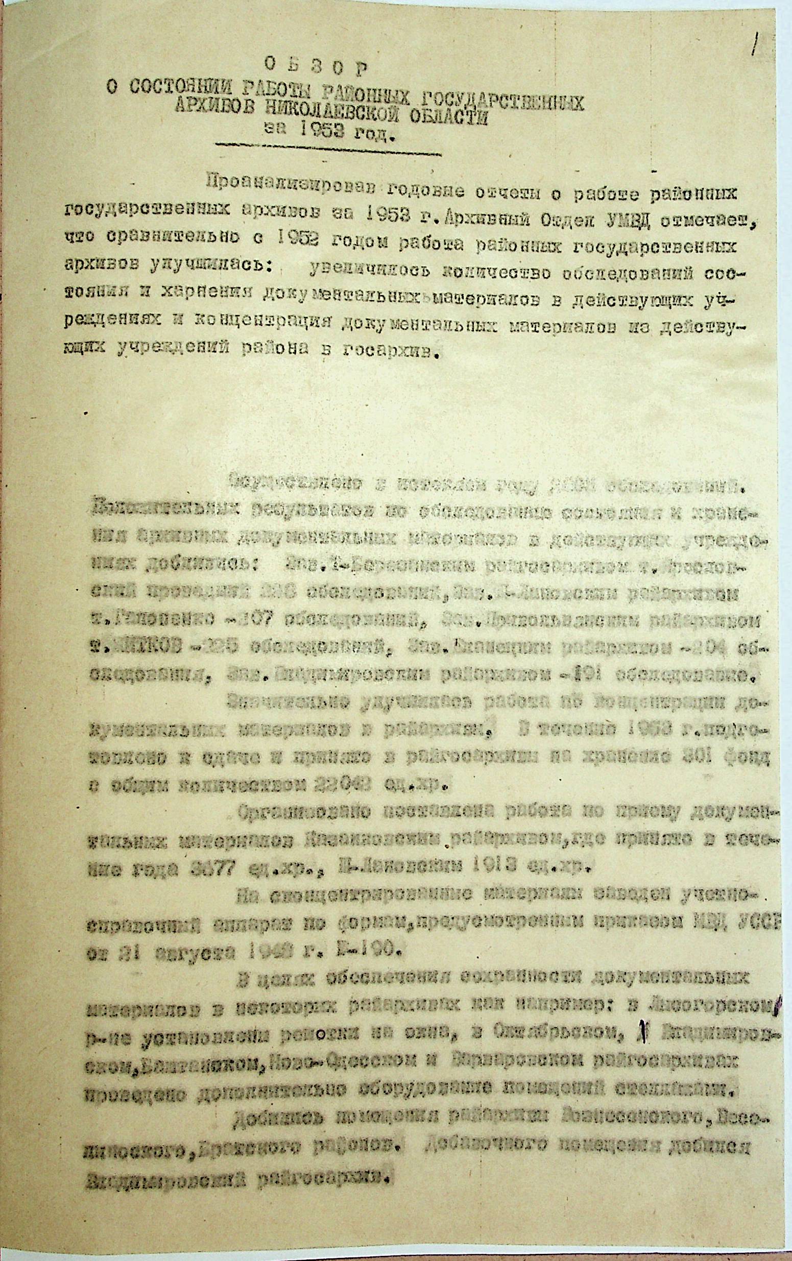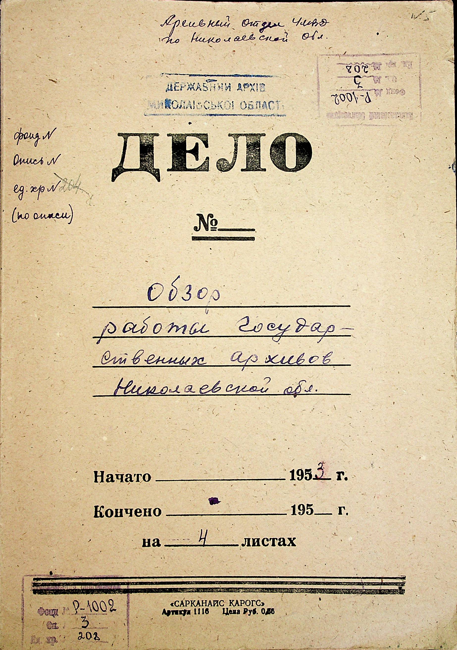 • • • • Справа № 208 “Огляд роботи державних архівів Миколаївської області”