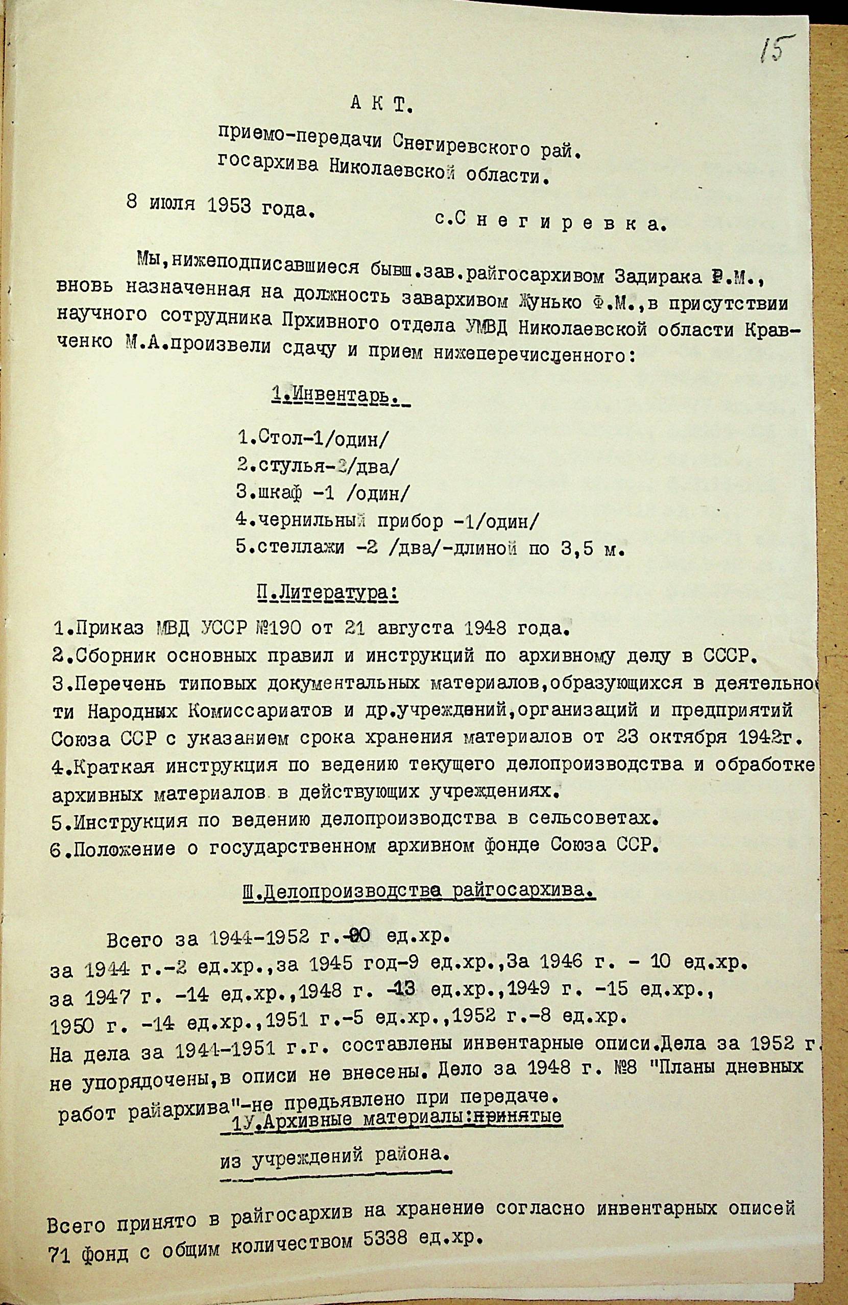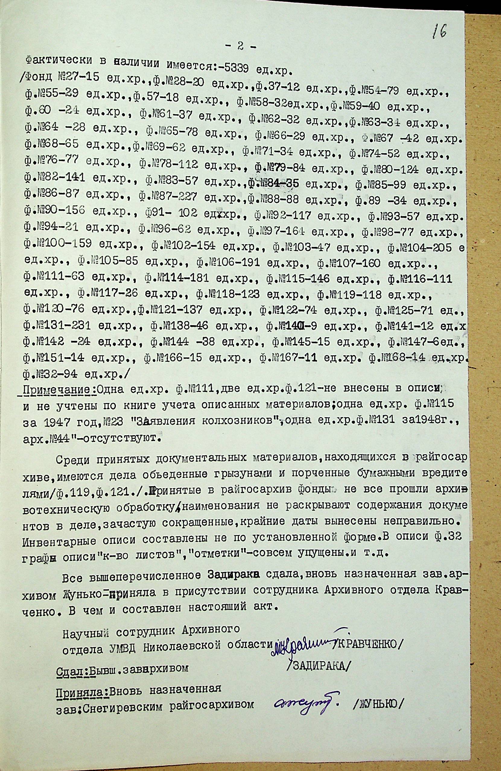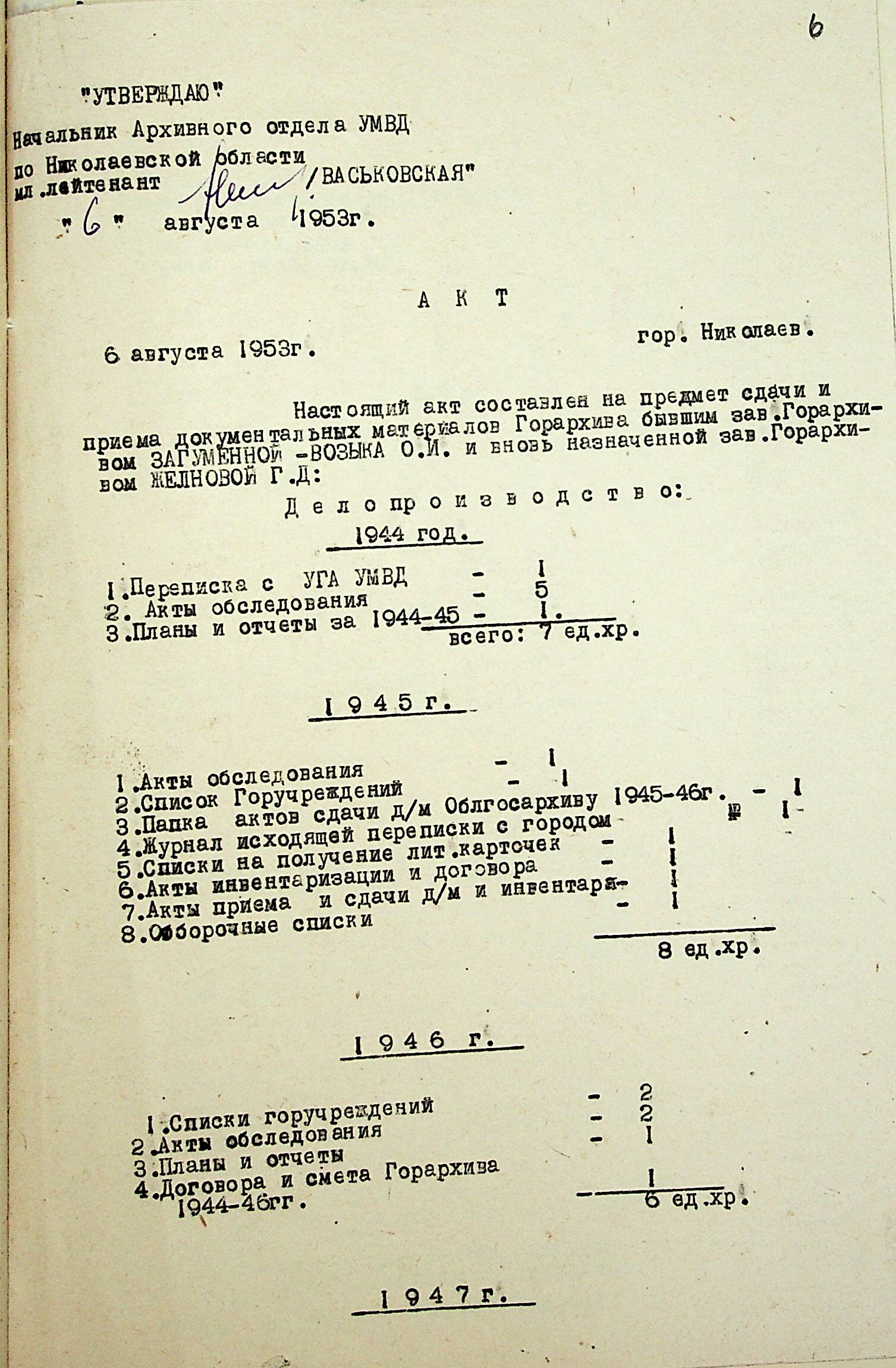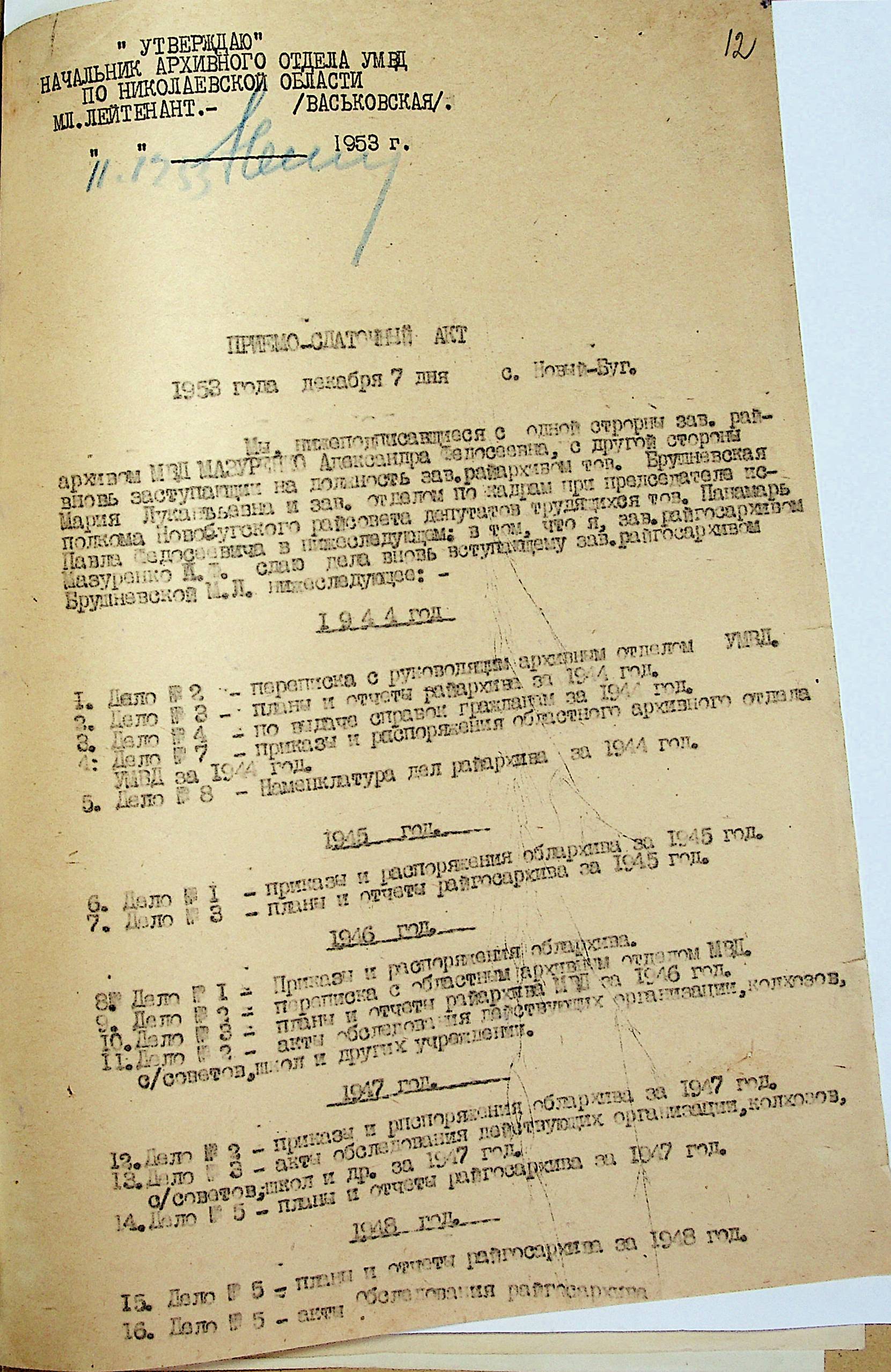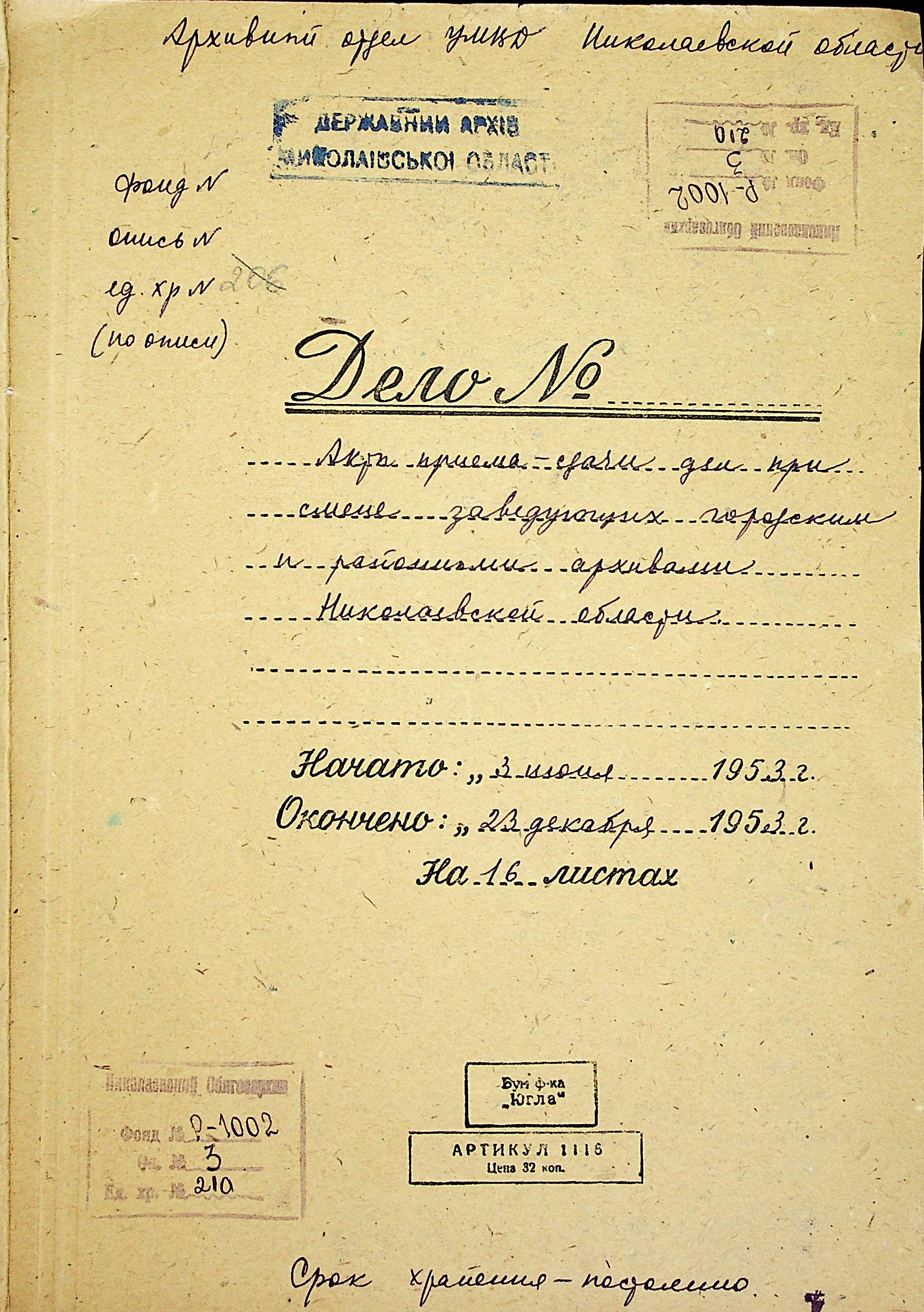 • • • • Справа № 210 “Акти приймання-здачі справ при зміні завідувачів міських та районних архівів Миколаївської області”