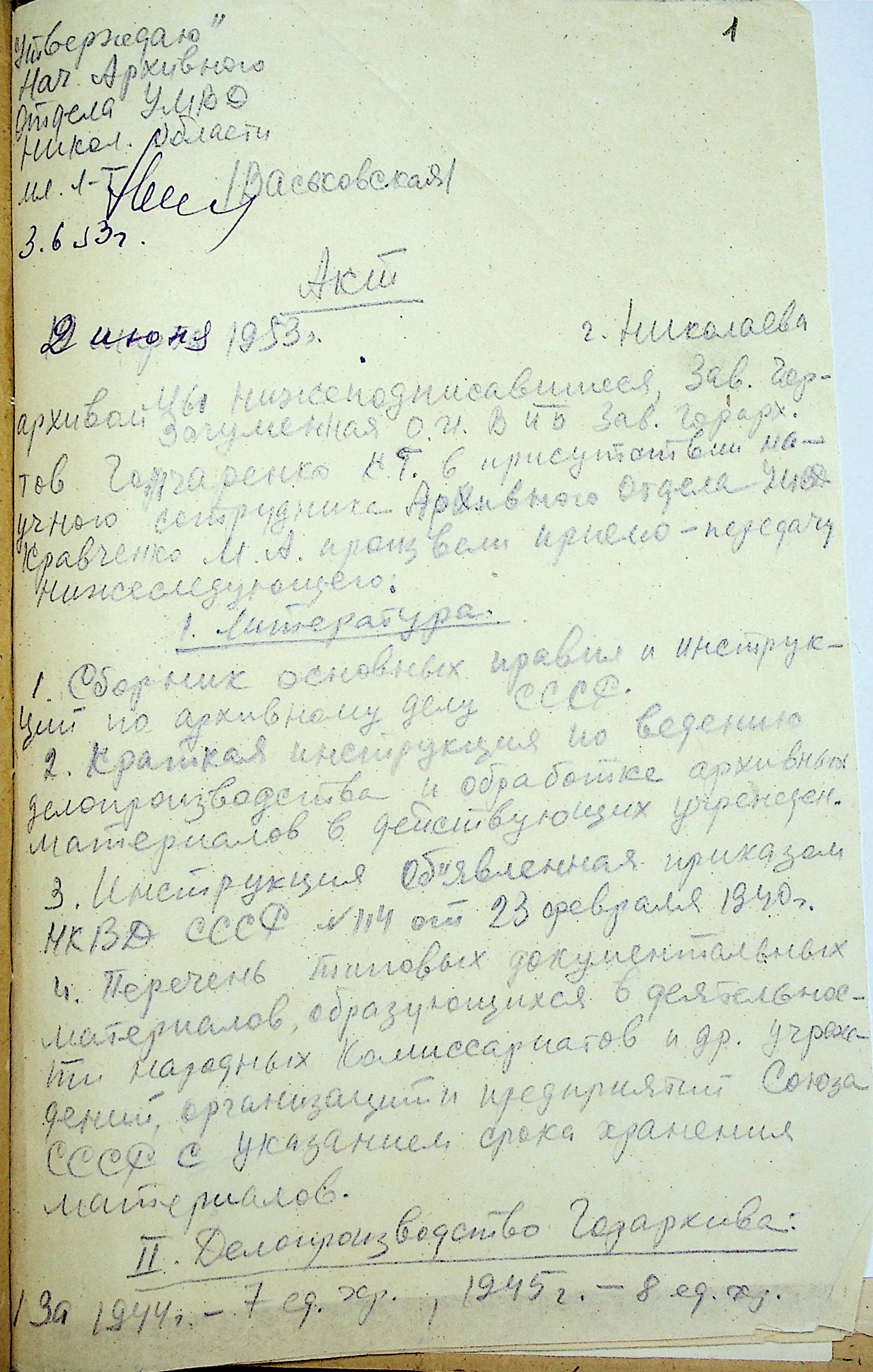 ◦ ◦ Фонд № Р-1002 “Архівний відділ управління виконкому Миколаївської обласної Ради народних депутатів, м. Миколаїв”