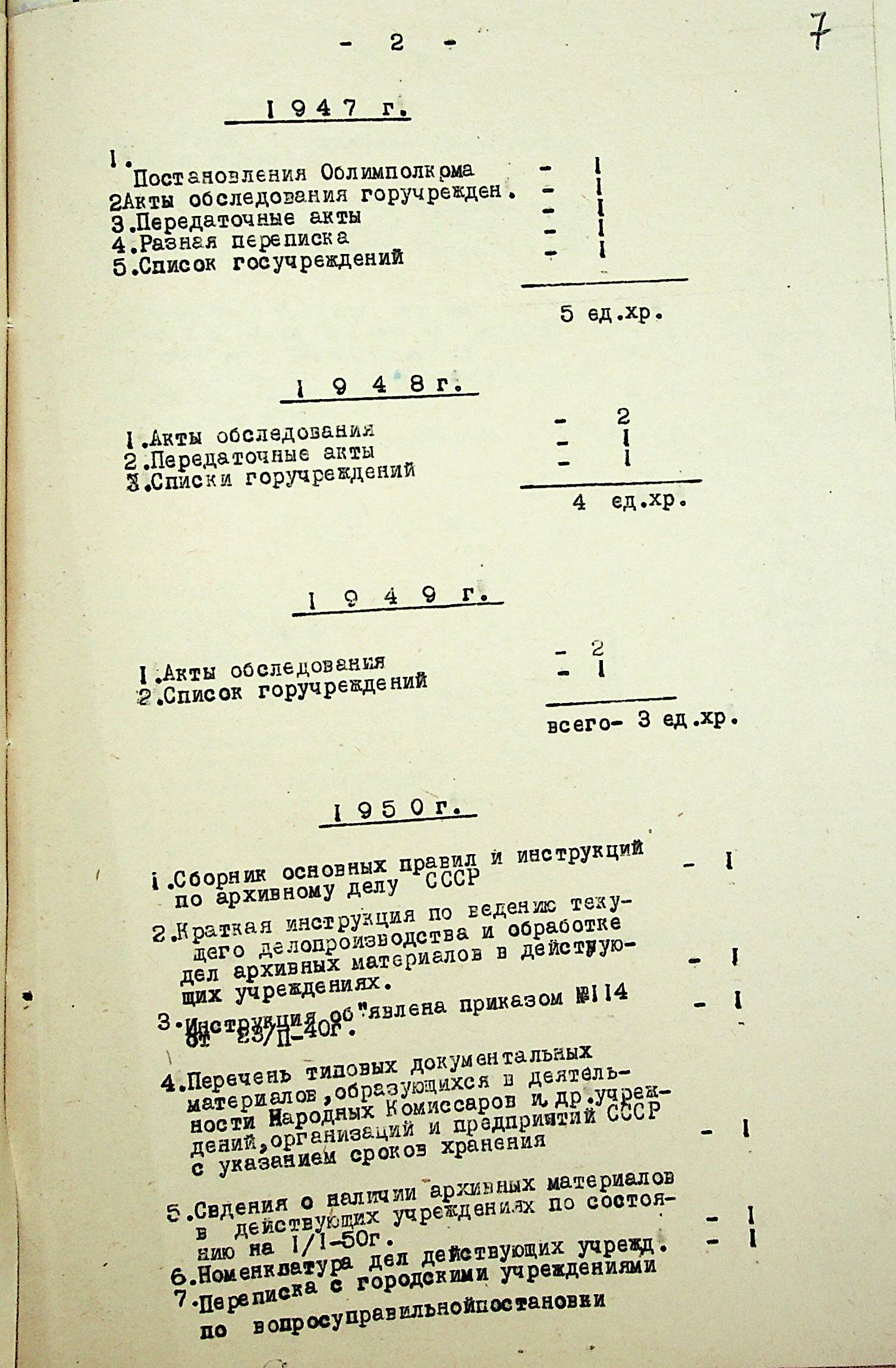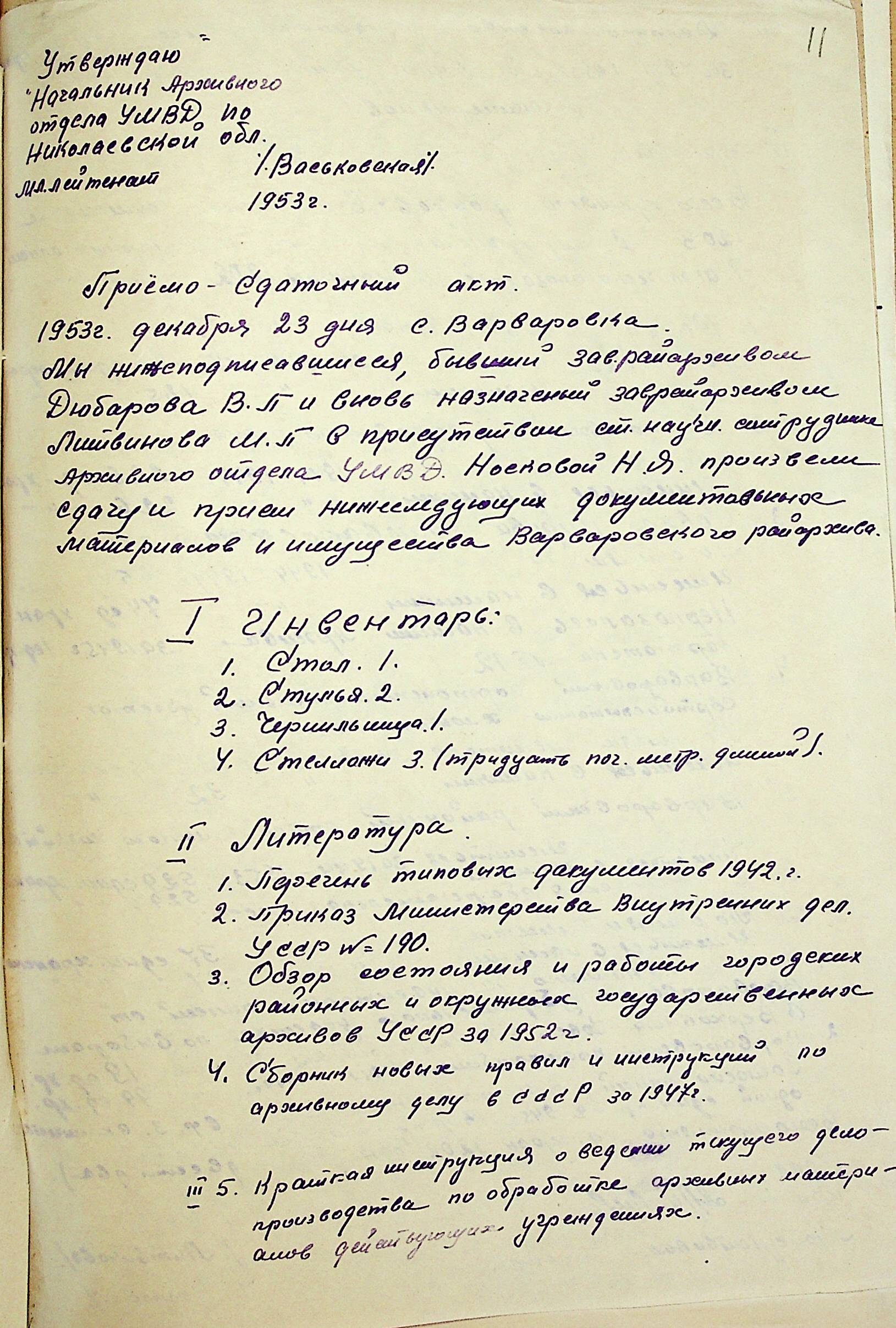 ◦ ◦ ◦ Опис № 3 справ постійного зберігання за 1943–1953 роки
