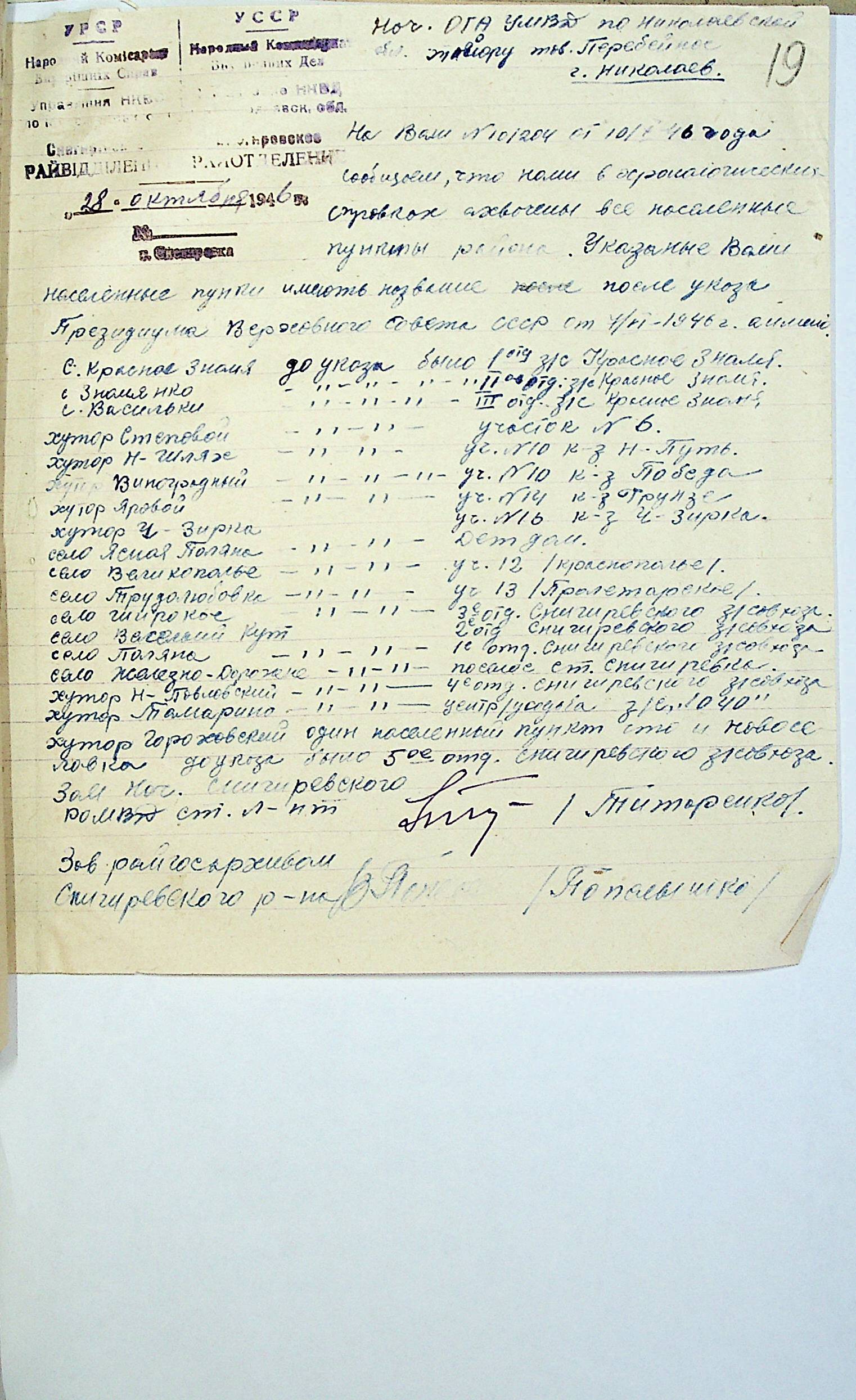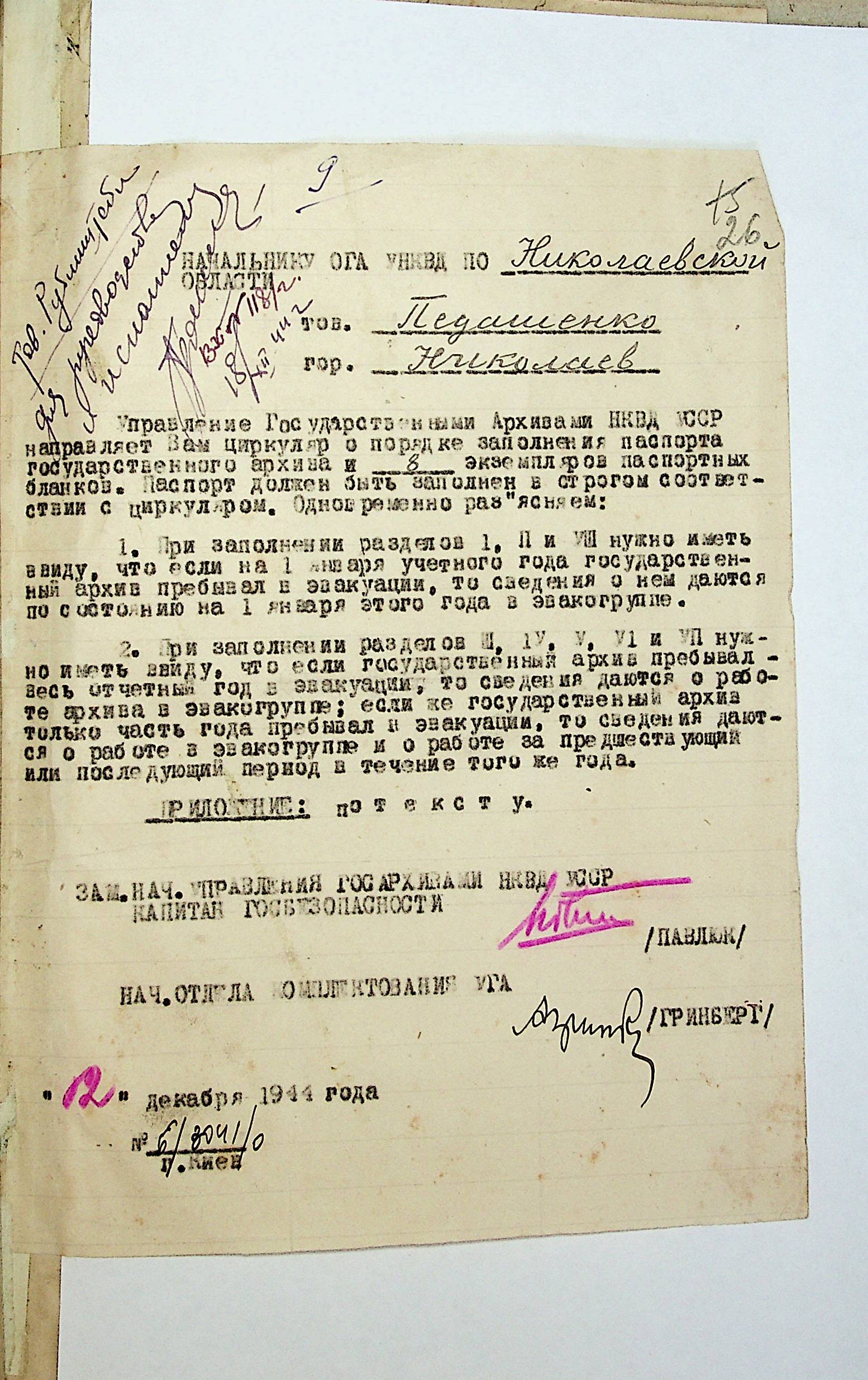 ◦ ◦ Фонд № Р-1002 “Архівний відділ управління виконкому Миколаївської обласної Ради народних депутатів, м. Миколаїв”