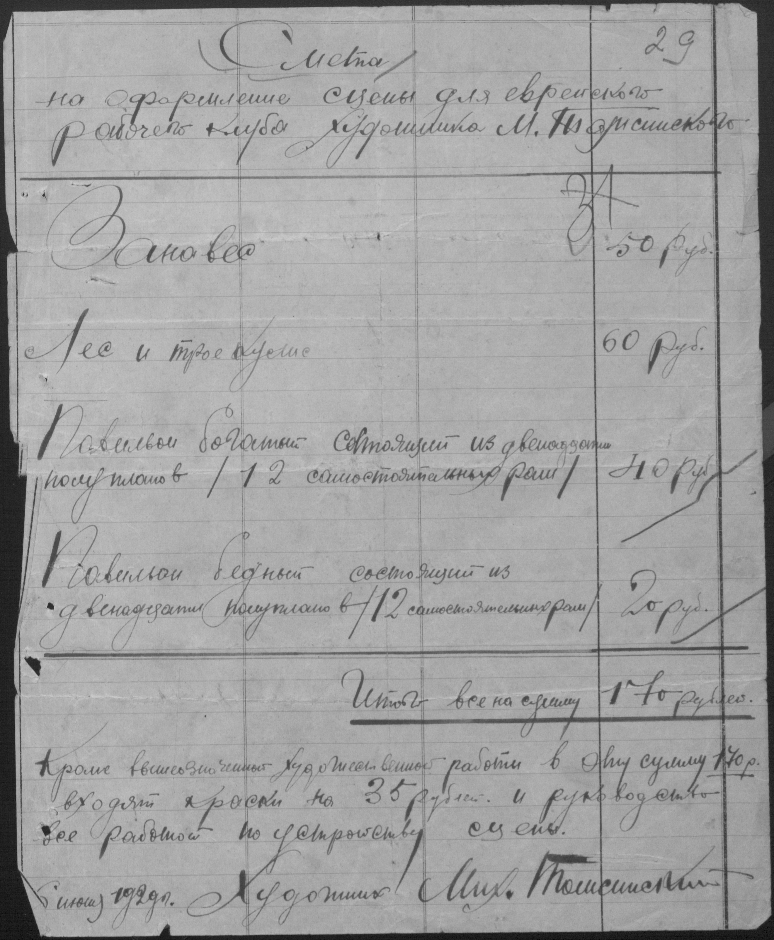 • • • • Справа № 1 “Кошторис адміністративно-господарських витрат на 1930 рік, кошторис на переобладнання колишньої хоральної синагоги під центральний єврейський робітничий будинок культури на 1929-1930 роки. Авансові звіти”