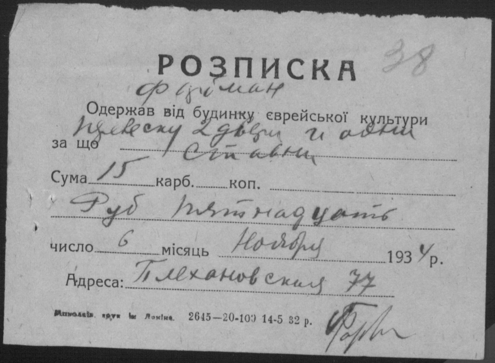 Фонд Р-1185 / Опис 1 / Справа 006