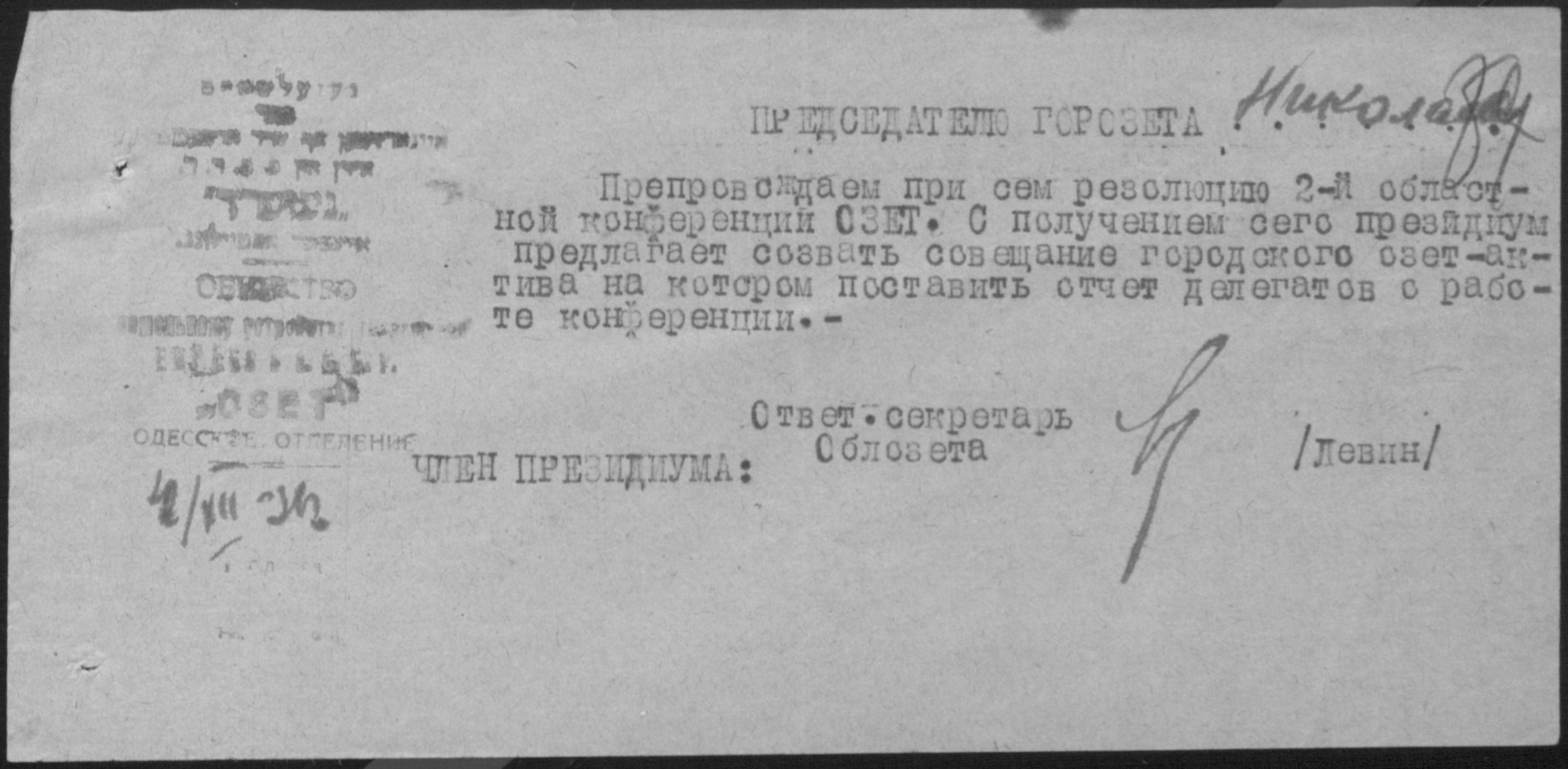 ◦ ◦ Фонд № Р-1190 “Миколаївська міська рада товариства по земельному влаштуванню працюючих євреїв СРСР /ТЗЄП/”