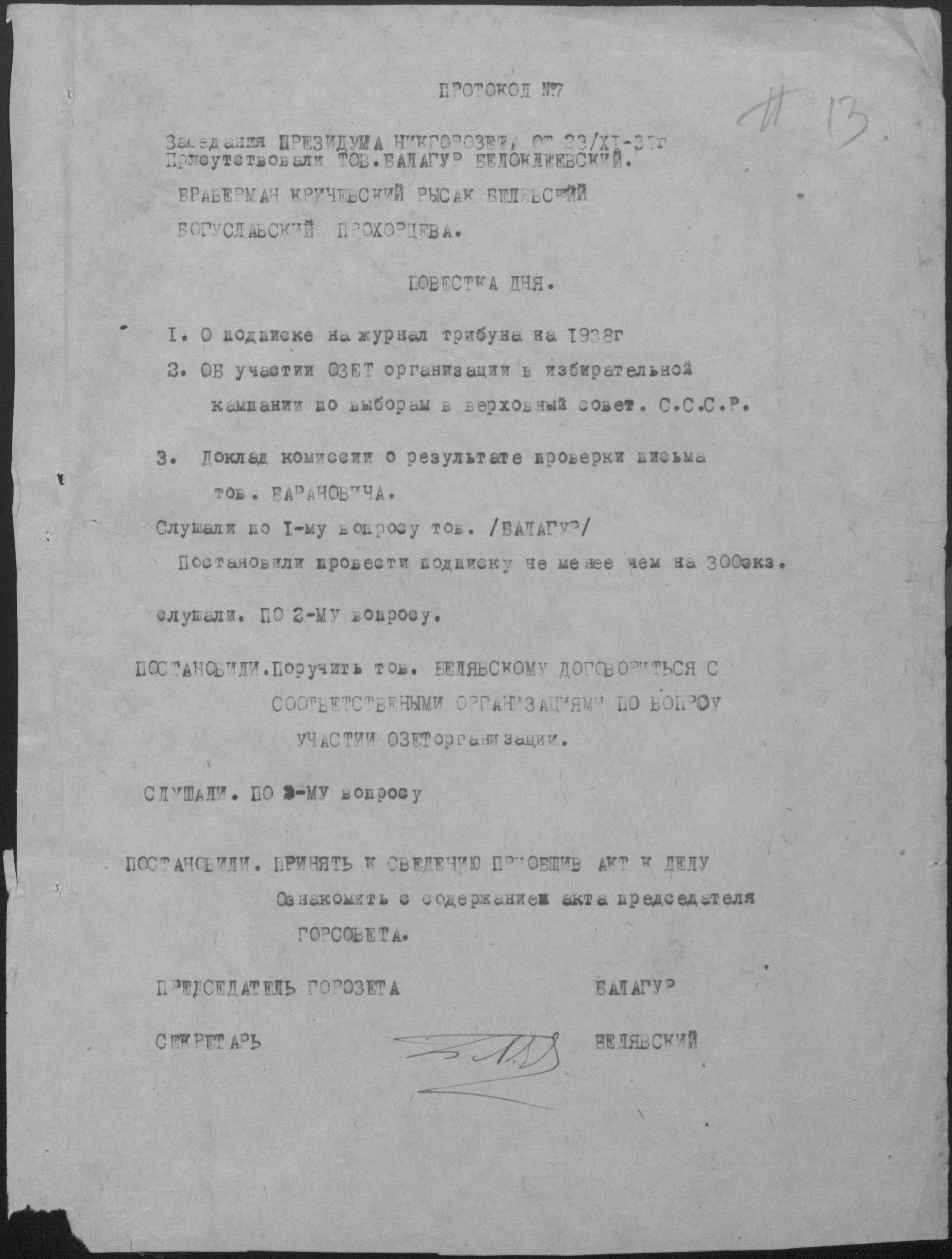 • • • • Справа № 12 “Протоколи засідань президії Миколаївської міської ради ТЗЄП та звіт про роботу за 1937 рік”