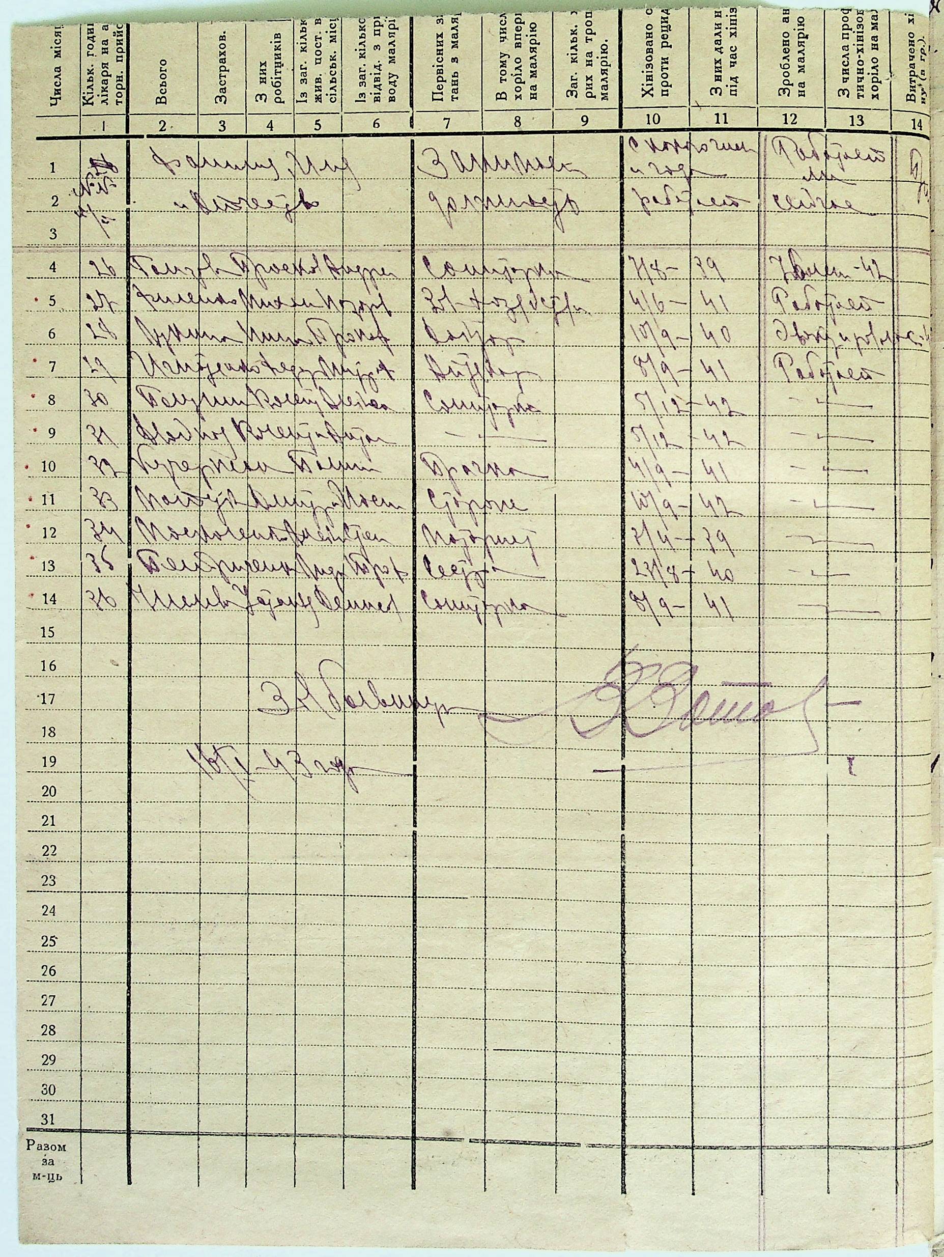 • • • • Справа № 21 “Списки пожежної команди, трактористів, комбайнерів, механізаторів, бригадирів, працівників і службовців лікарні і учителів. Відомості про наявність та здачу зерна, рух сільськогосподарських продуктів, збір податків, наявність транспортних засобів, облік паливно-мастильних матеріалів”