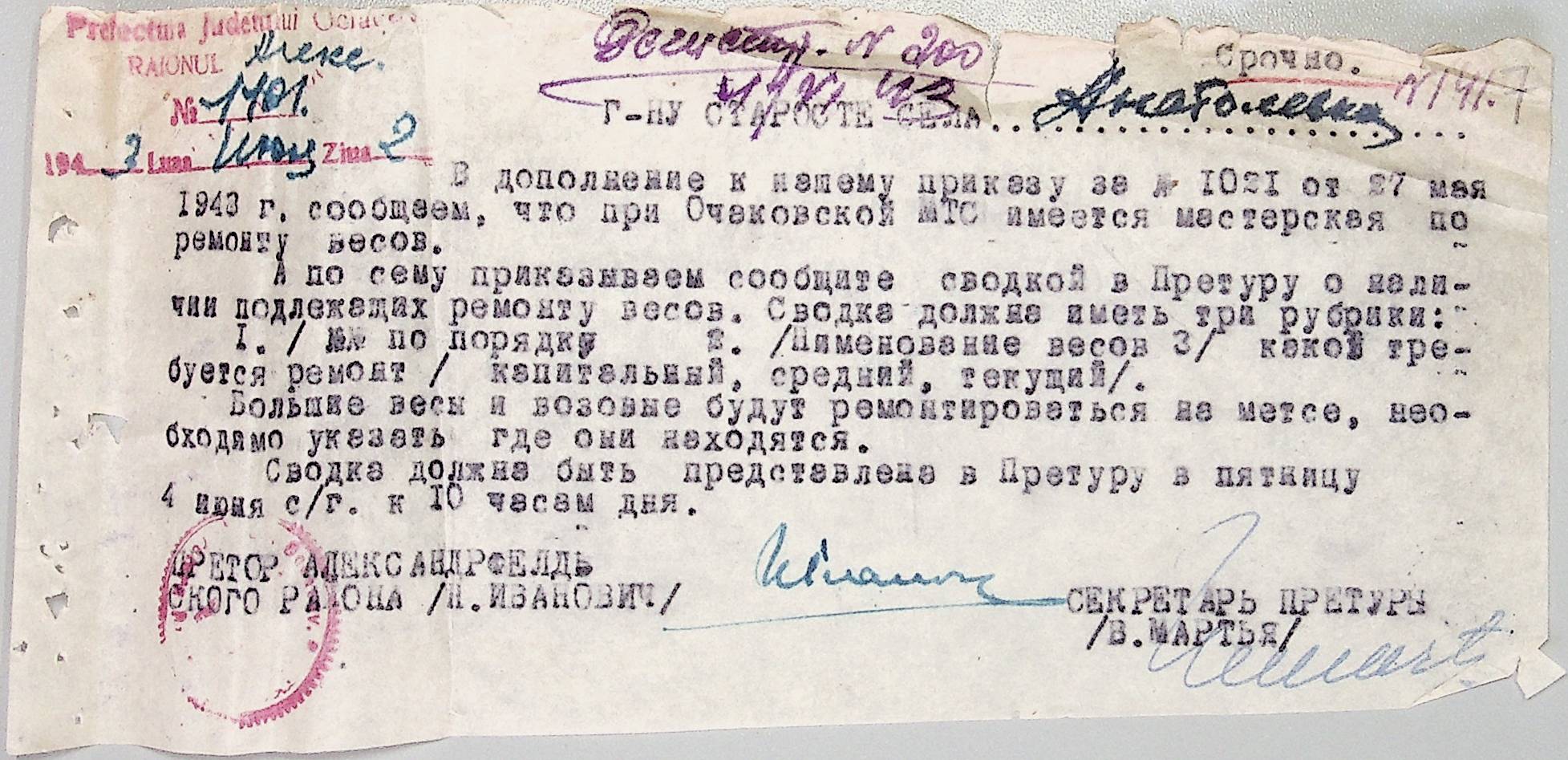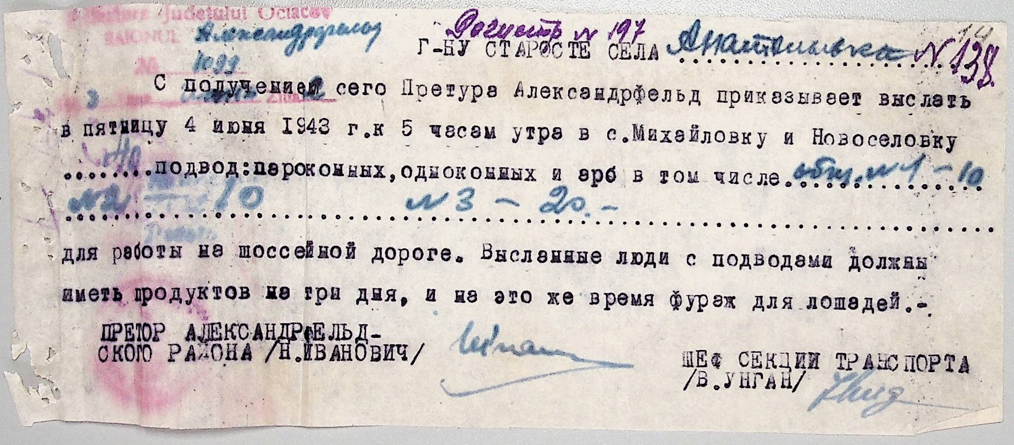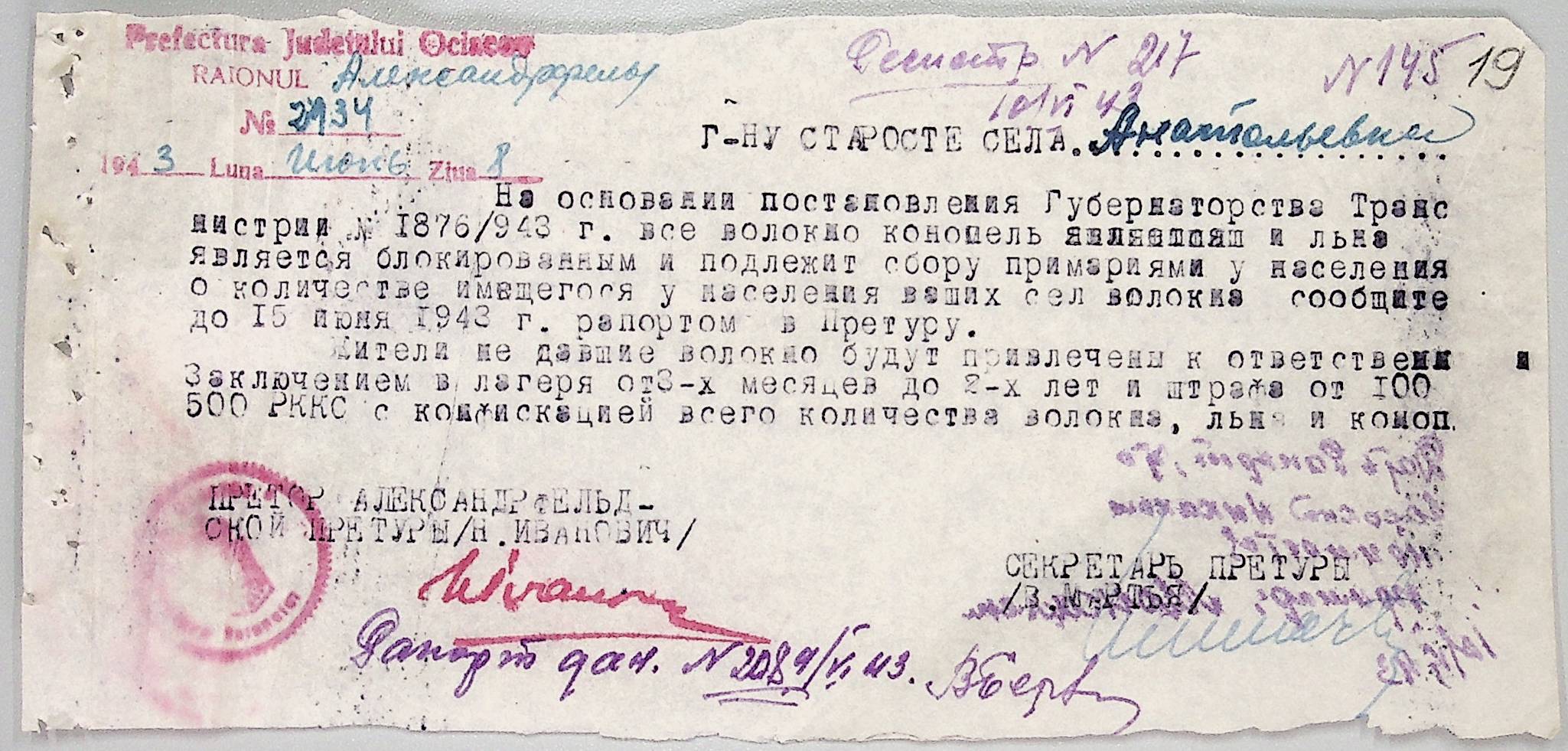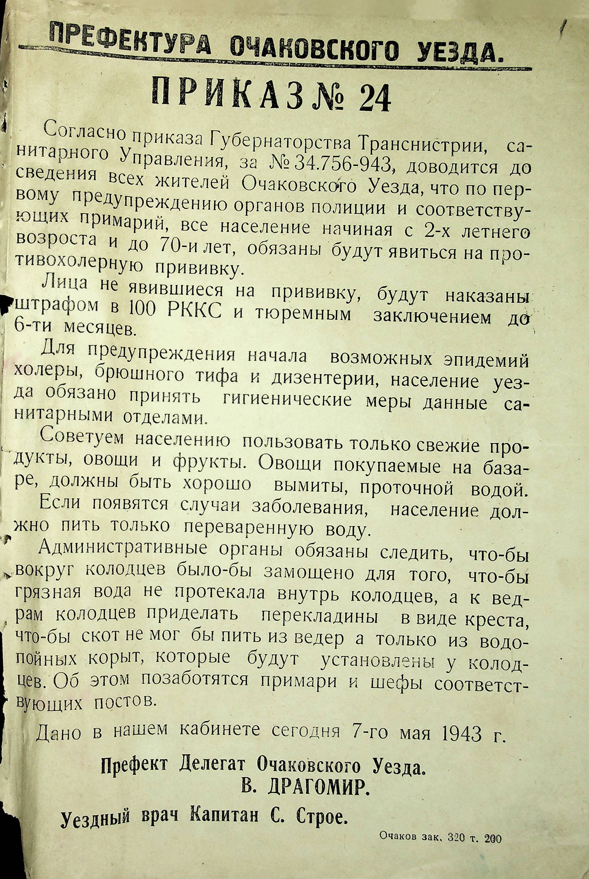 • • • • Справа № 44 “Документи (обіжники, накази, рапорти, інструкції, листування) префектури Очаківського повіту, претури і райземвідділу Александрфельдського району про протихолерне щеплення, боротьбу зі сказом тварин, визначення врожайності і розподіл врожаю, норми відгодівлі тварин; про порядок складання поліцейських звітів, організацію пожежних бригад та інш. питань”