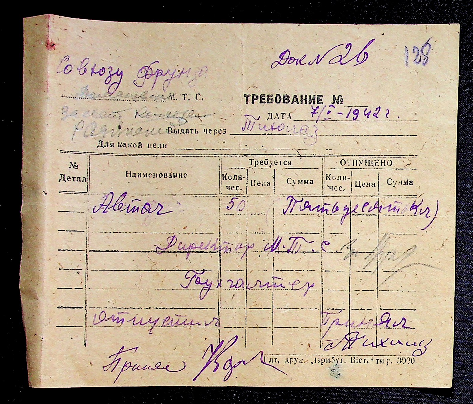 ◦ ◦ Фонд № Н-2699 “Державна ферма претури Доманівського району, с. Олександродар Доманівського району”