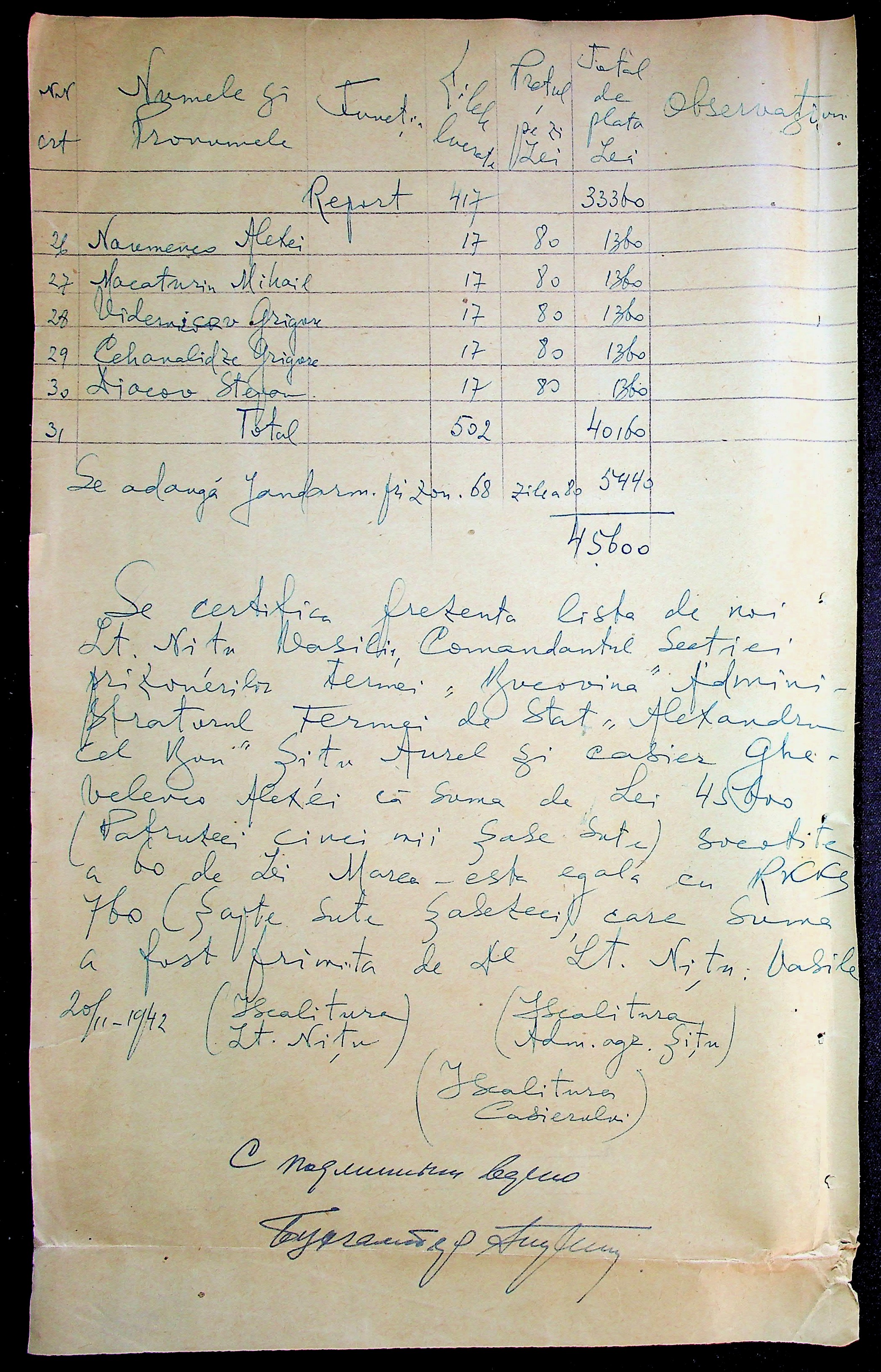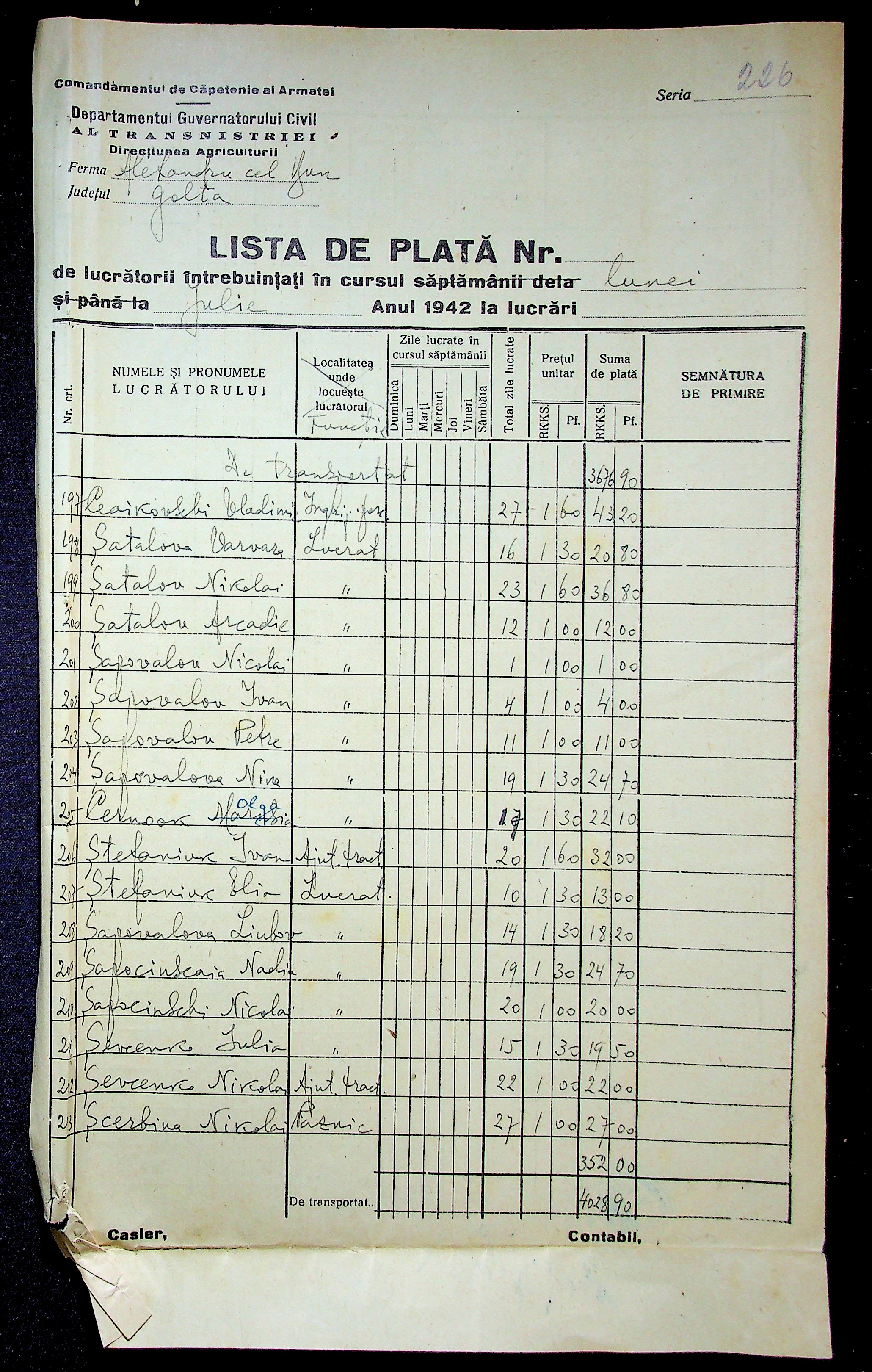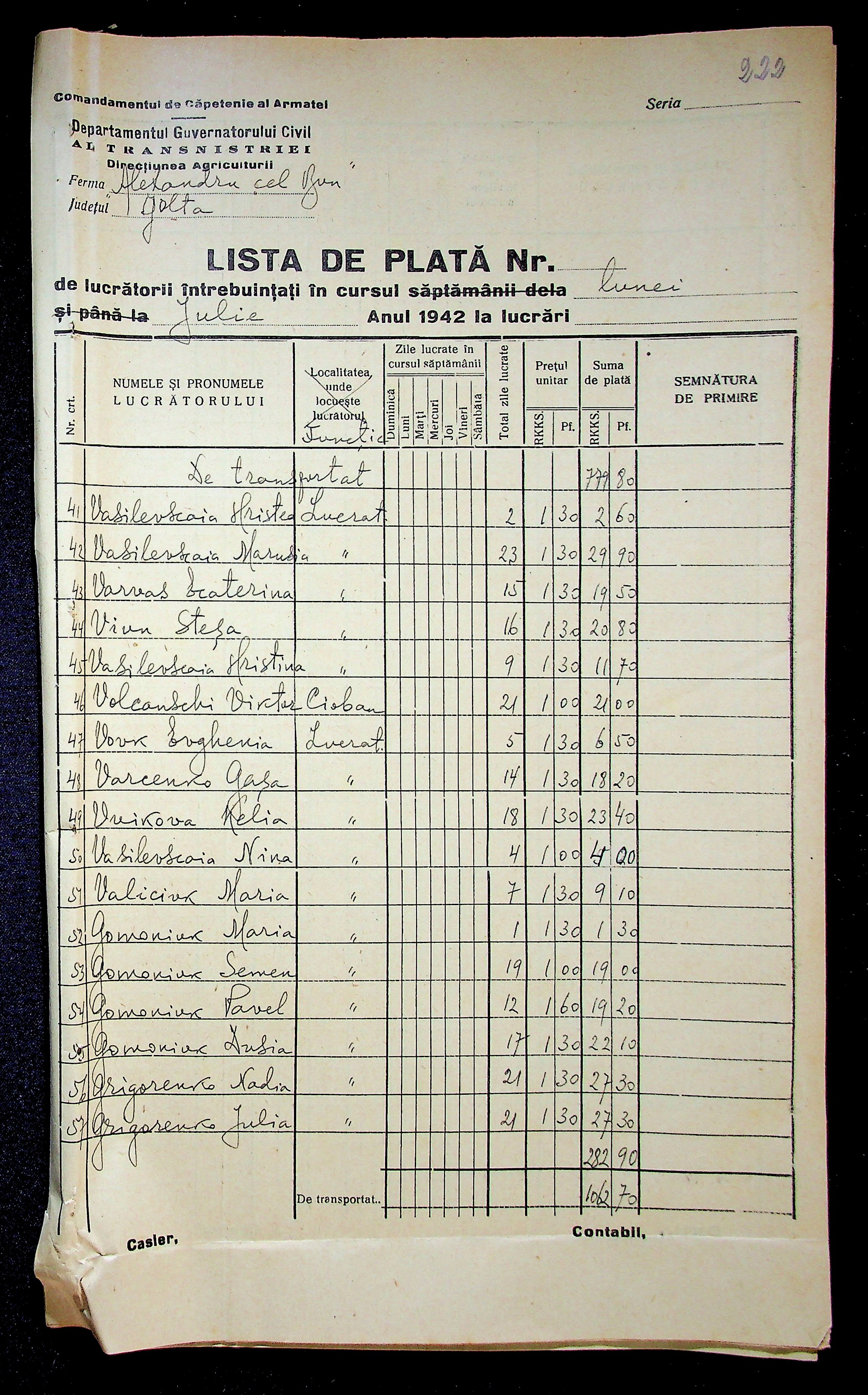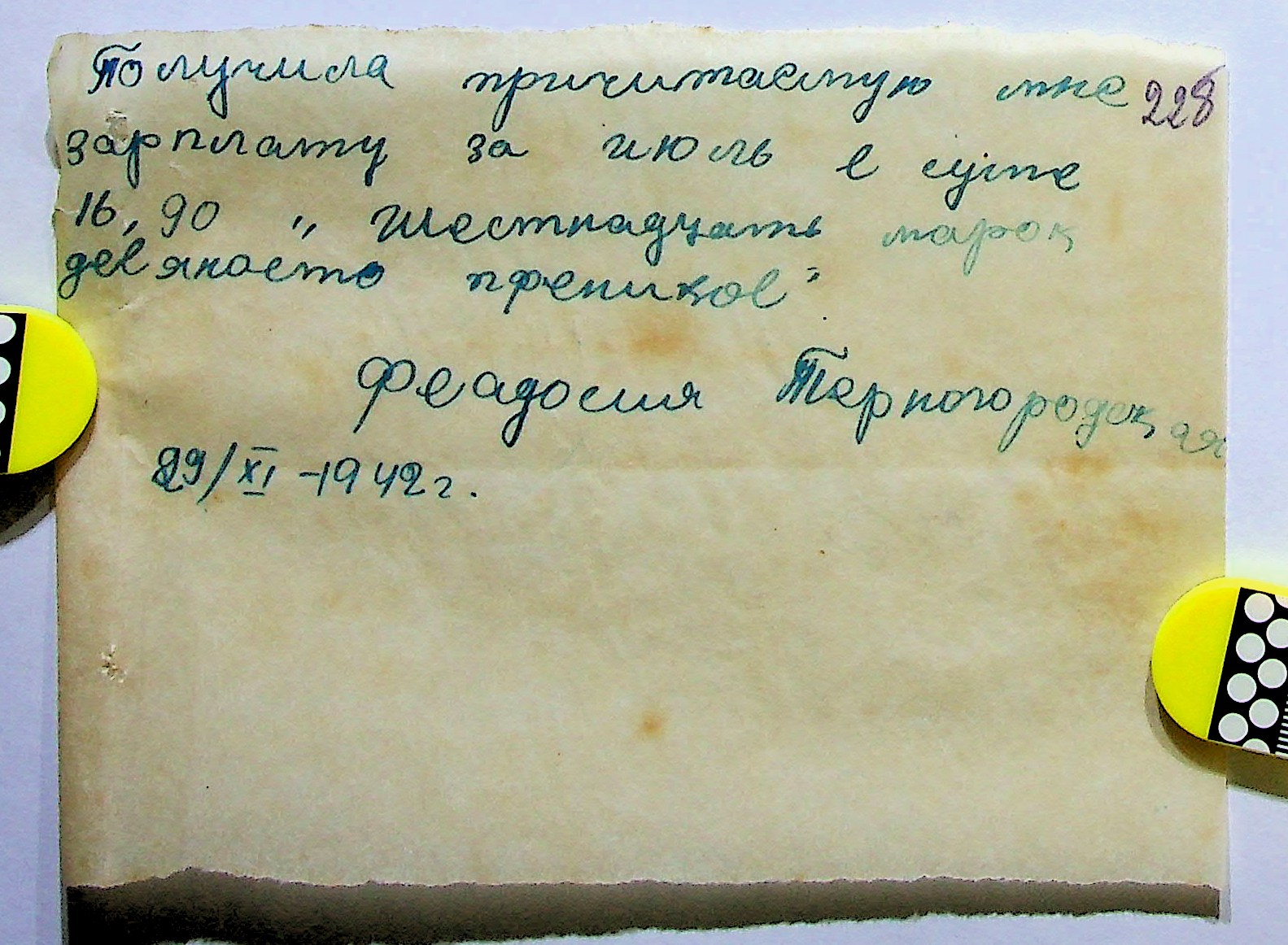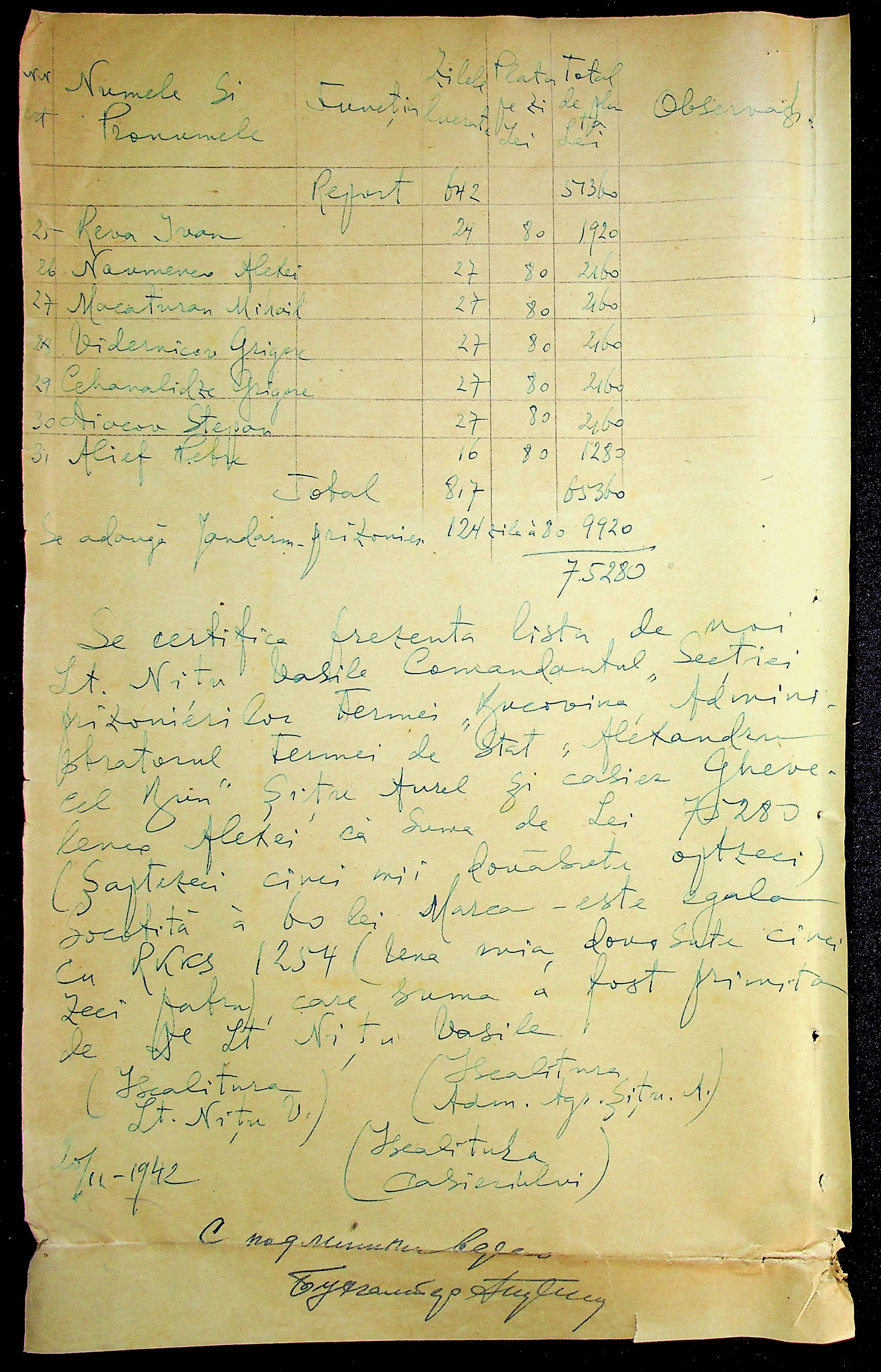 • • • • Справа № 11 “Відомості виплати заробітної плати робітникам і службовцям, касові документи за 1942 рік”