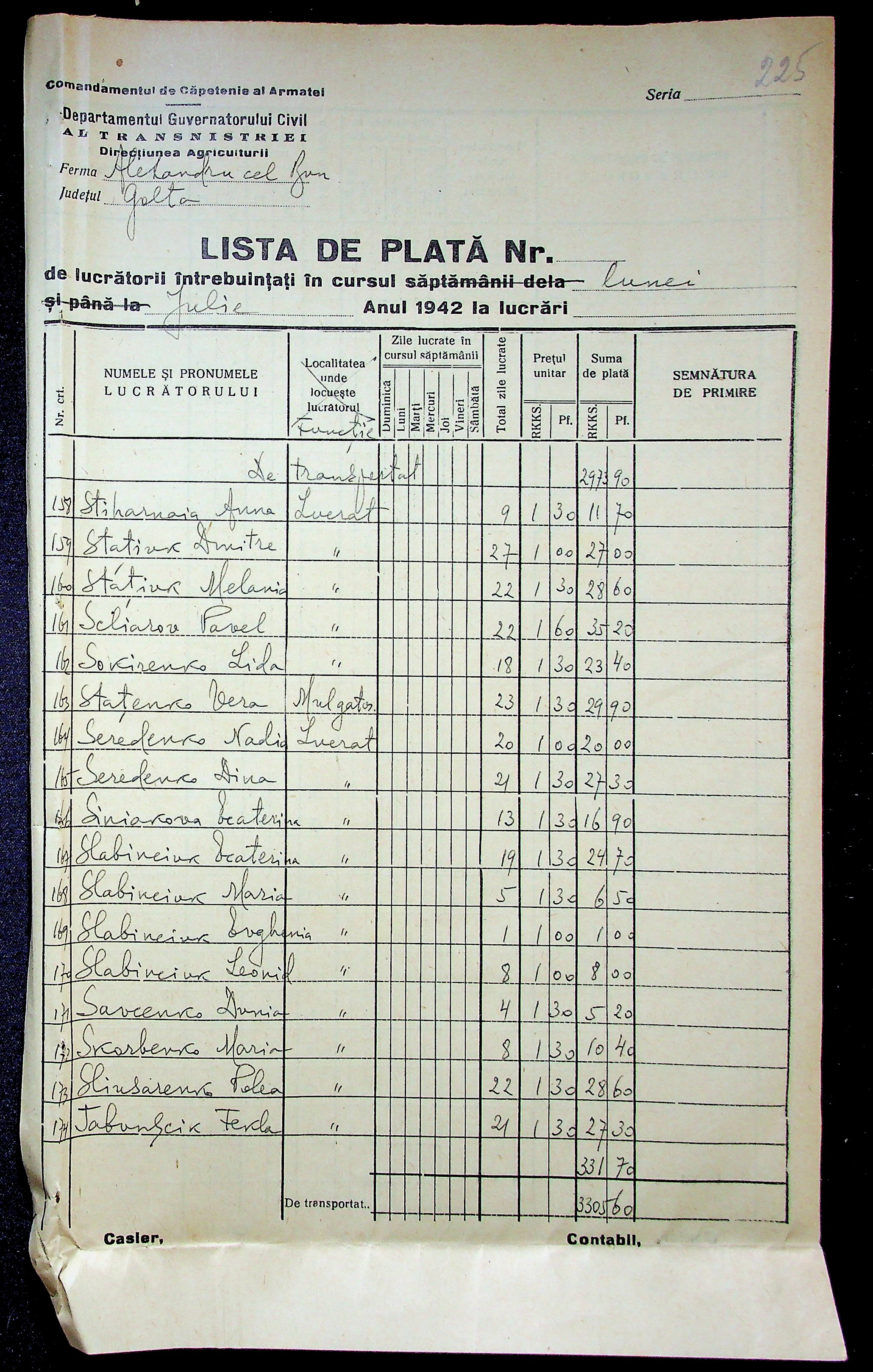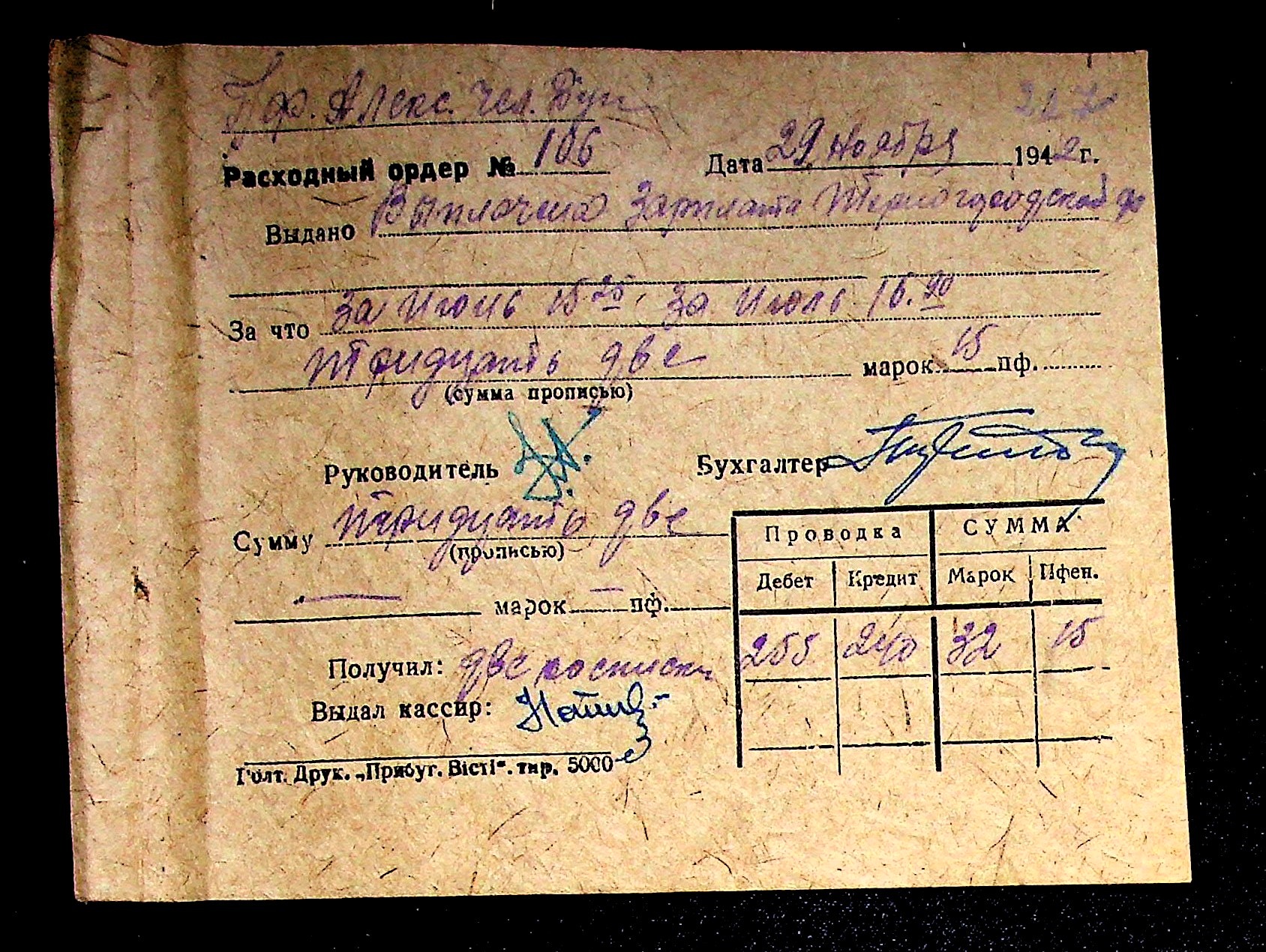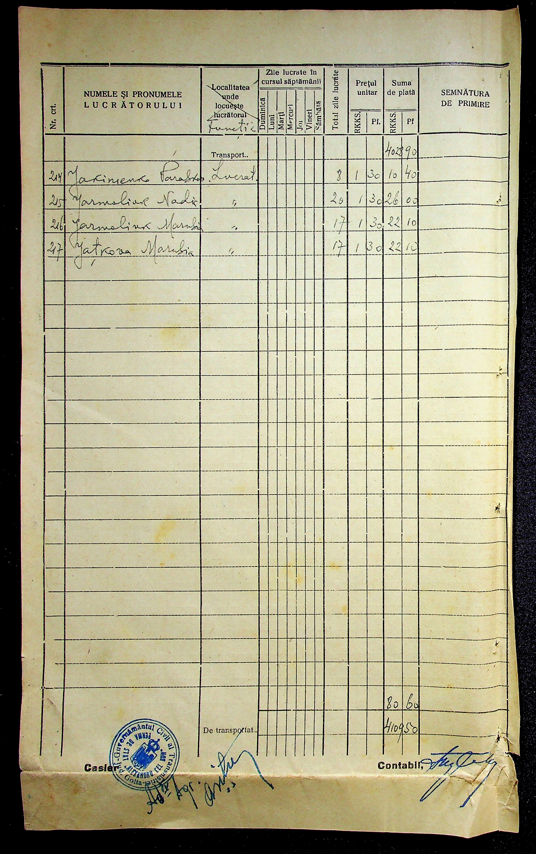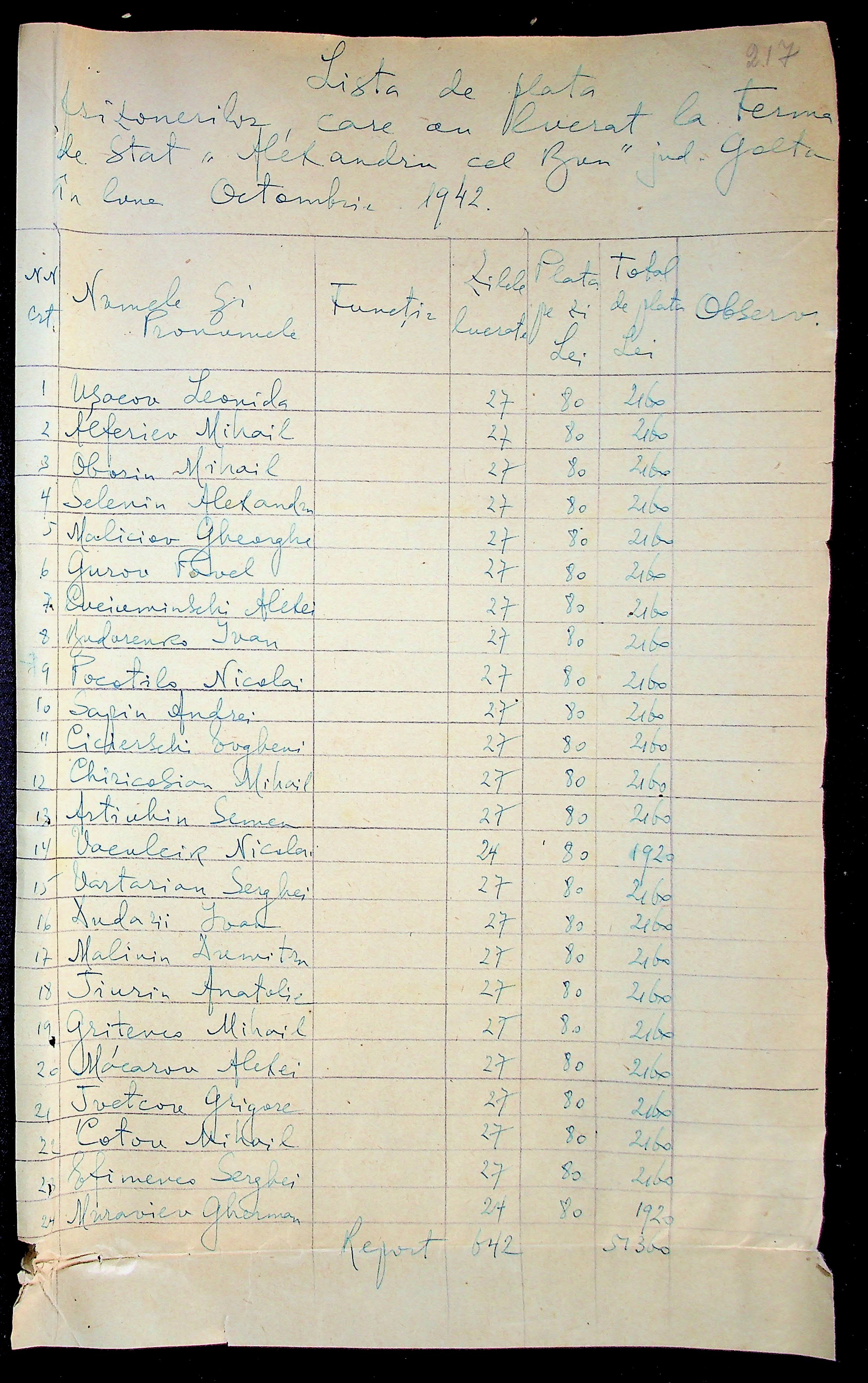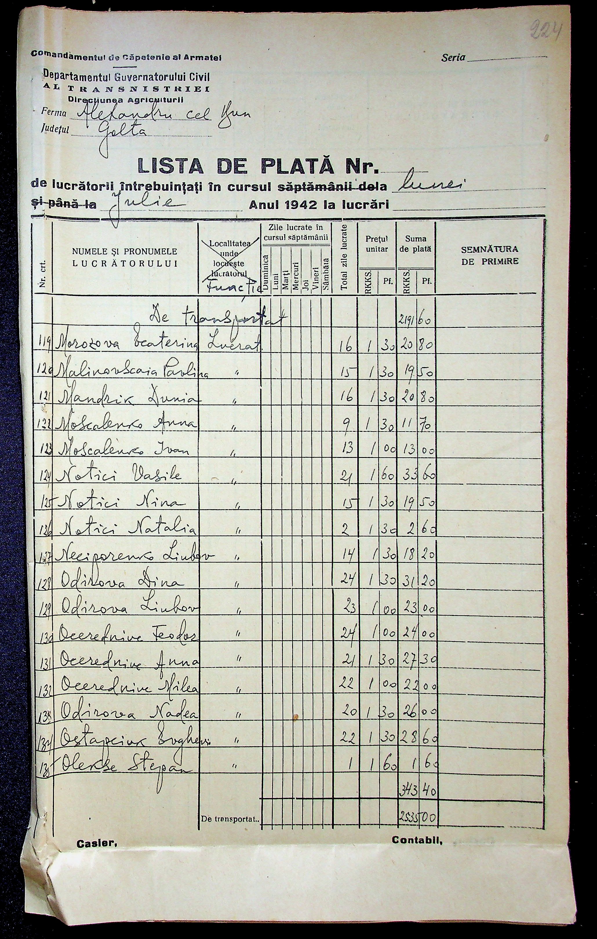 • • • • Справа № 11 “Відомості виплати заробітної плати робітникам і службовцям, касові документи за 1942 рік”