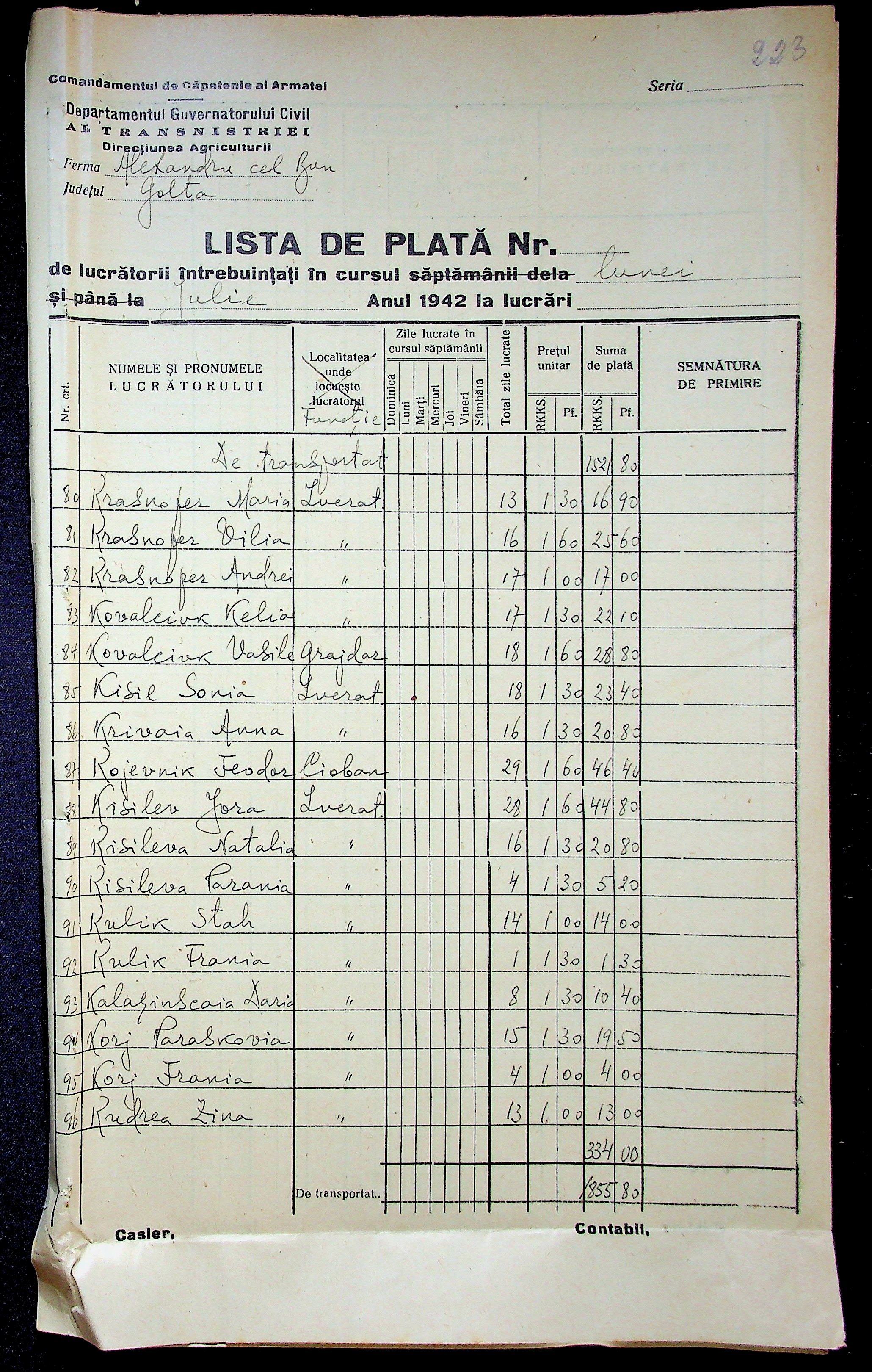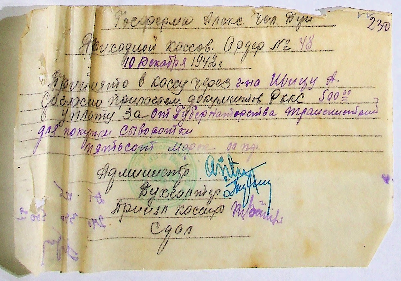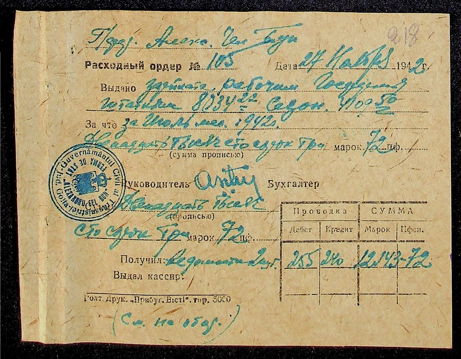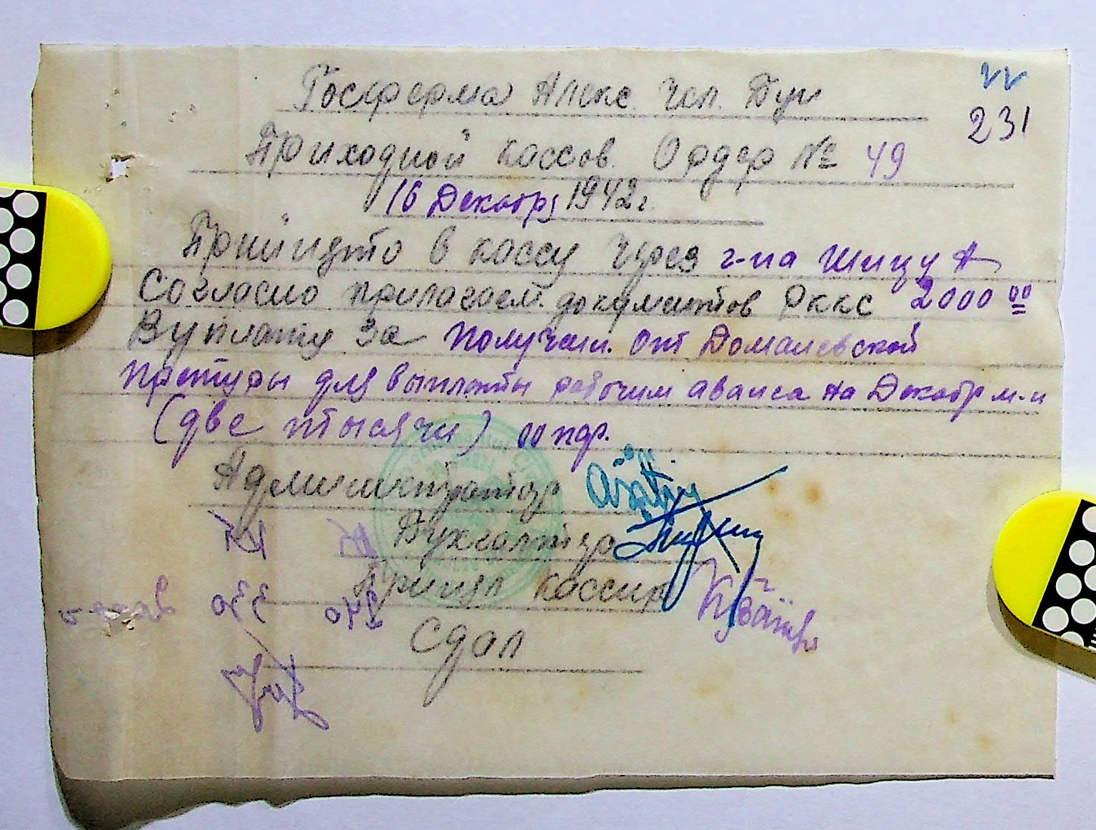 • • • • Справа № 11 “Відомості виплати заробітної плати робітникам і службовцям, касові документи за 1942 рік”