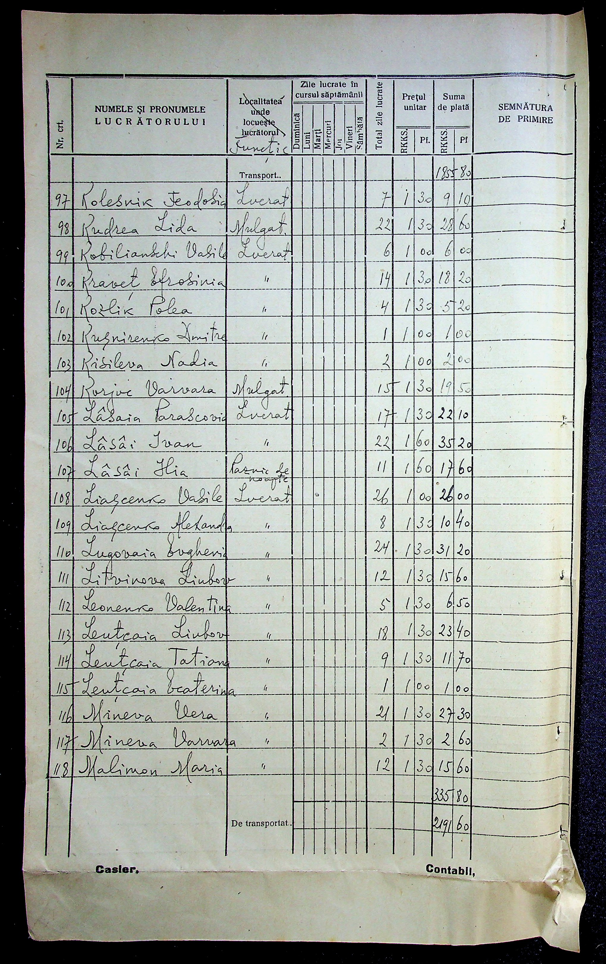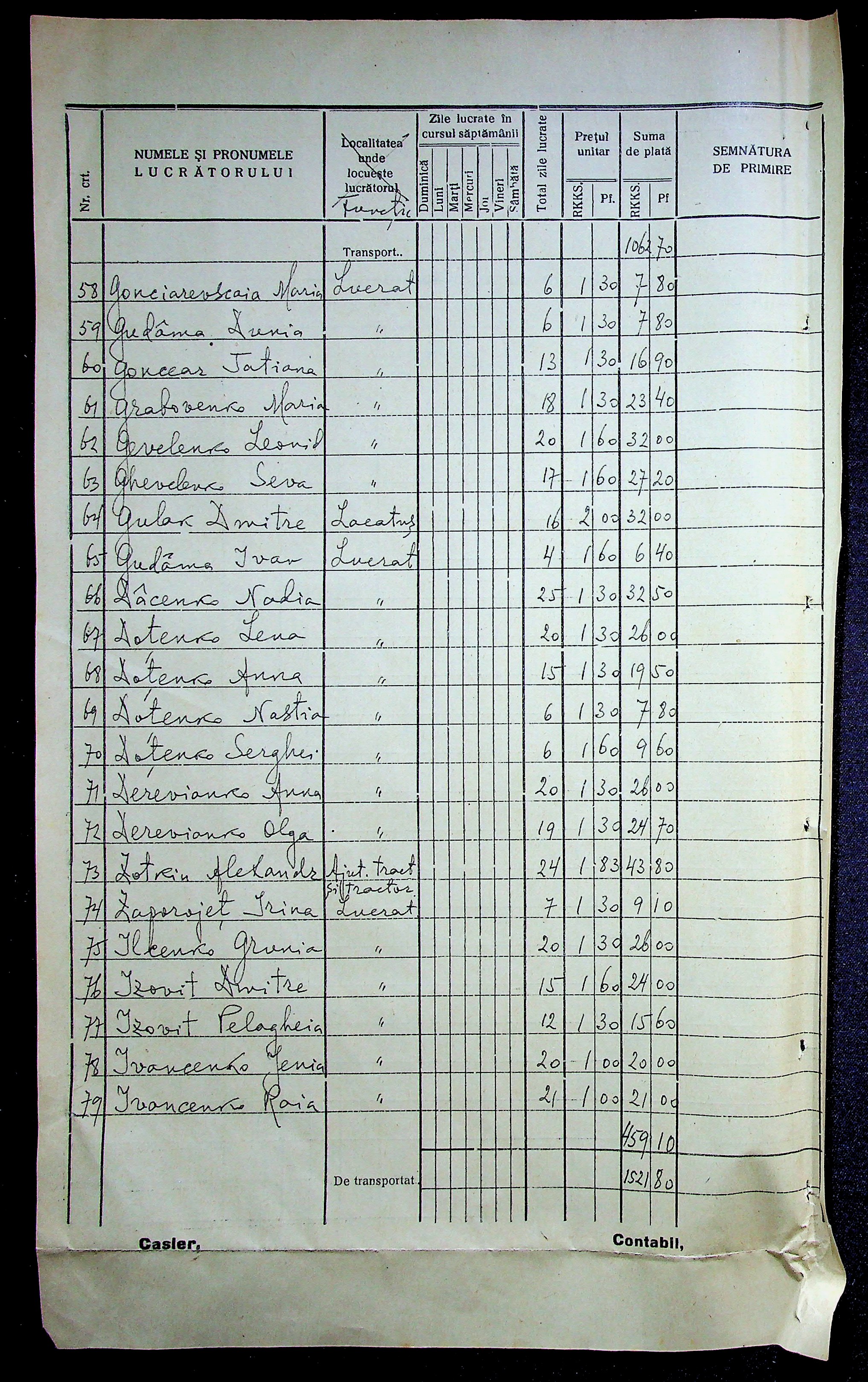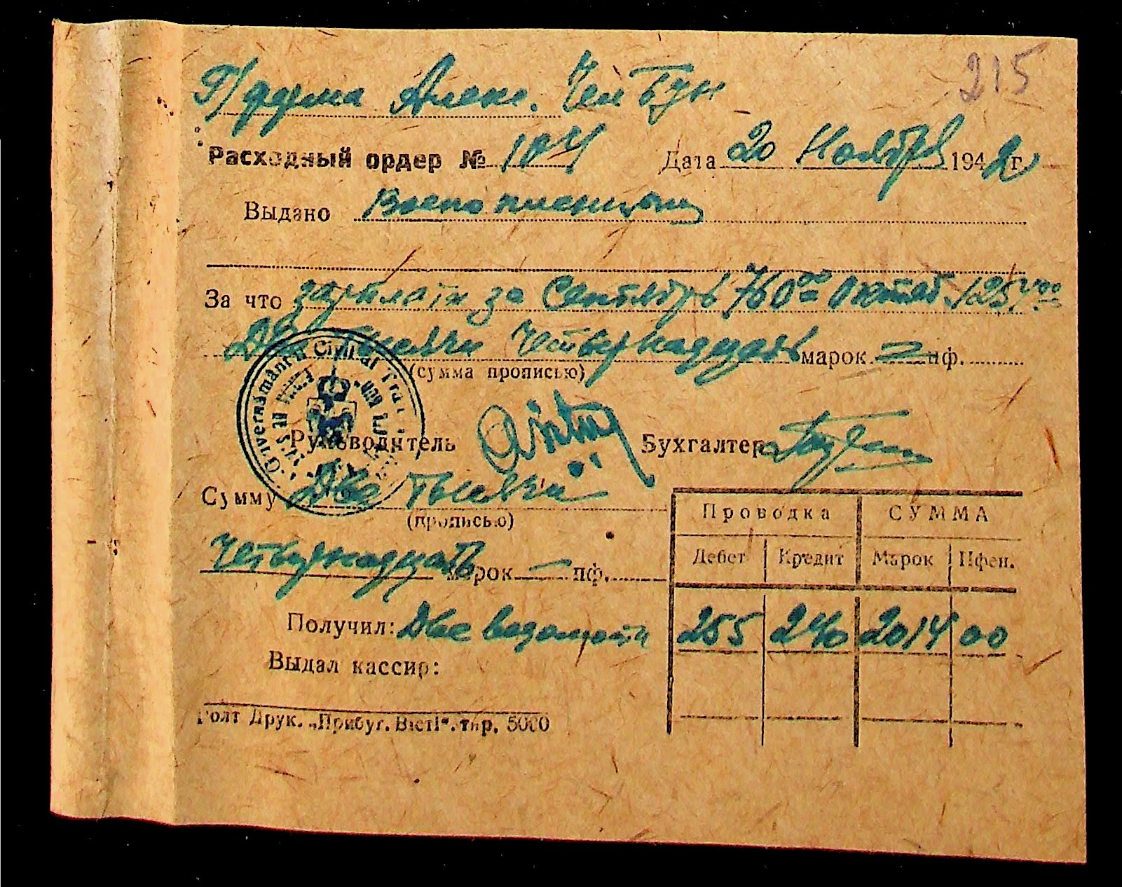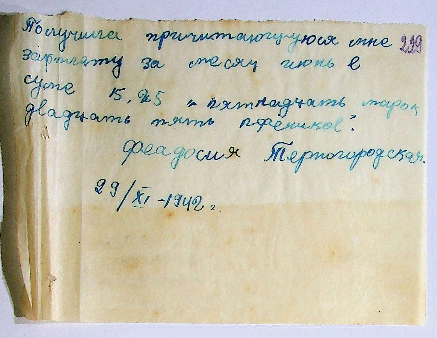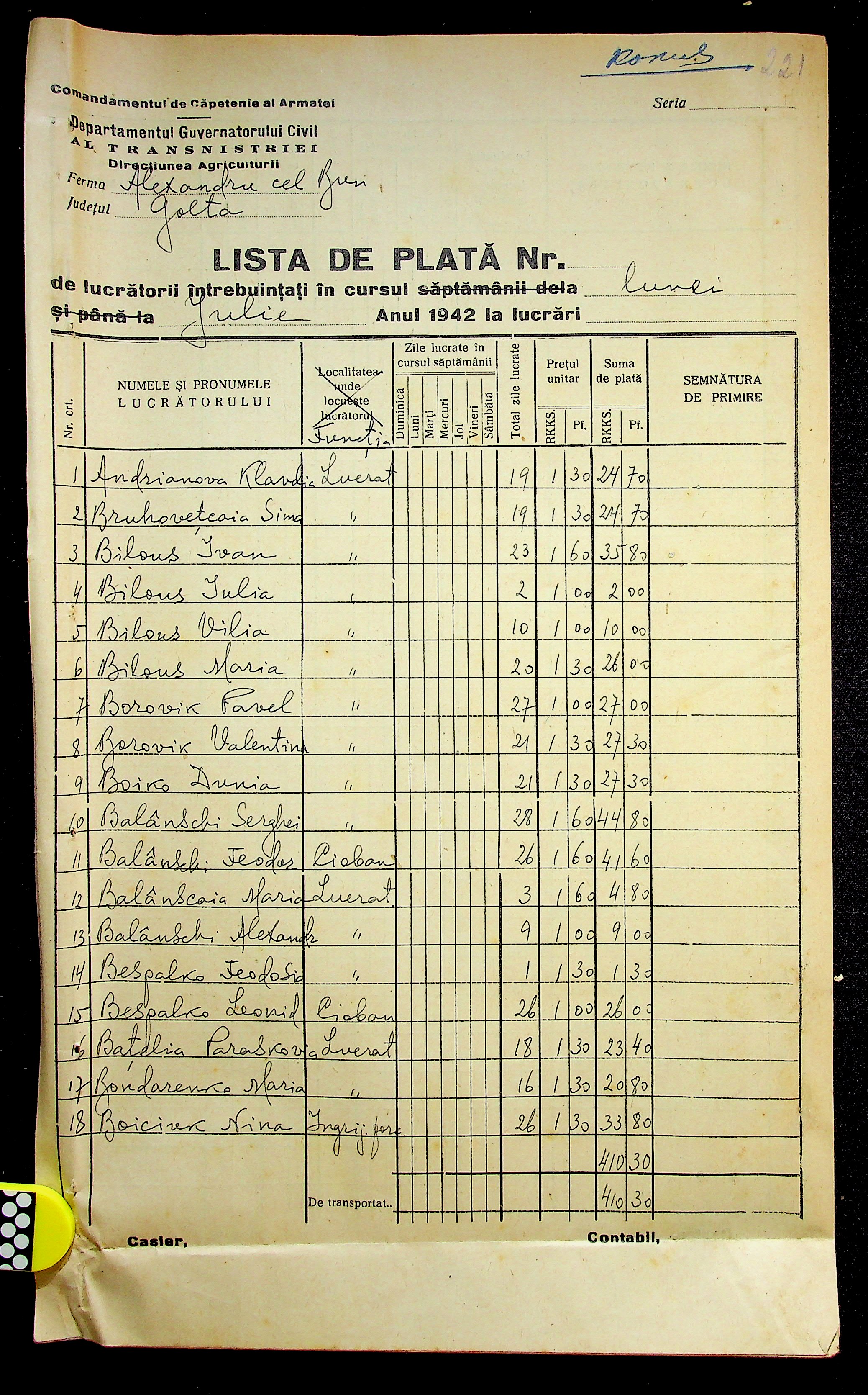 • • • • Справа № 11 “Відомості виплати заробітної плати робітникам і службовцям, касові документи за 1942 рік”