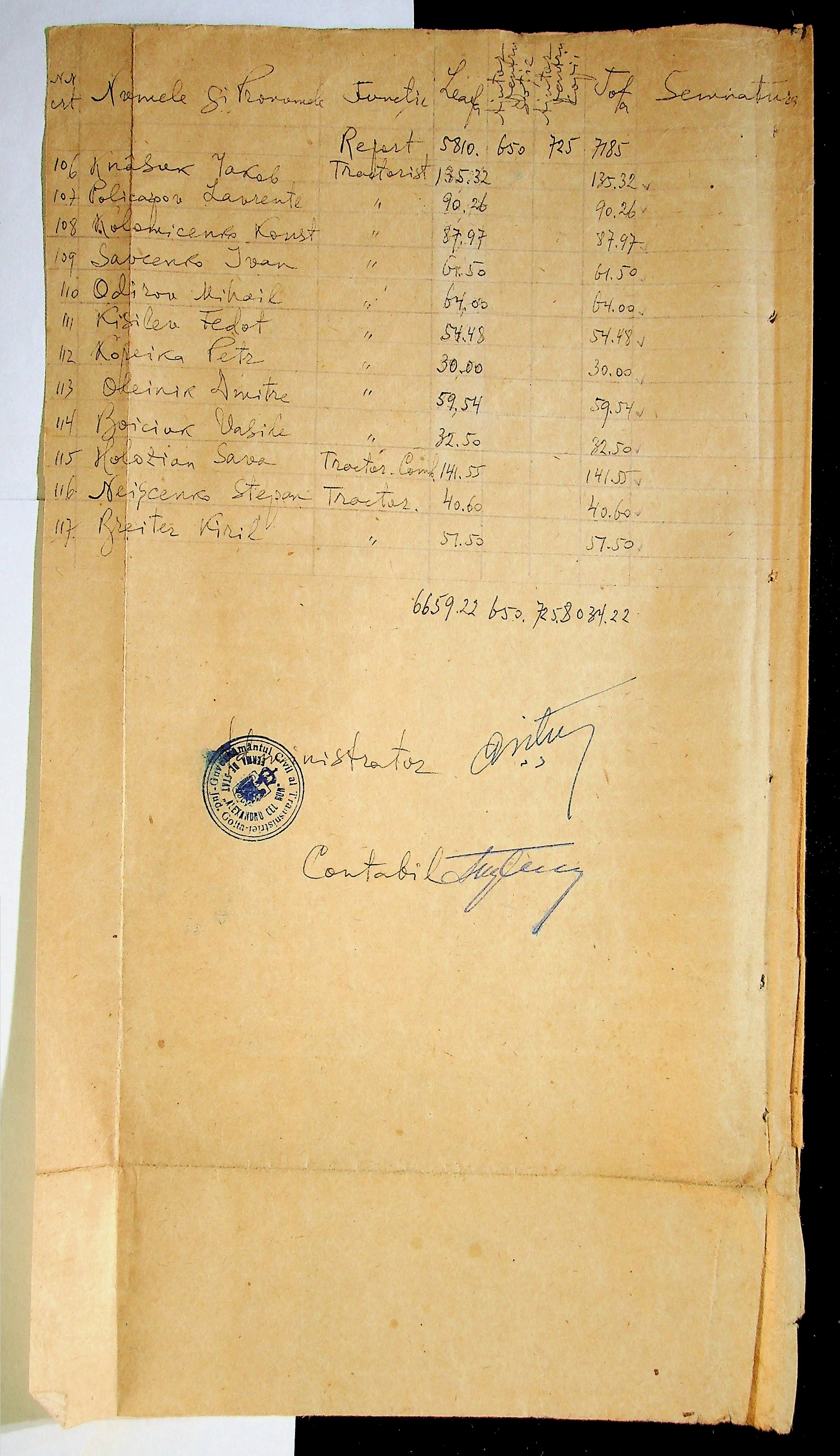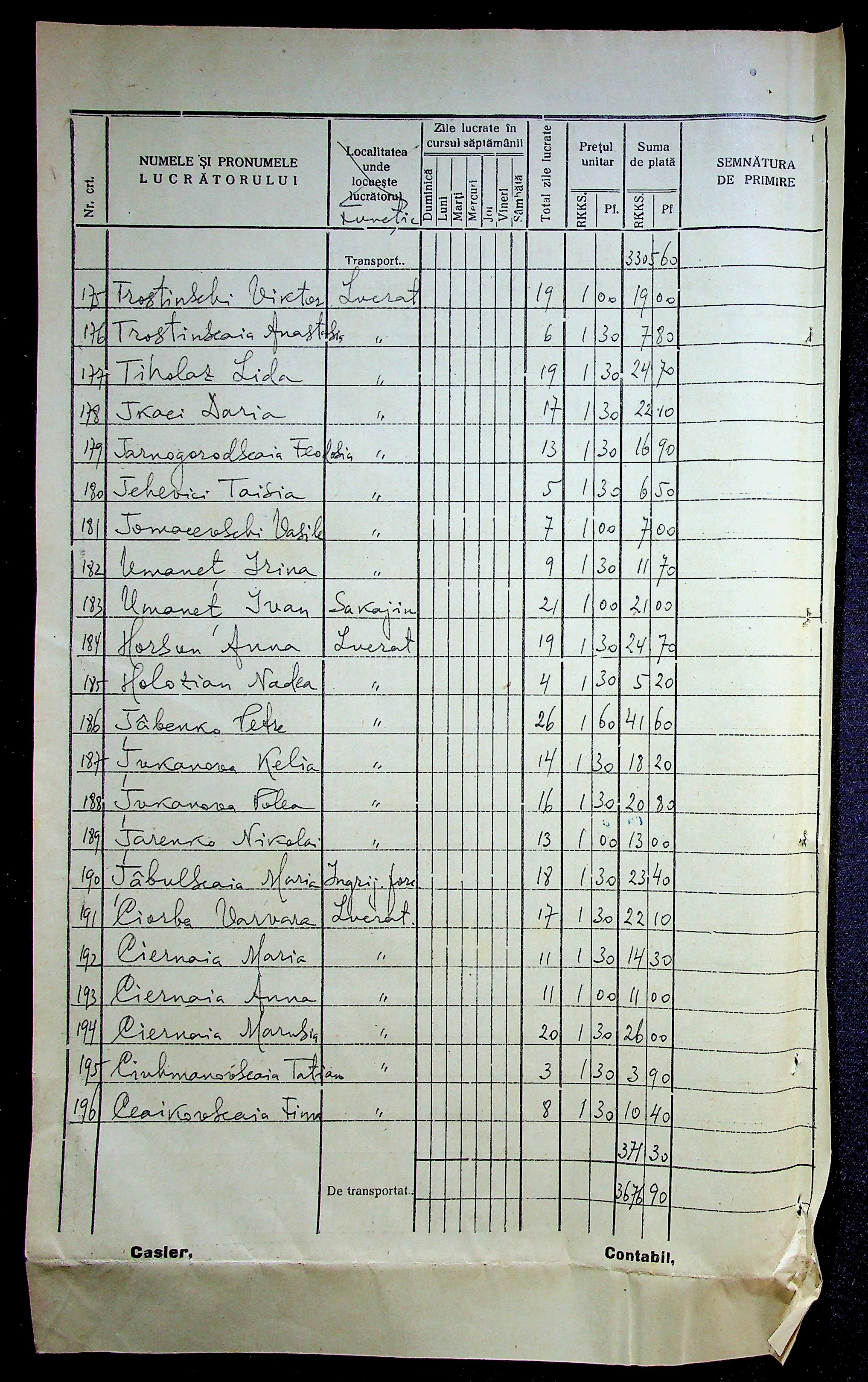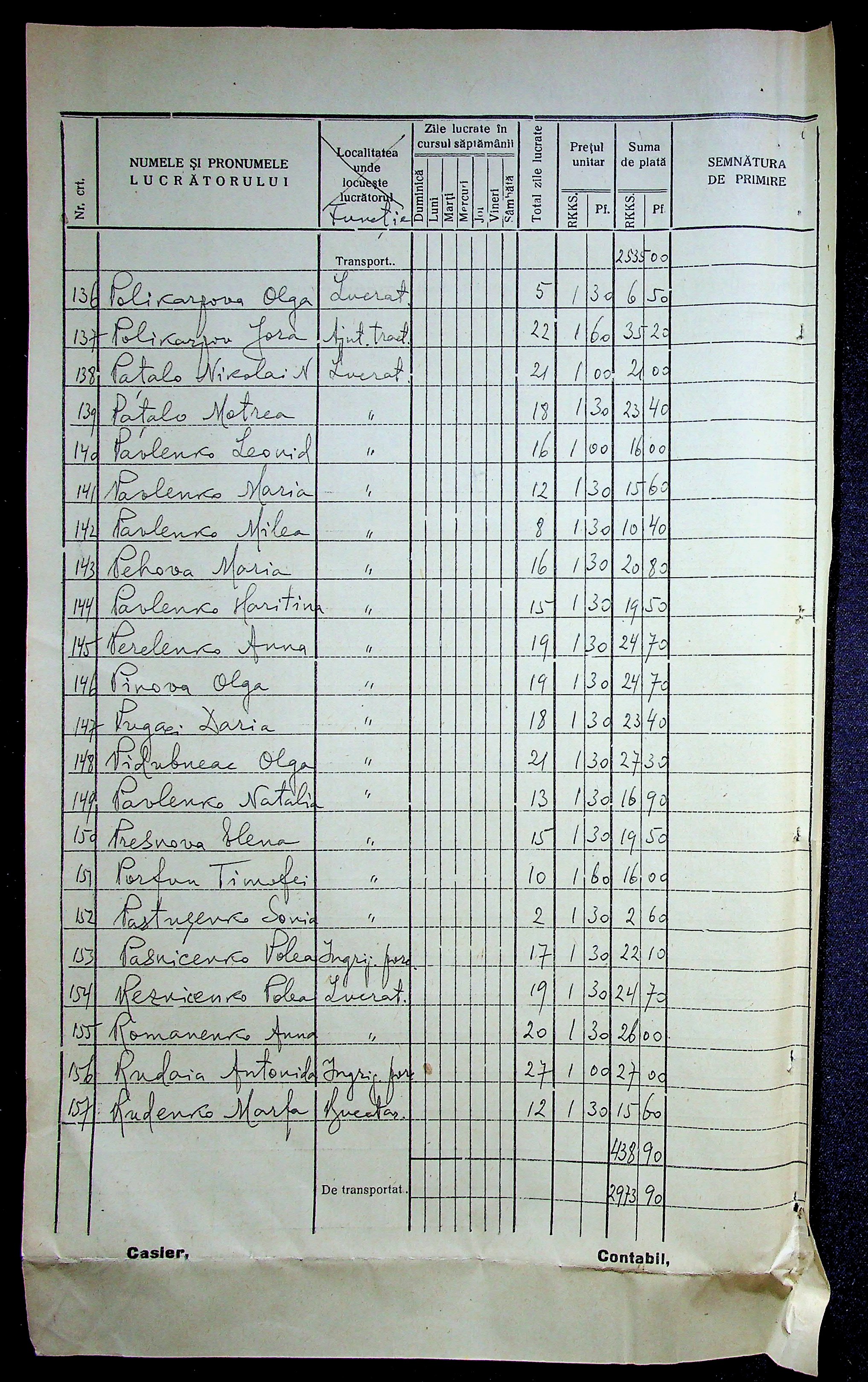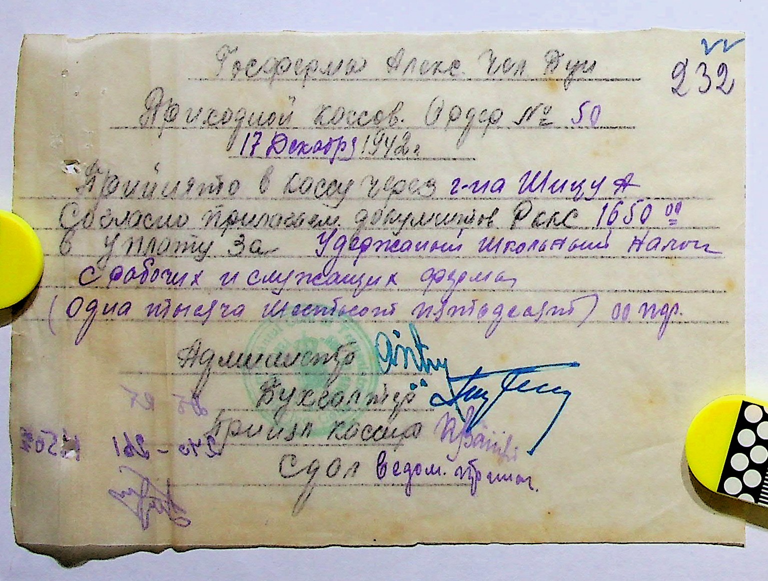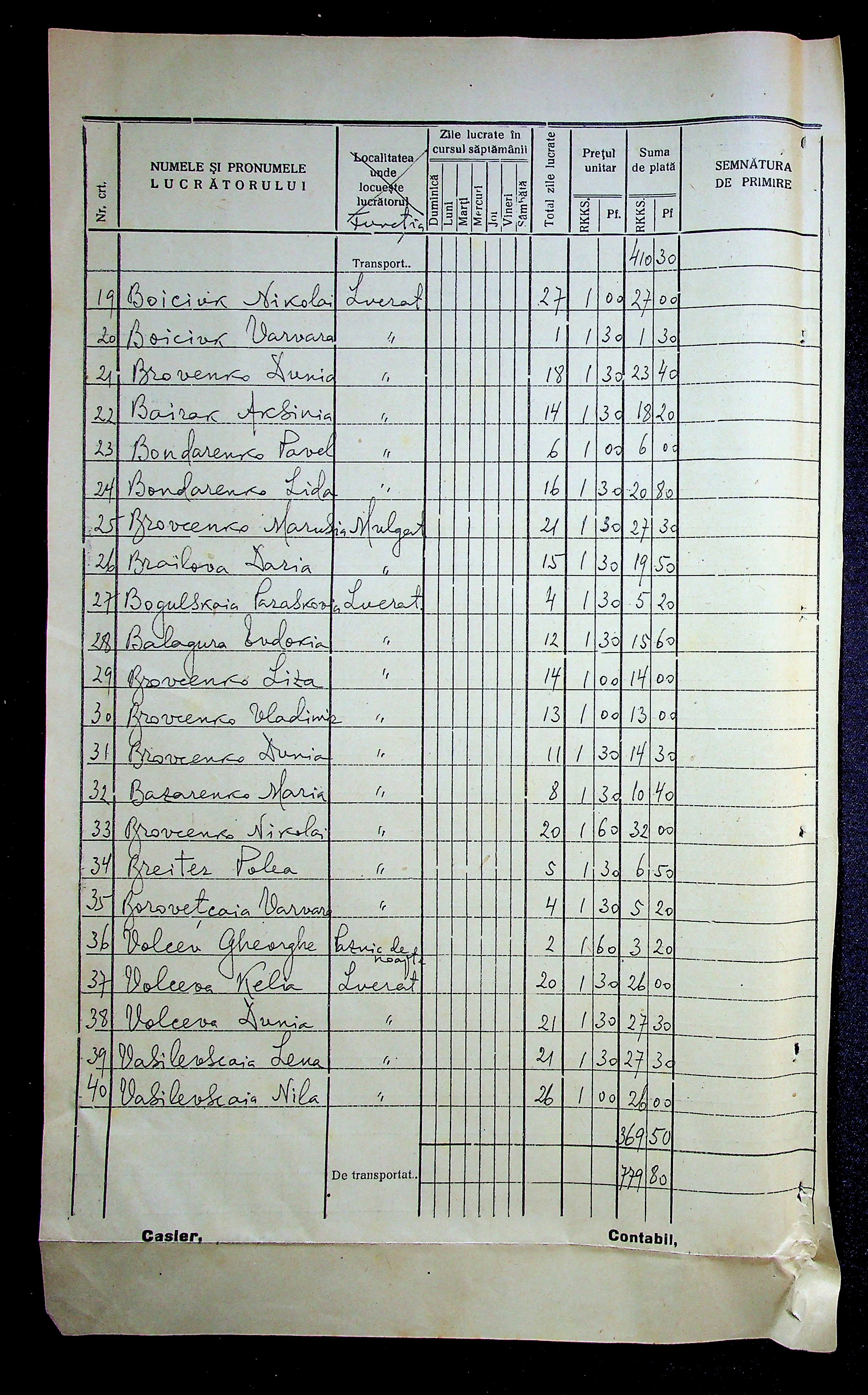 • • • • Справа № 11 “Відомості виплати заробітної плати робітникам і службовцям, касові документи за 1942 рік”