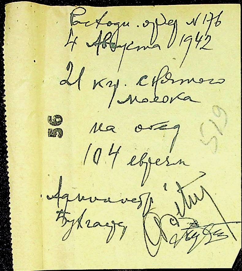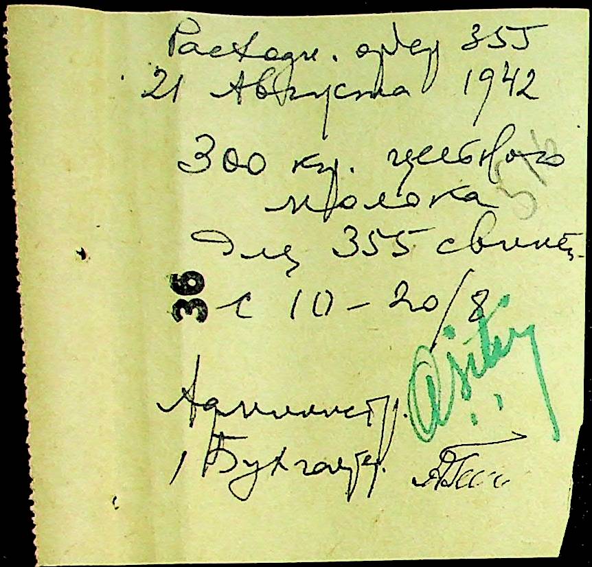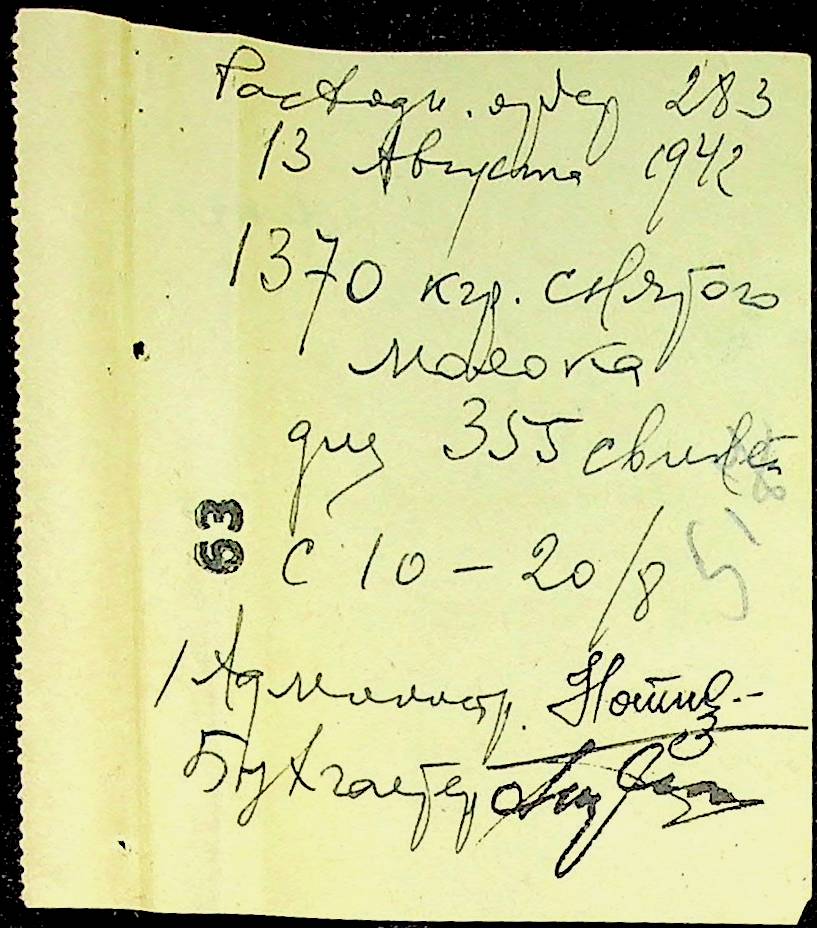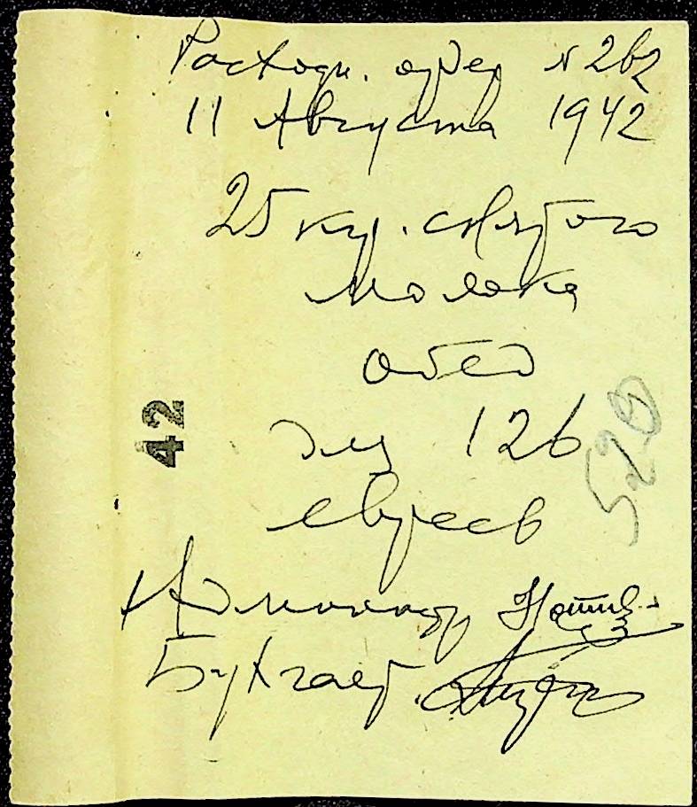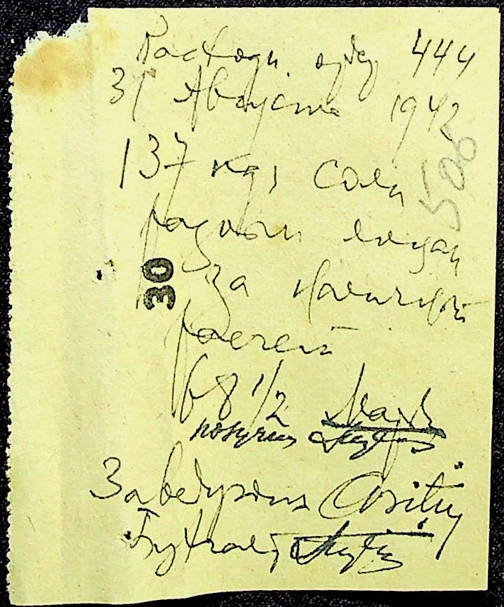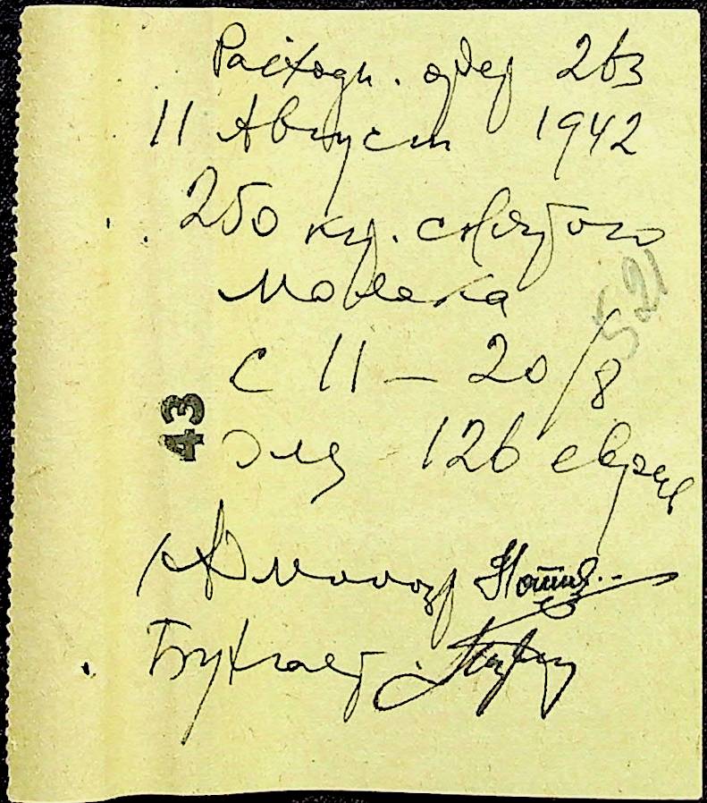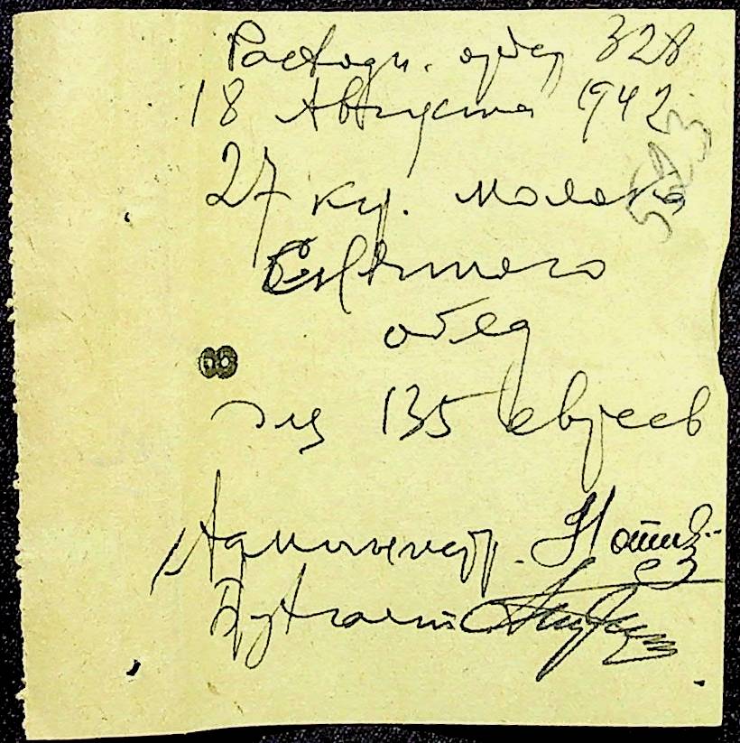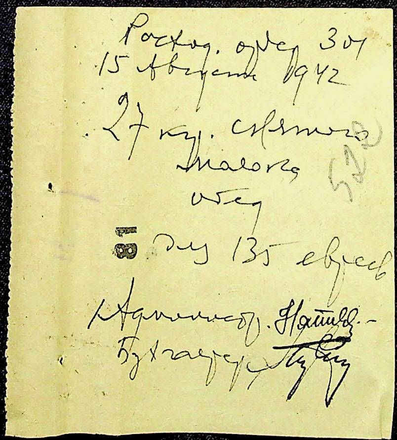 • • • • Справа № 12 “Відомості видавання харчових продуктів робітникам і робітникам-євреям, касові документи ферми за 1942 рік”