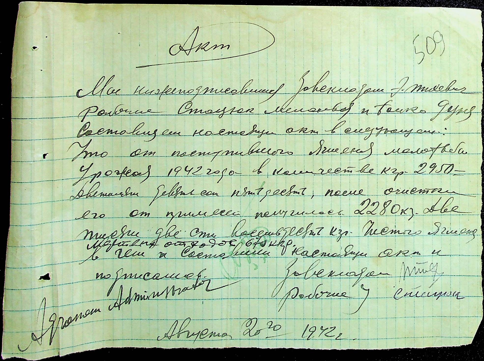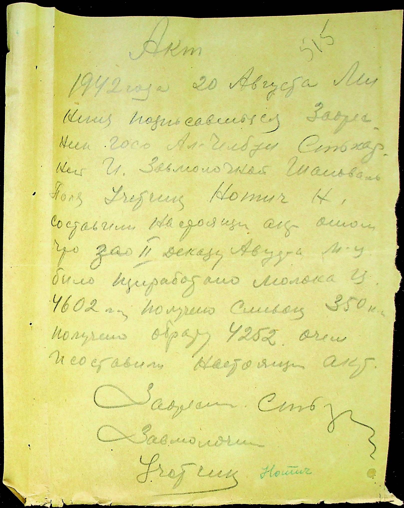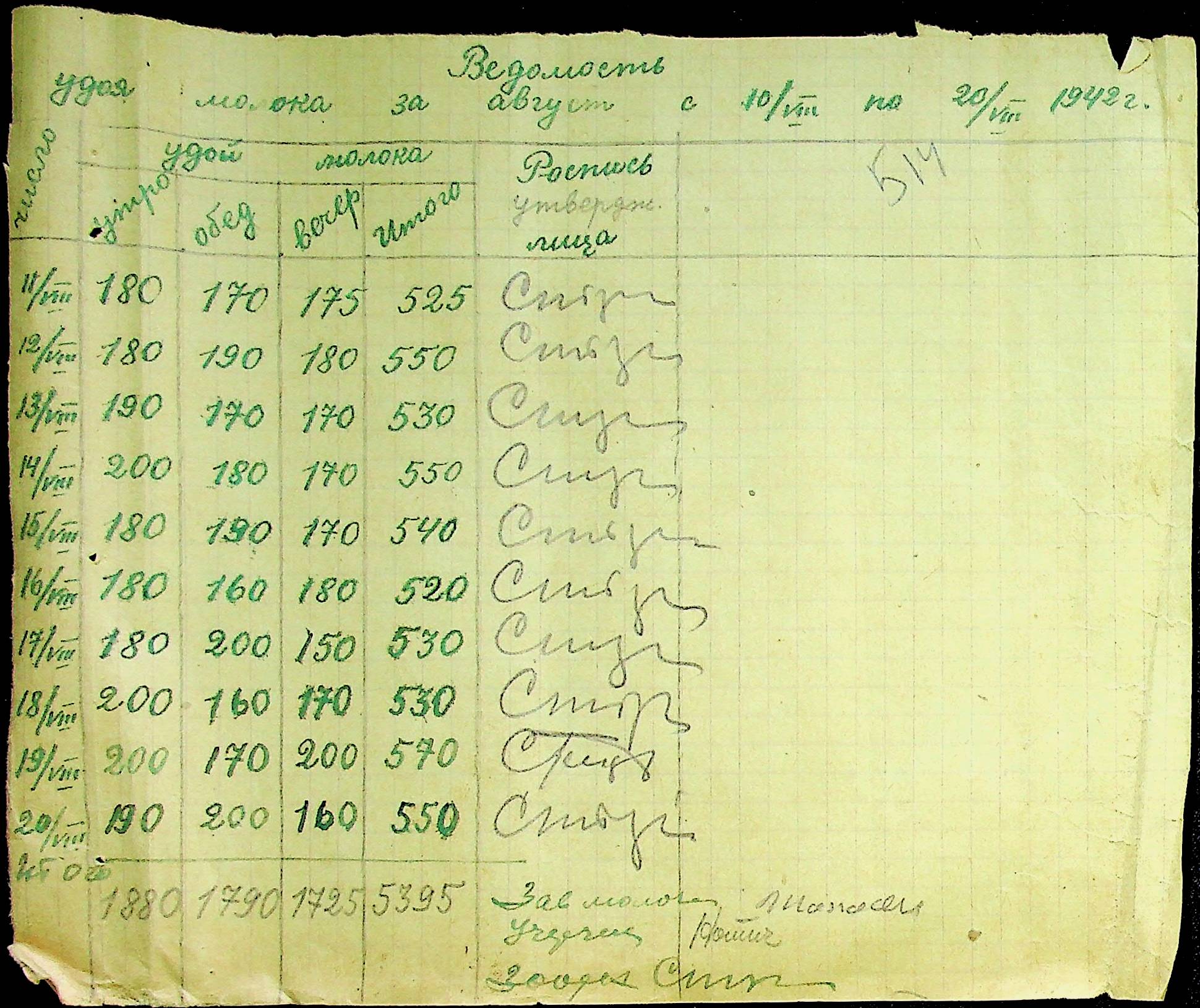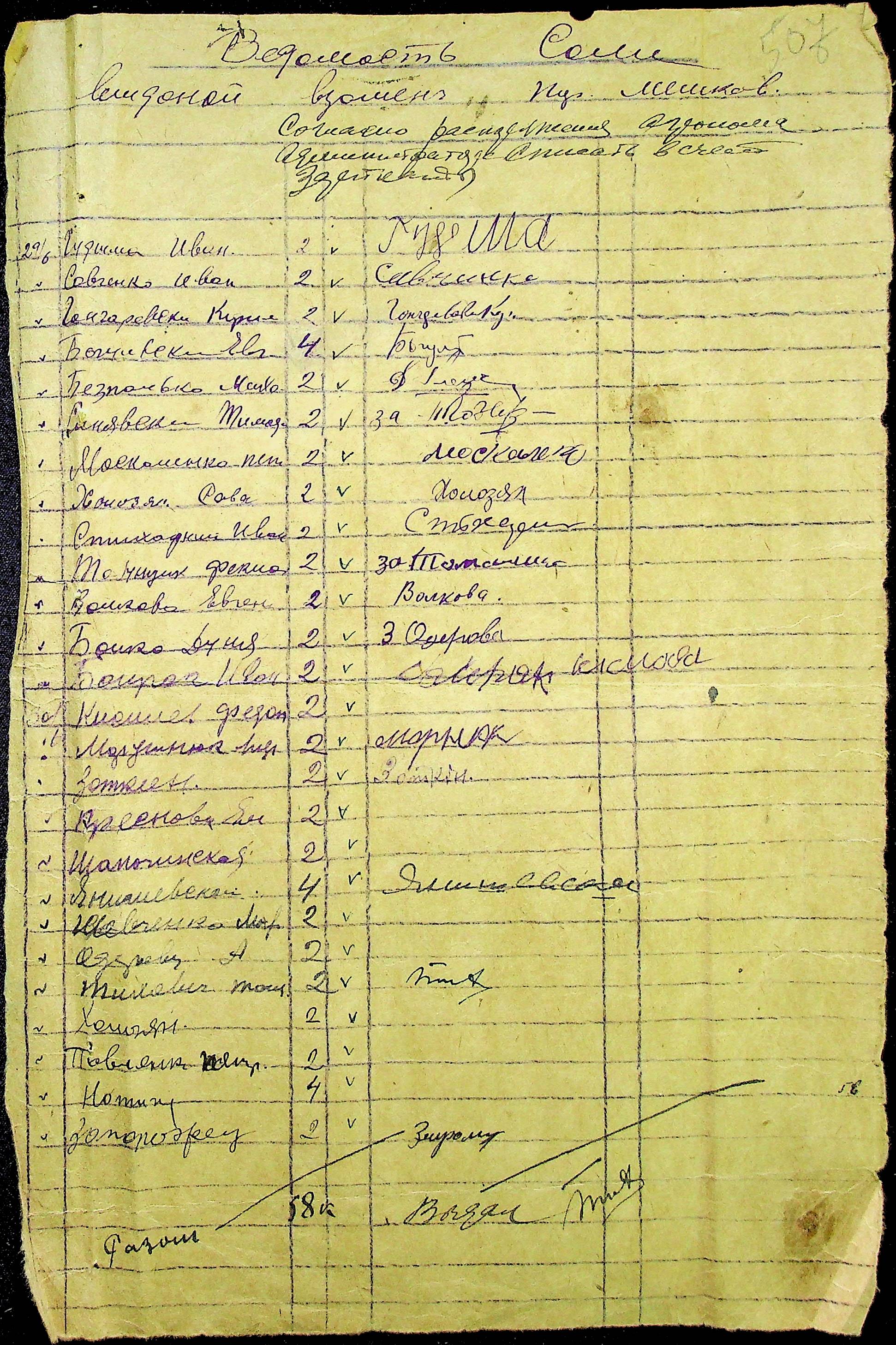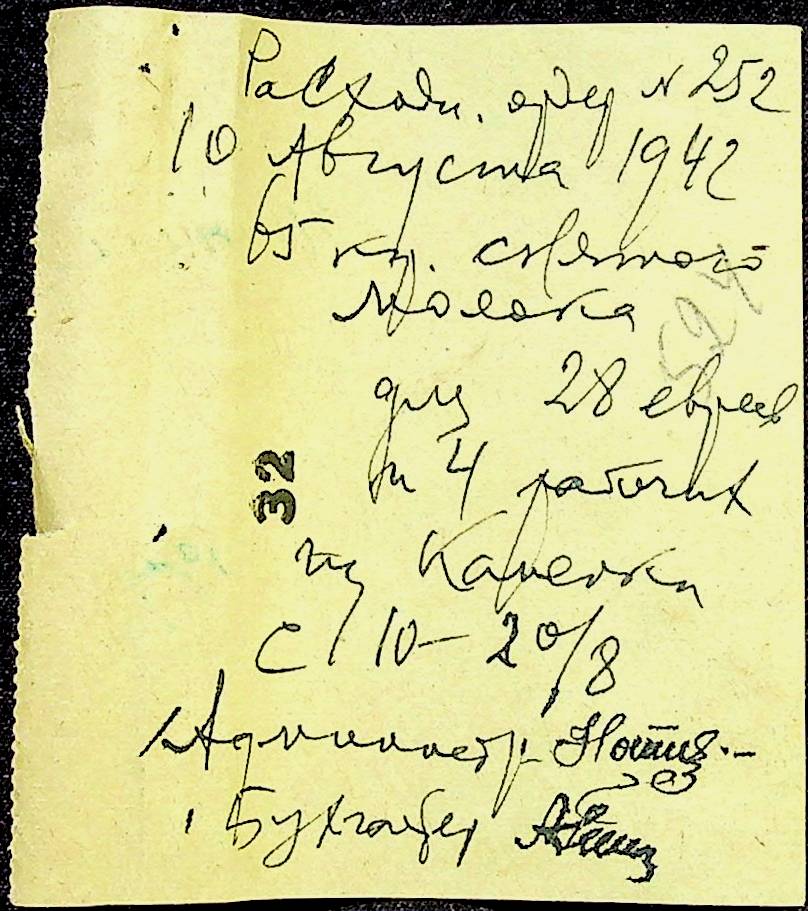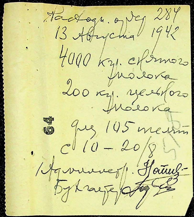 • • • • Справа № 12 “Відомості видавання харчових продуктів робітникам і робітникам-євреям, касові документи ферми за 1942 рік”