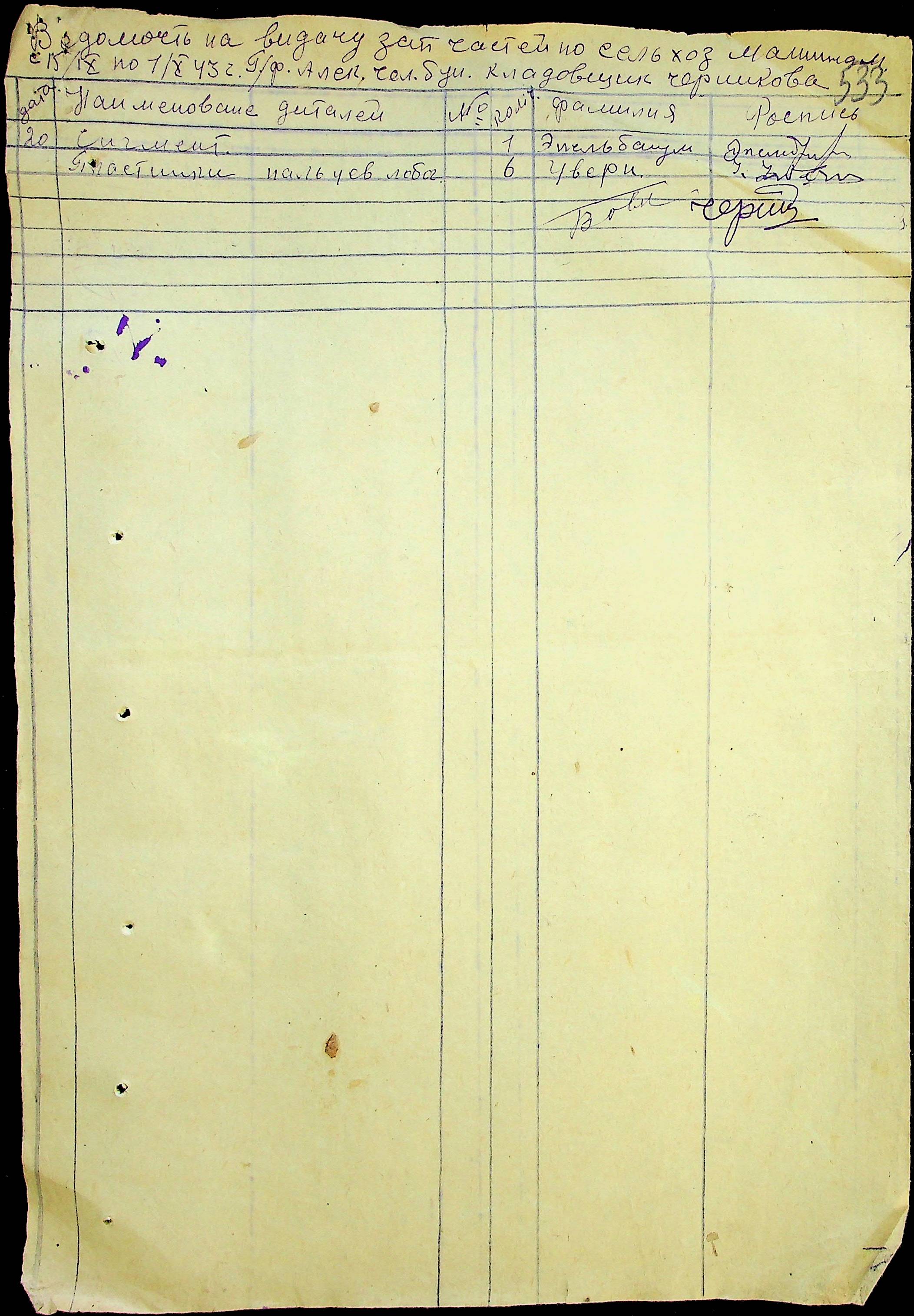 • • • • Справа № 21 “Списки робітників ферми на 1943 рік”