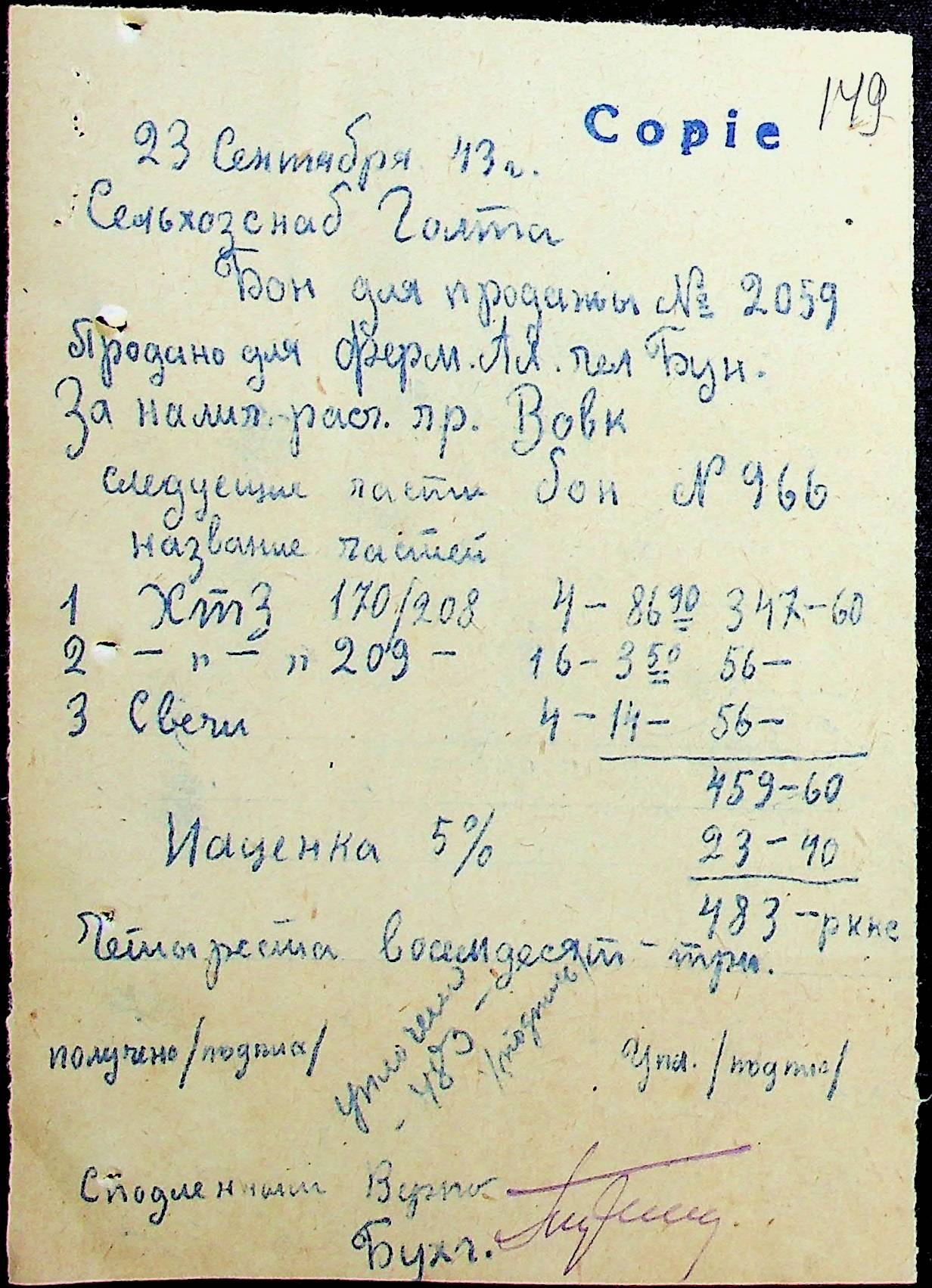 ◦ ◦ Фонд № Н-2699 “Державна ферма претури Доманівського району, с. Олександродар Доманівського району”