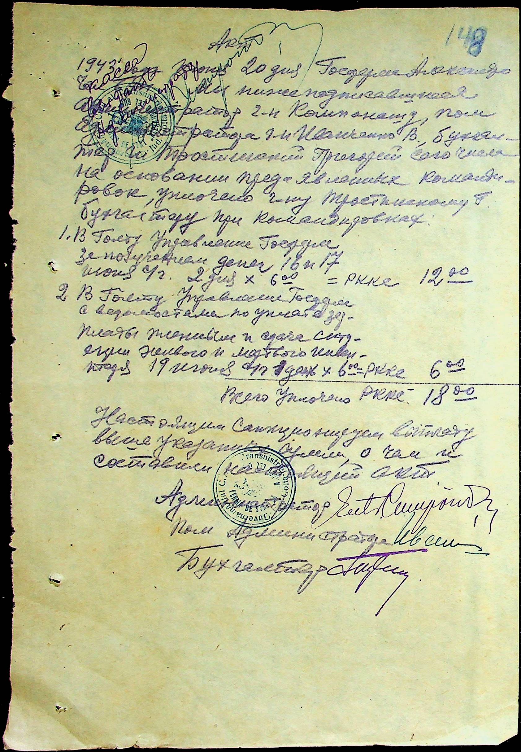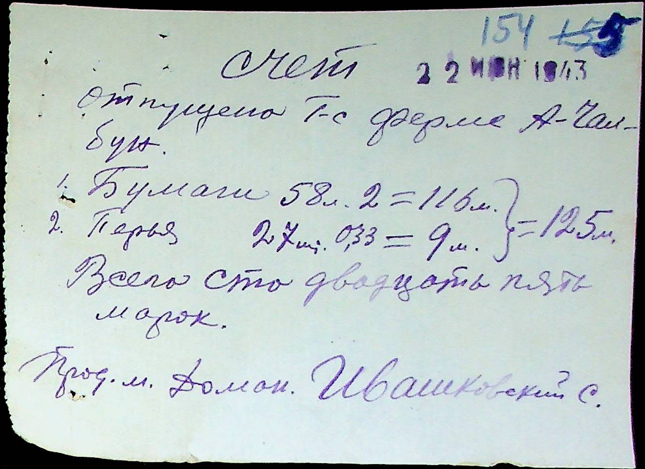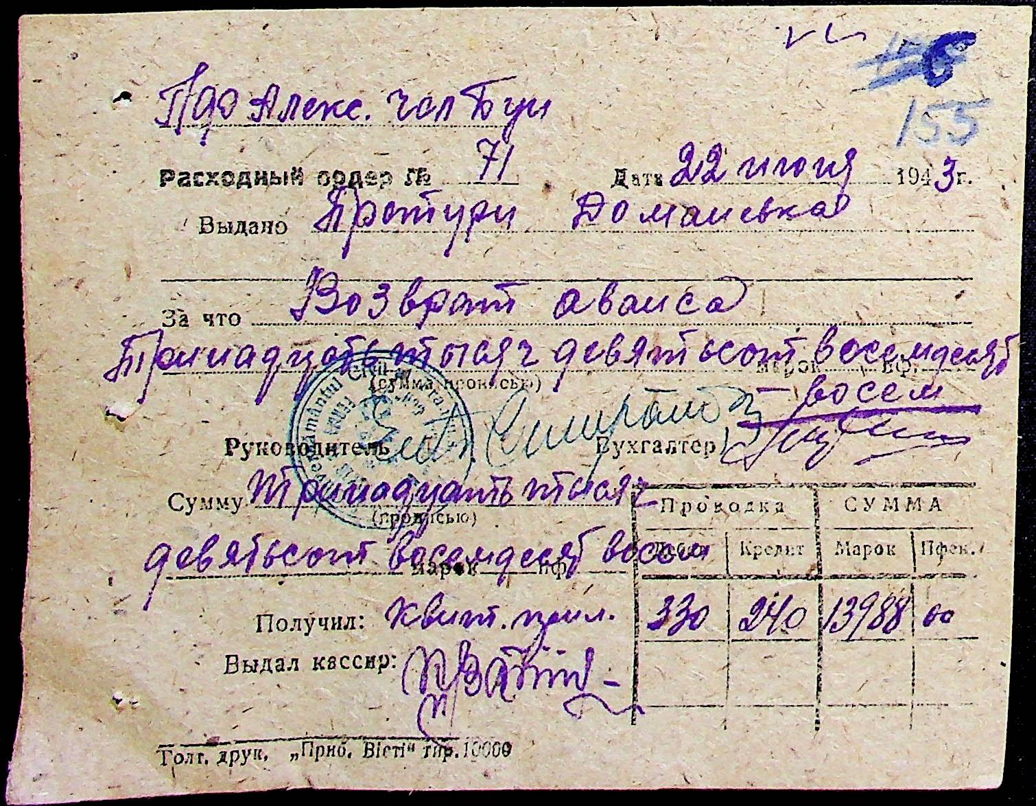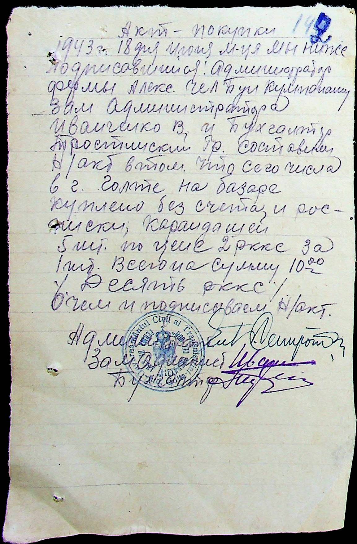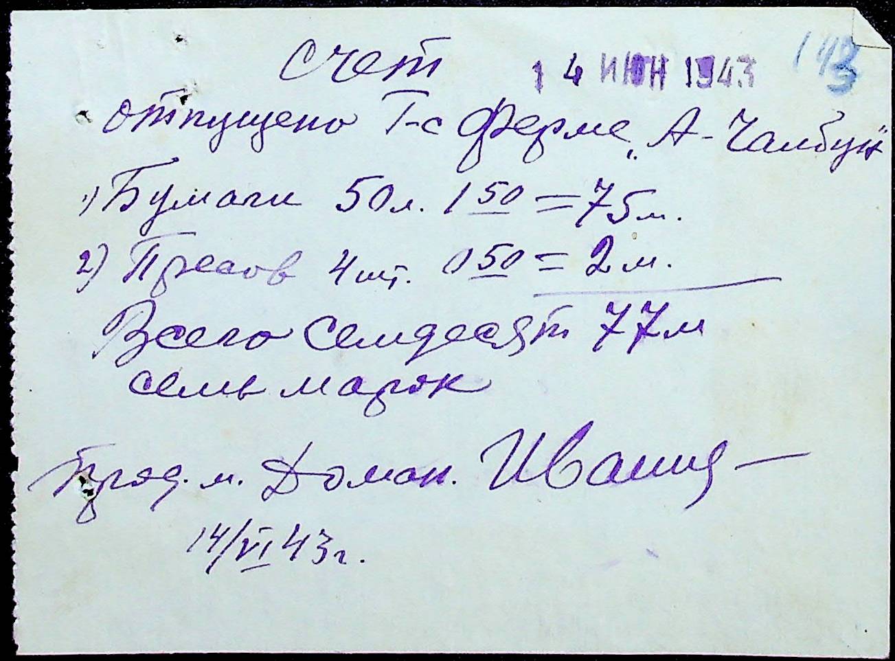 • • • • Справа № 25 “Відомості виплати зарплатні адміністративному і технічному персоналу, сезонним робітникам ферми за 1943 рік”
