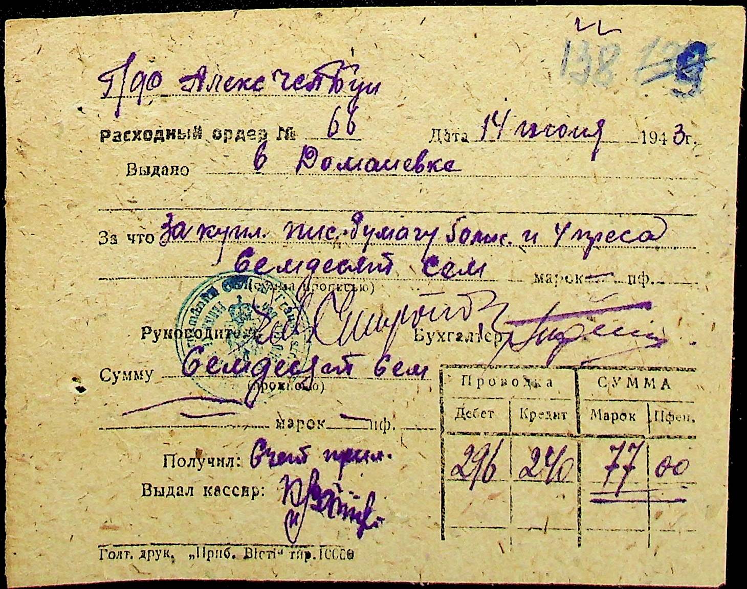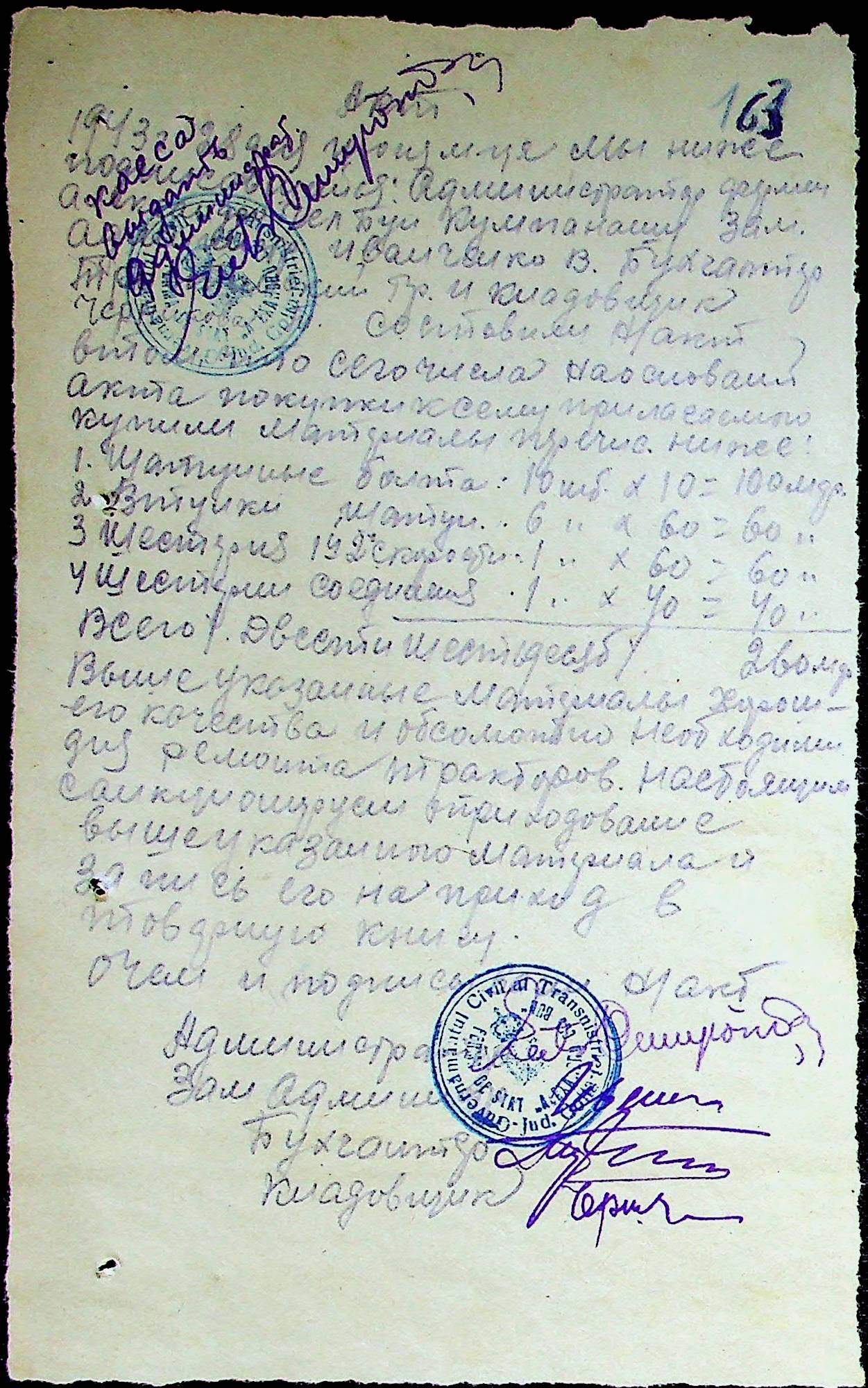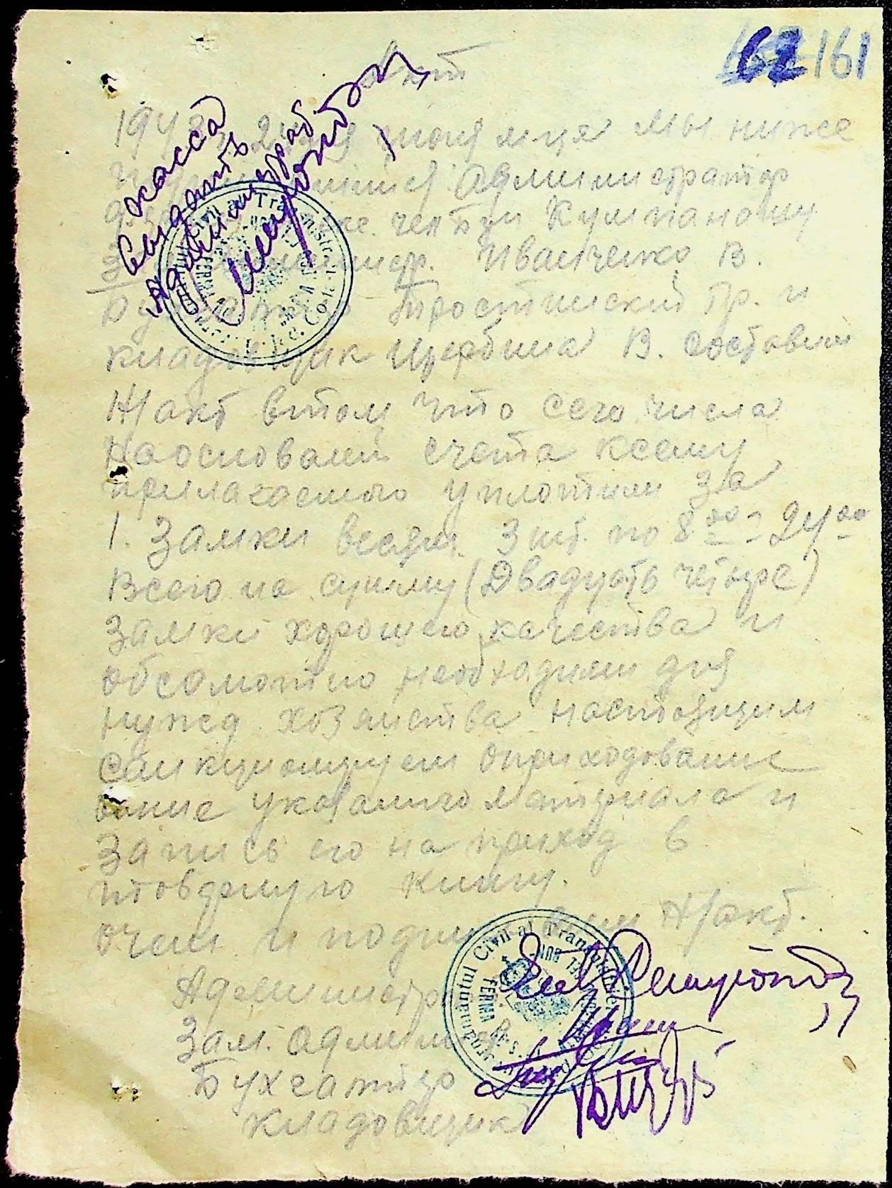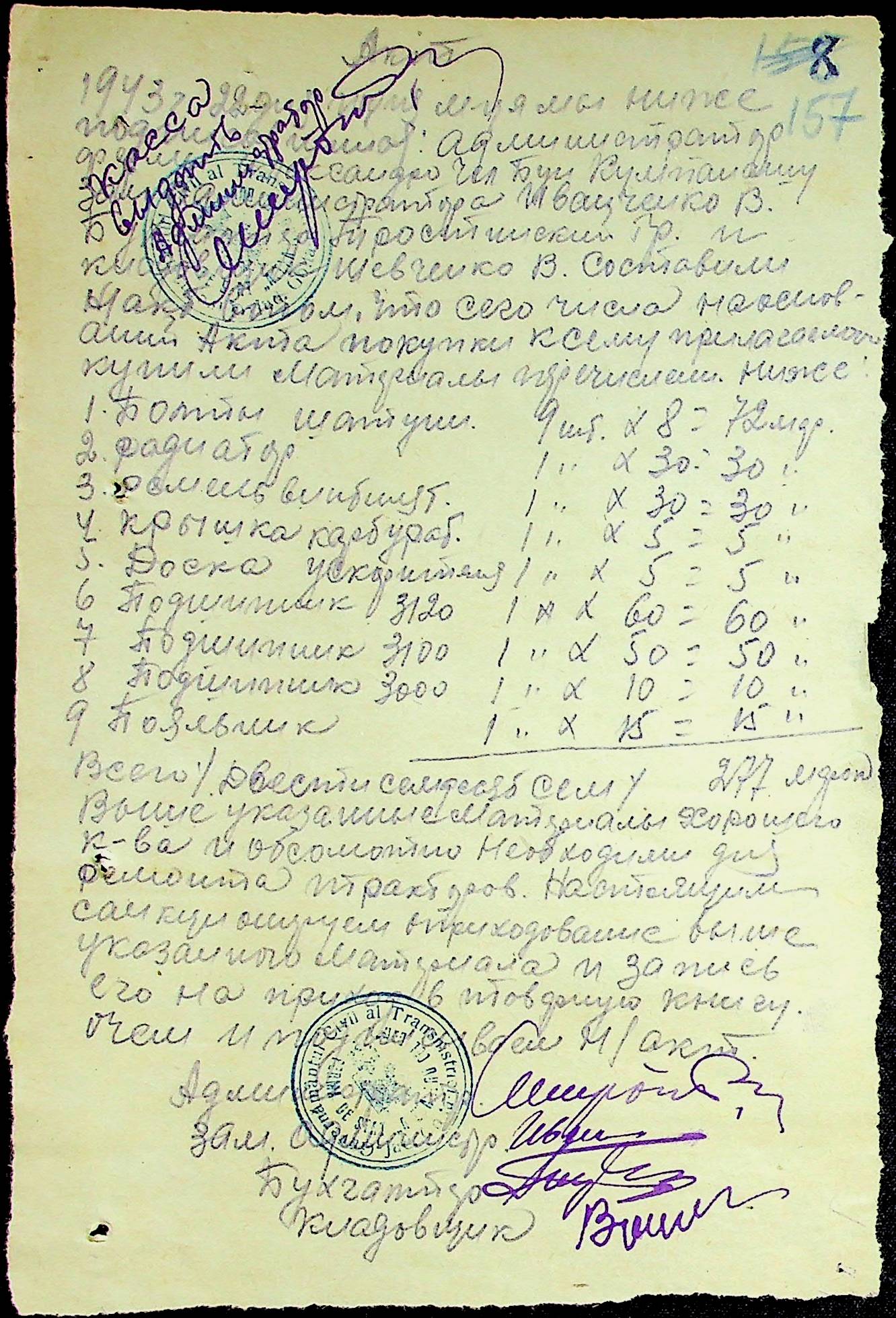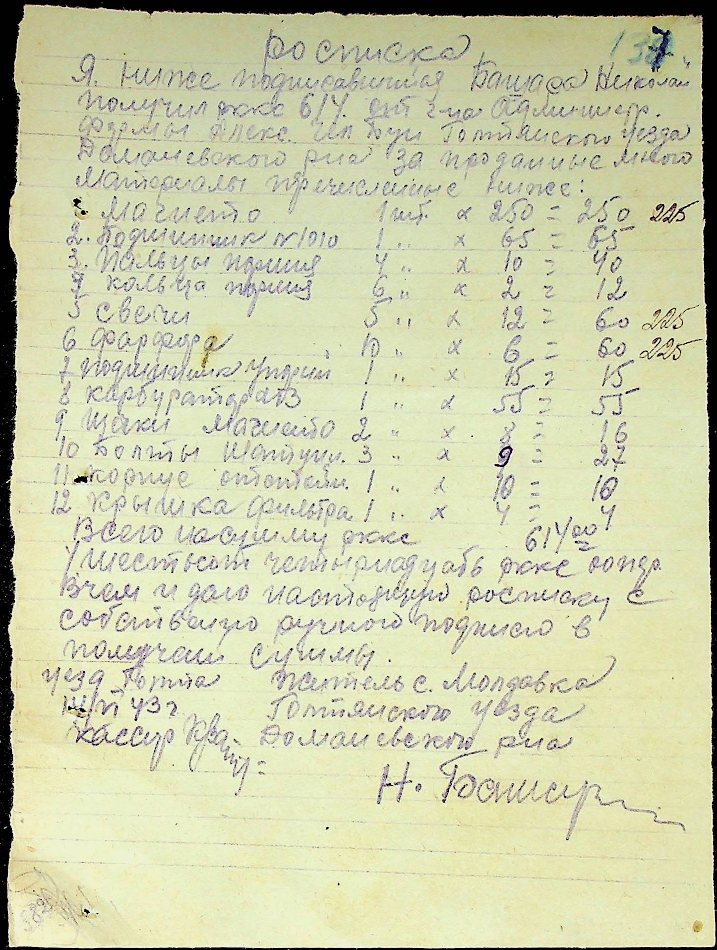 • • • • Справа № 25 “Відомості виплати зарплатні адміністративному і технічному персоналу, сезонним робітникам ферми за 1943 рік”