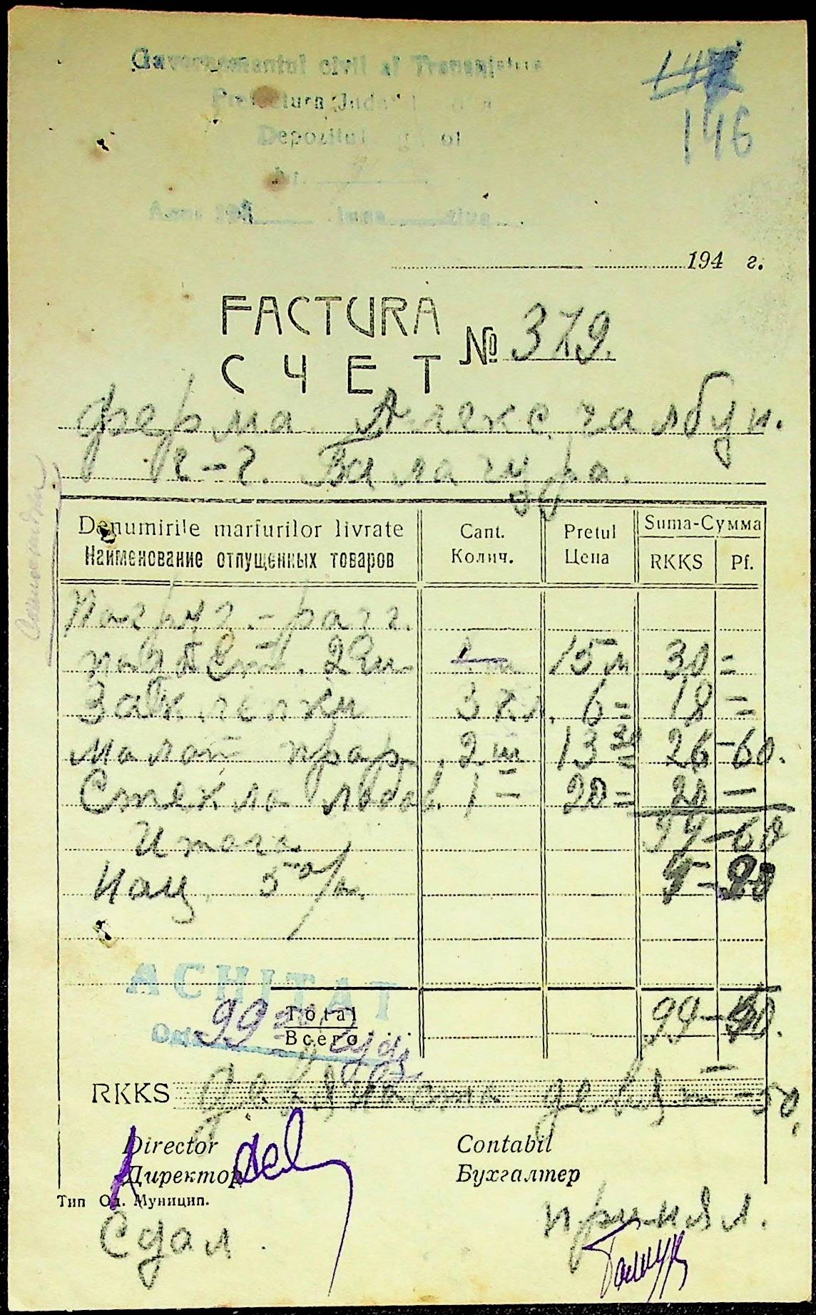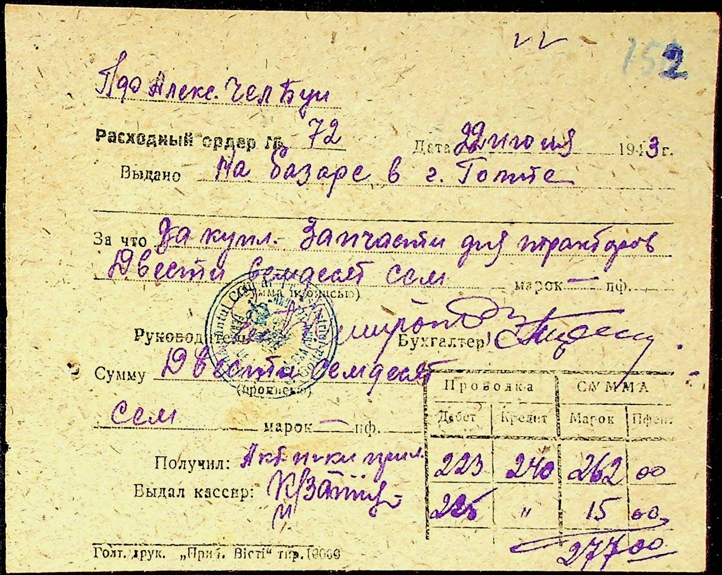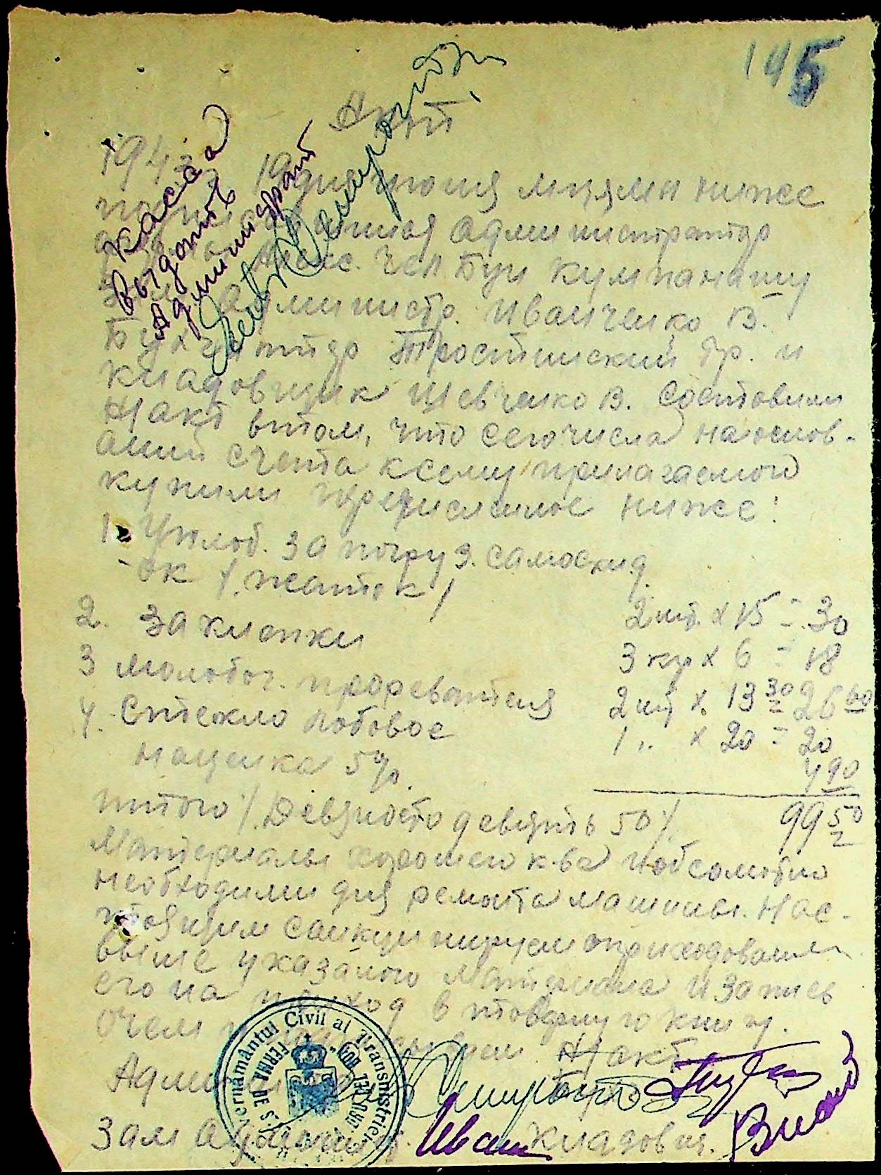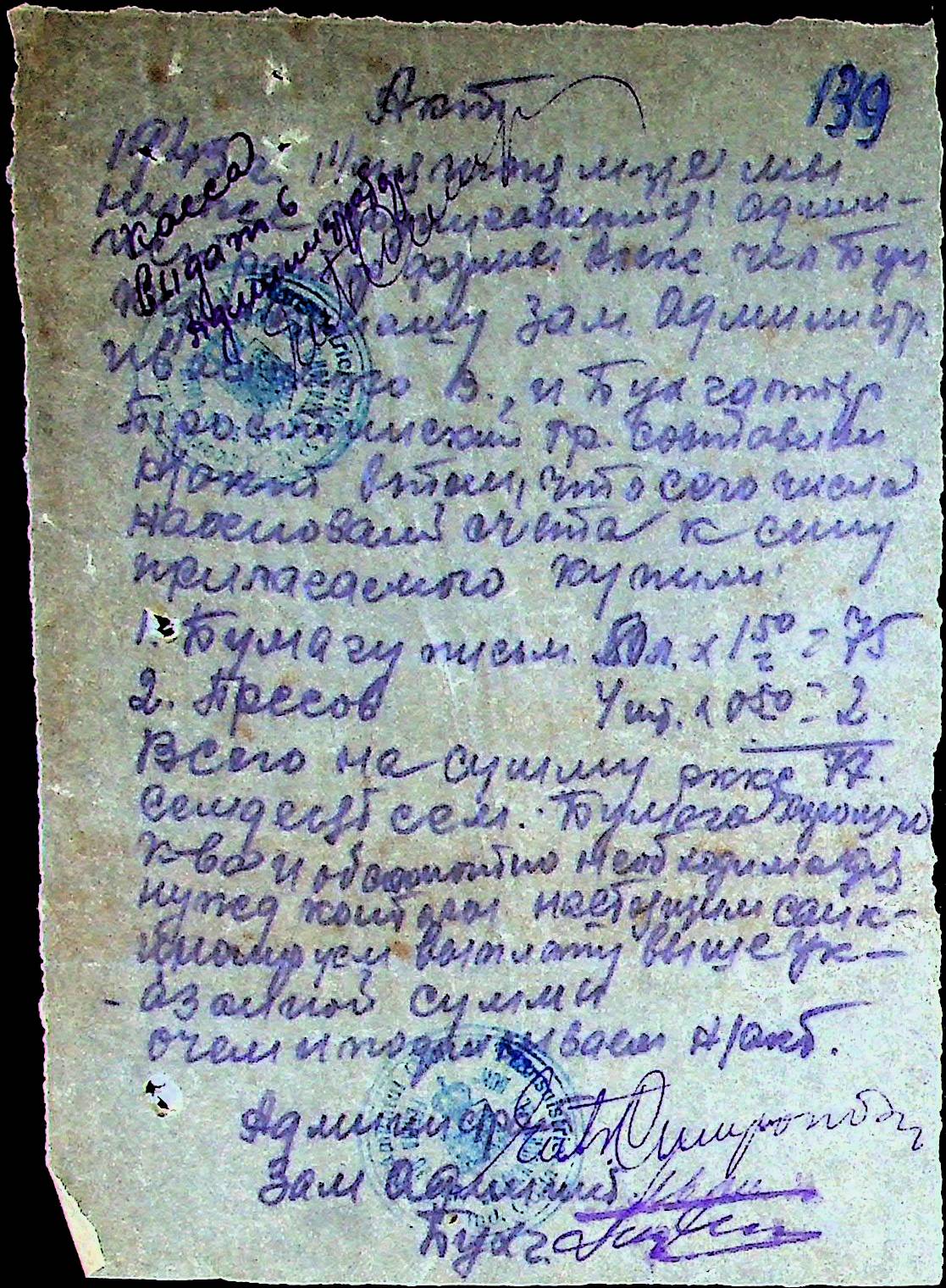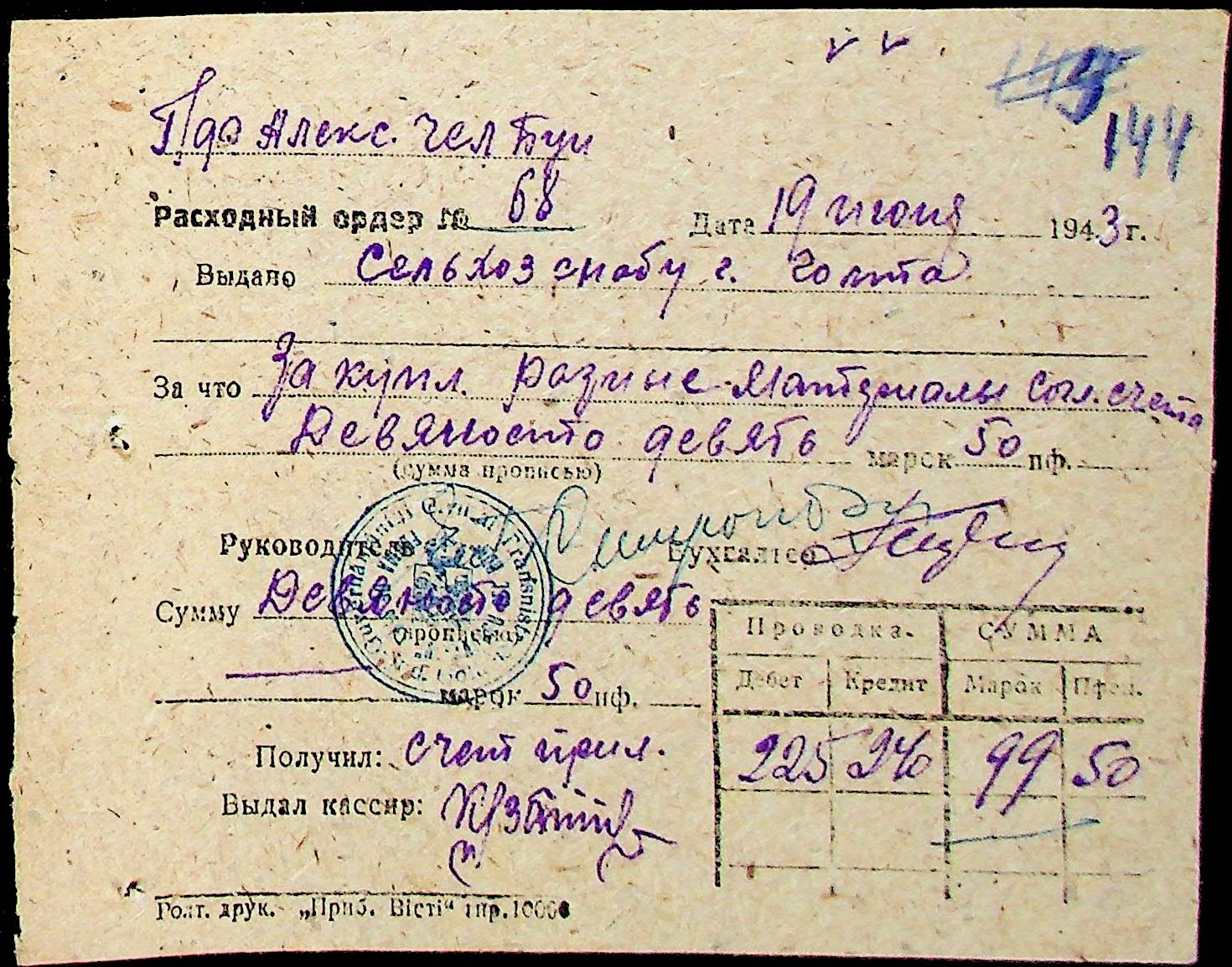 • • • • Справа № 25 “Відомості виплати зарплатні адміністративному і технічному персоналу, сезонним робітникам ферми за 1943 рік”