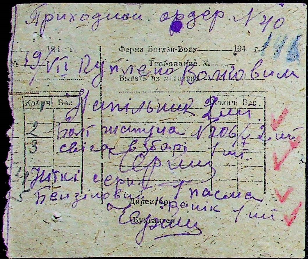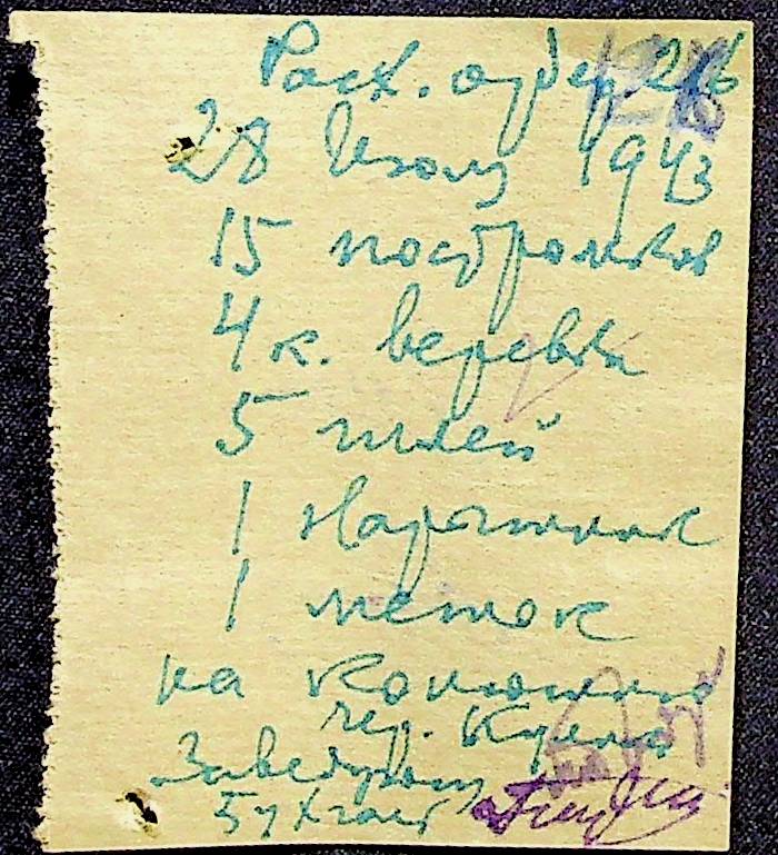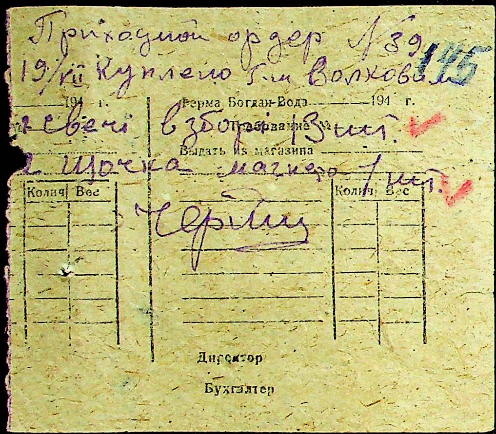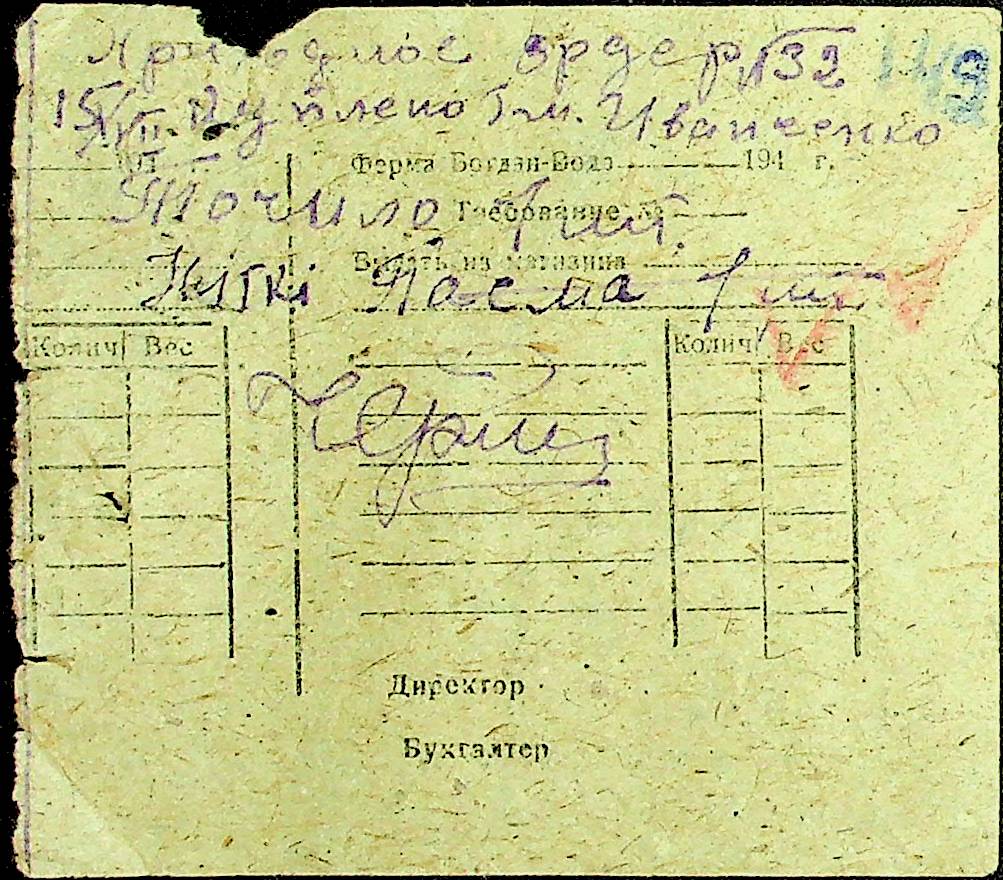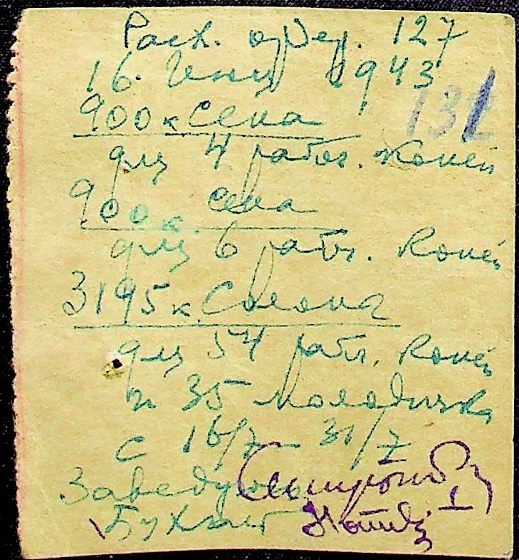 • • • • Справа № 31 “Відомість видавання продуктів робітникам і службовцям ферми за 1943 рік”
