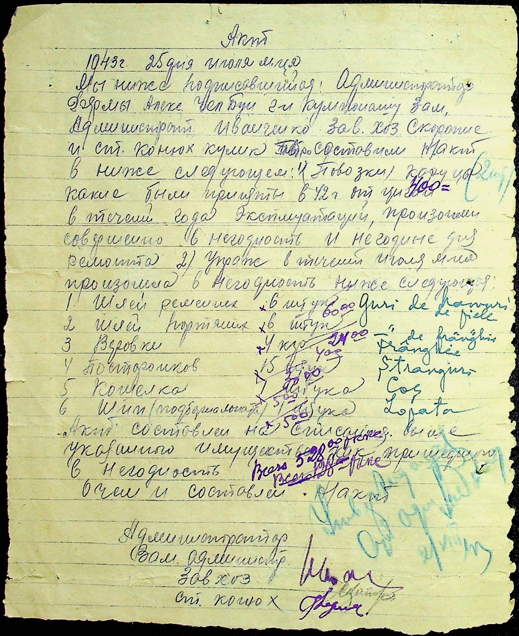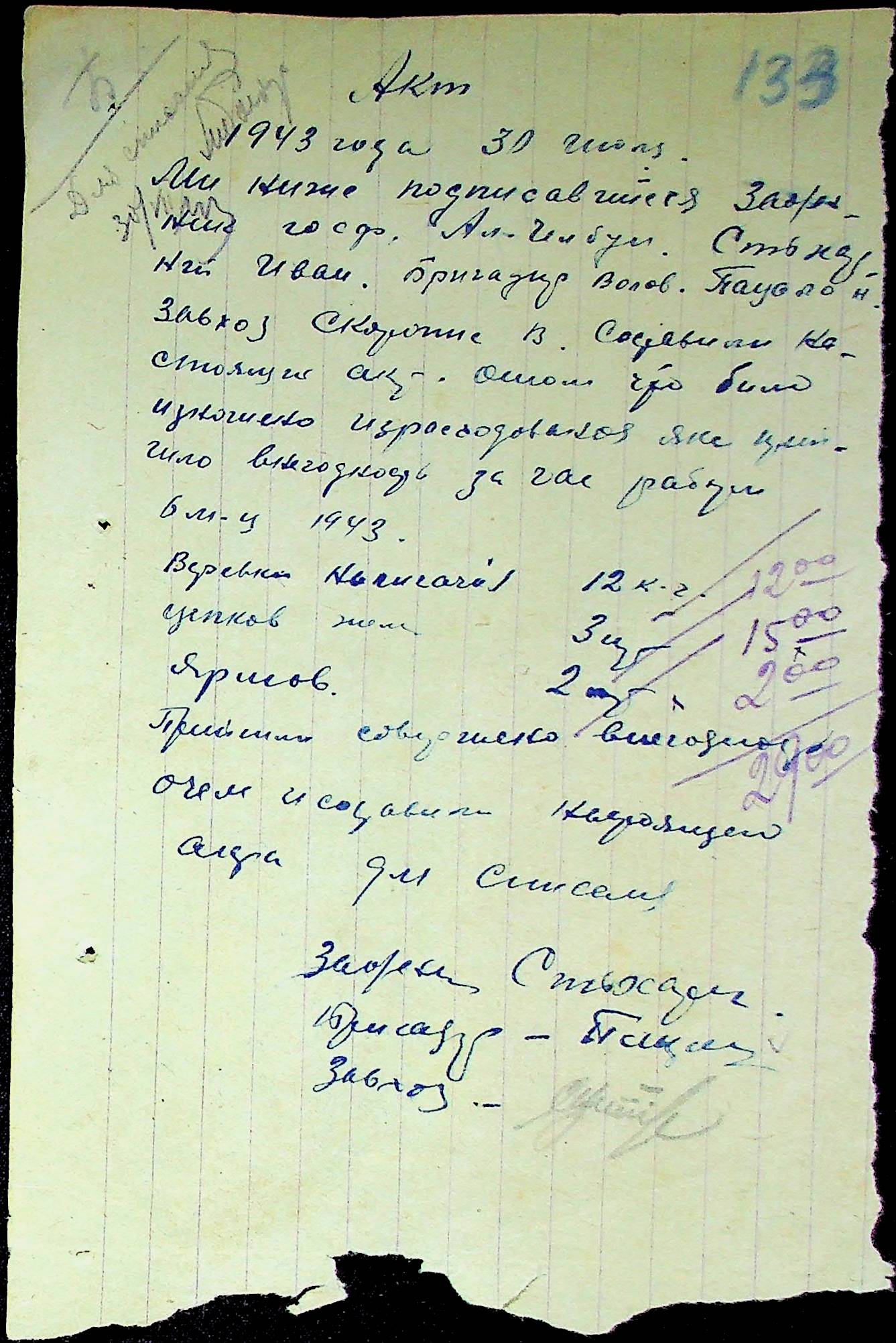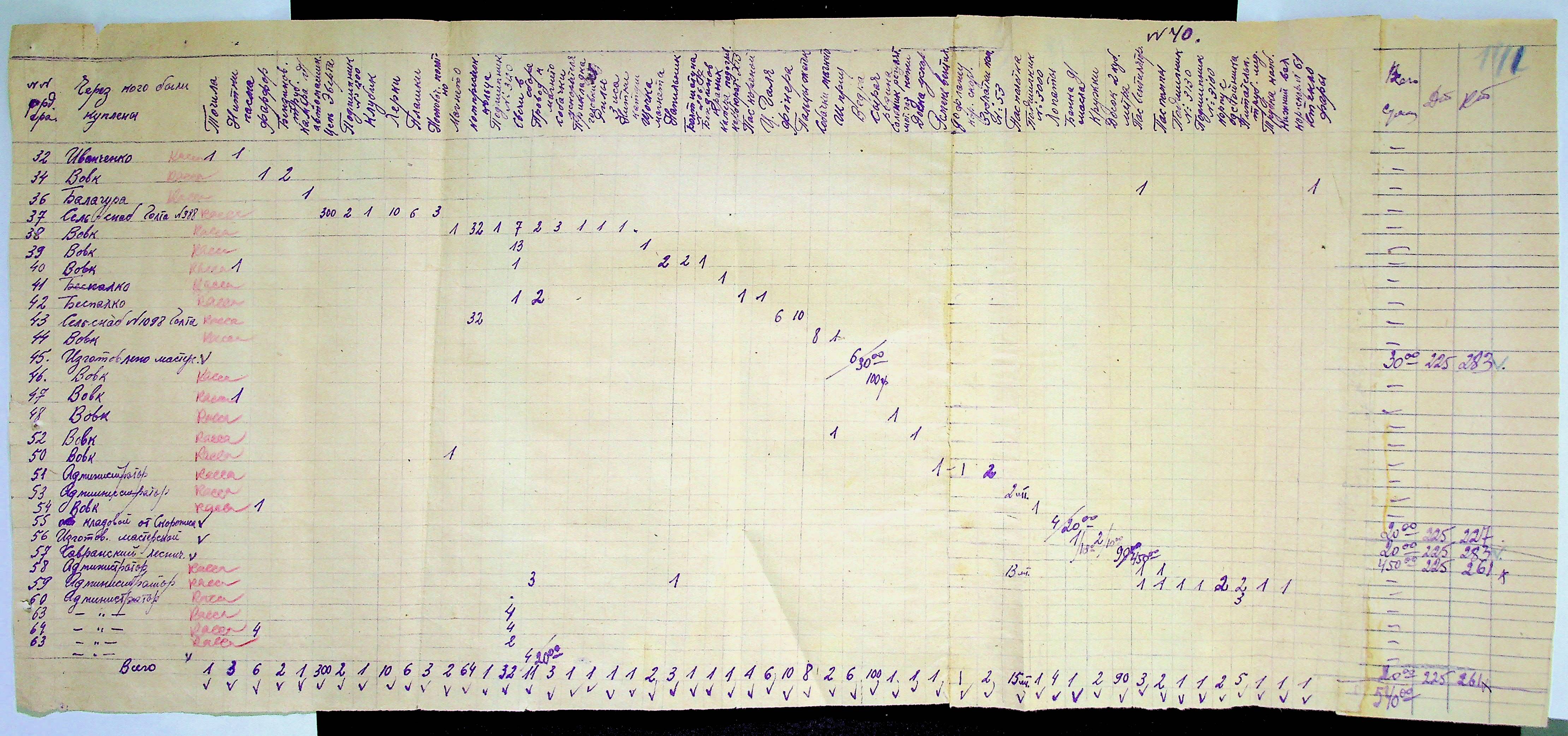 • • • • Справа № 31 “Відомість видавання продуктів робітникам і службовцям ферми за 1943 рік”