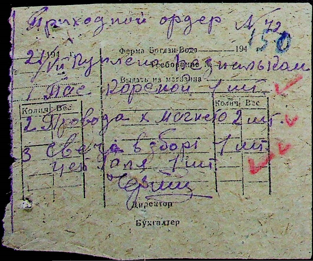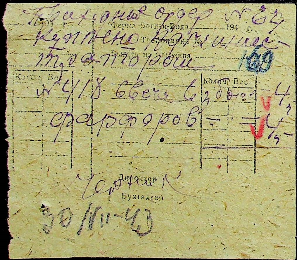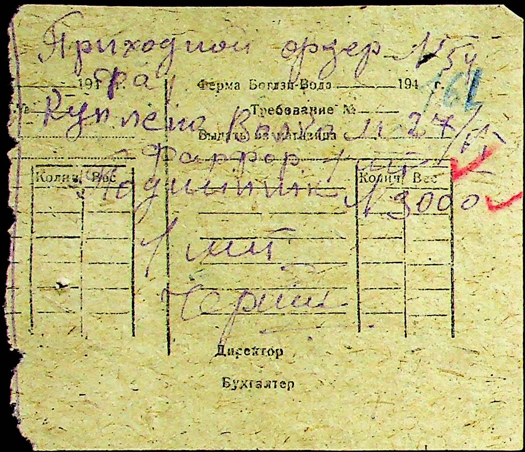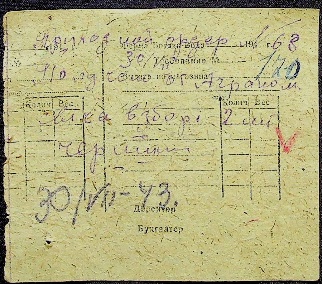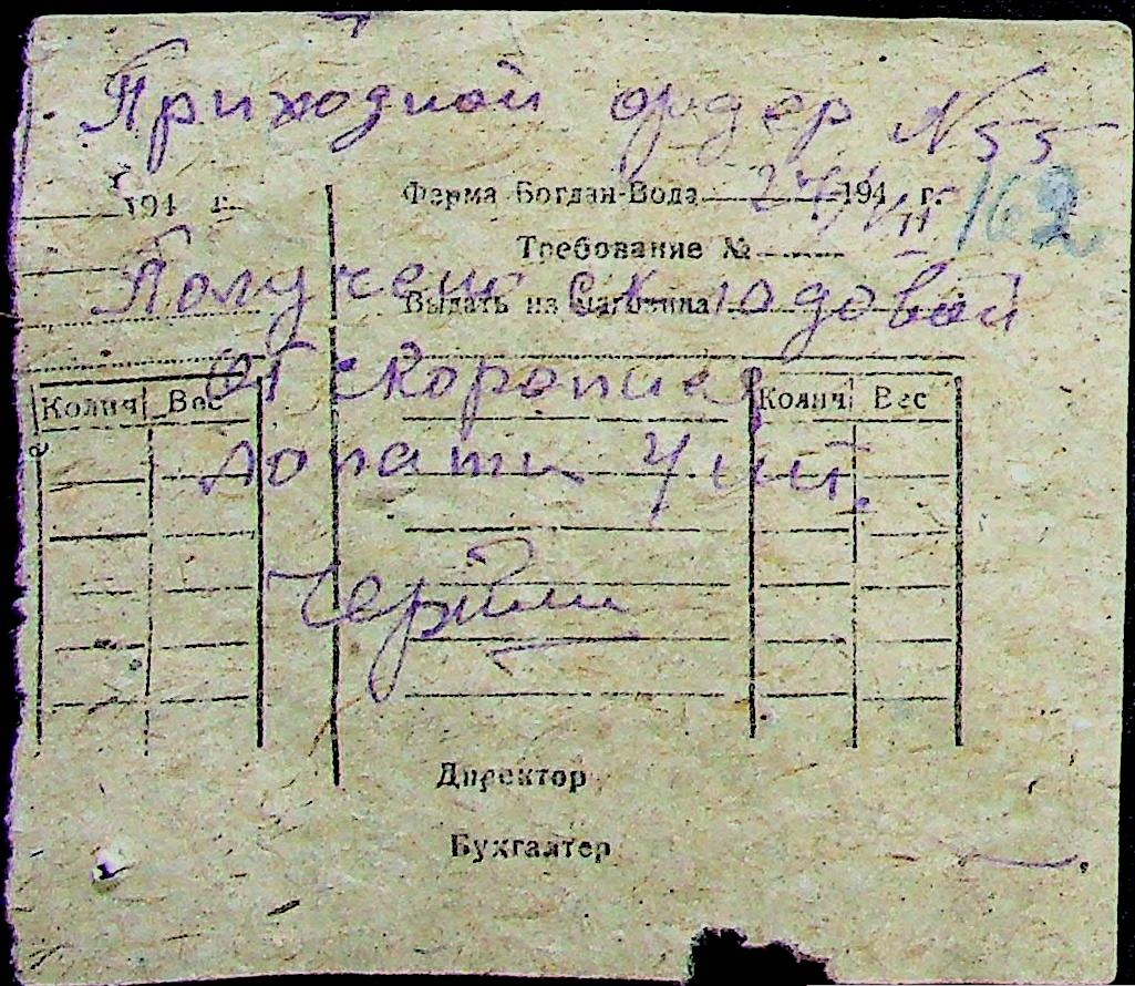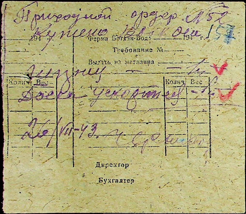• • • • Справа № 31 “Відомість видавання продуктів робітникам і службовцям ферми за 1943 рік”