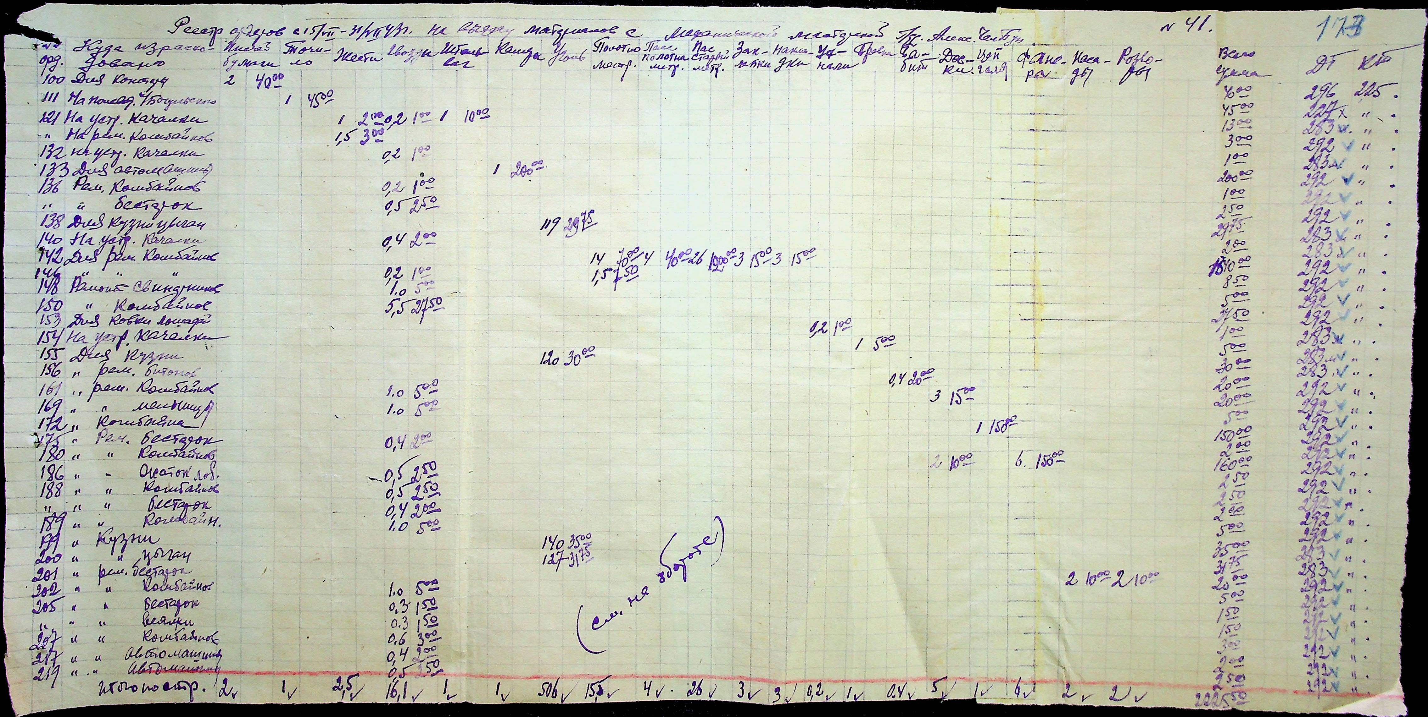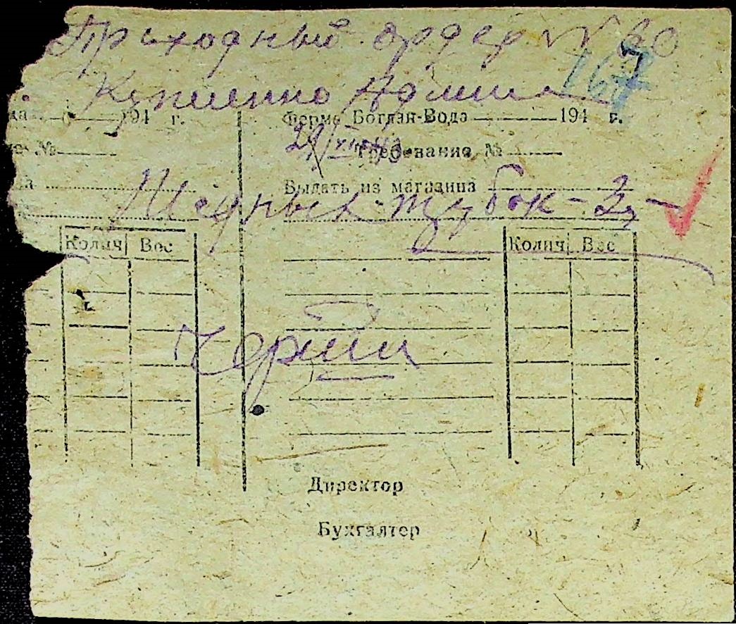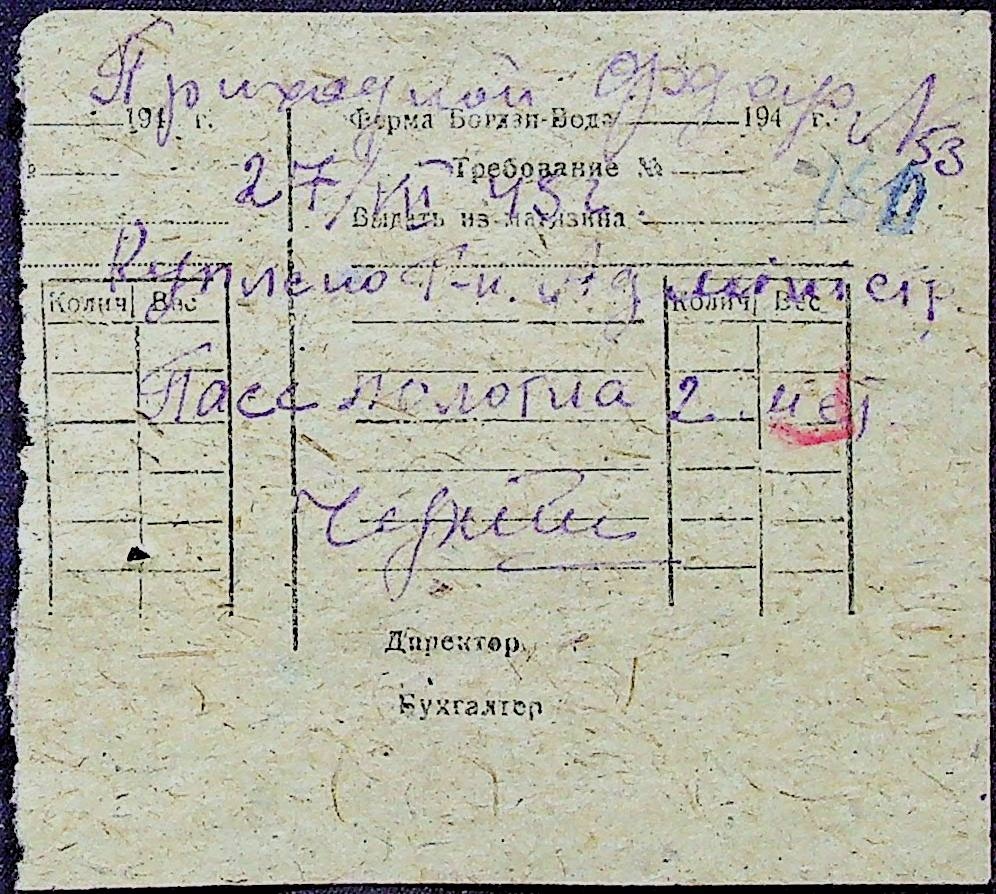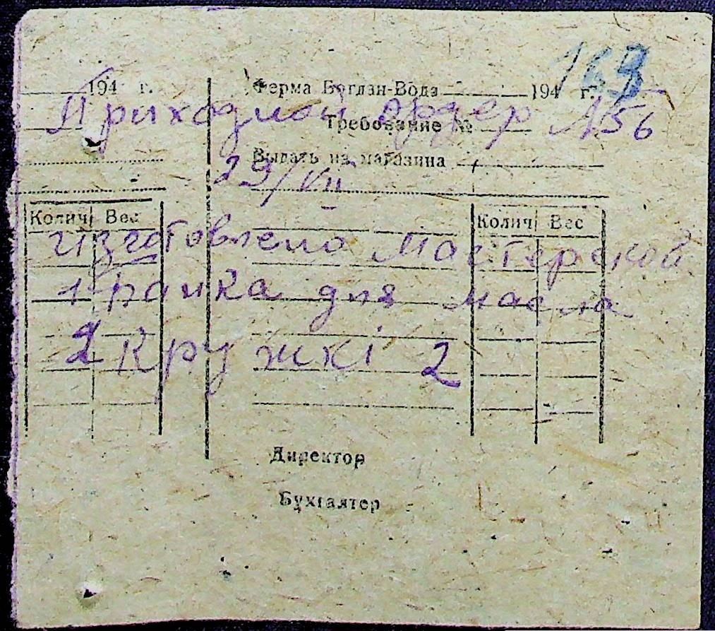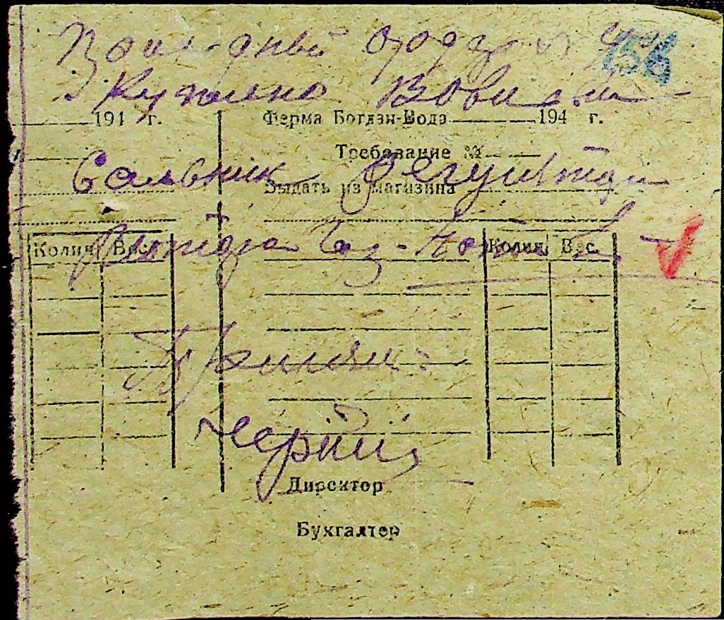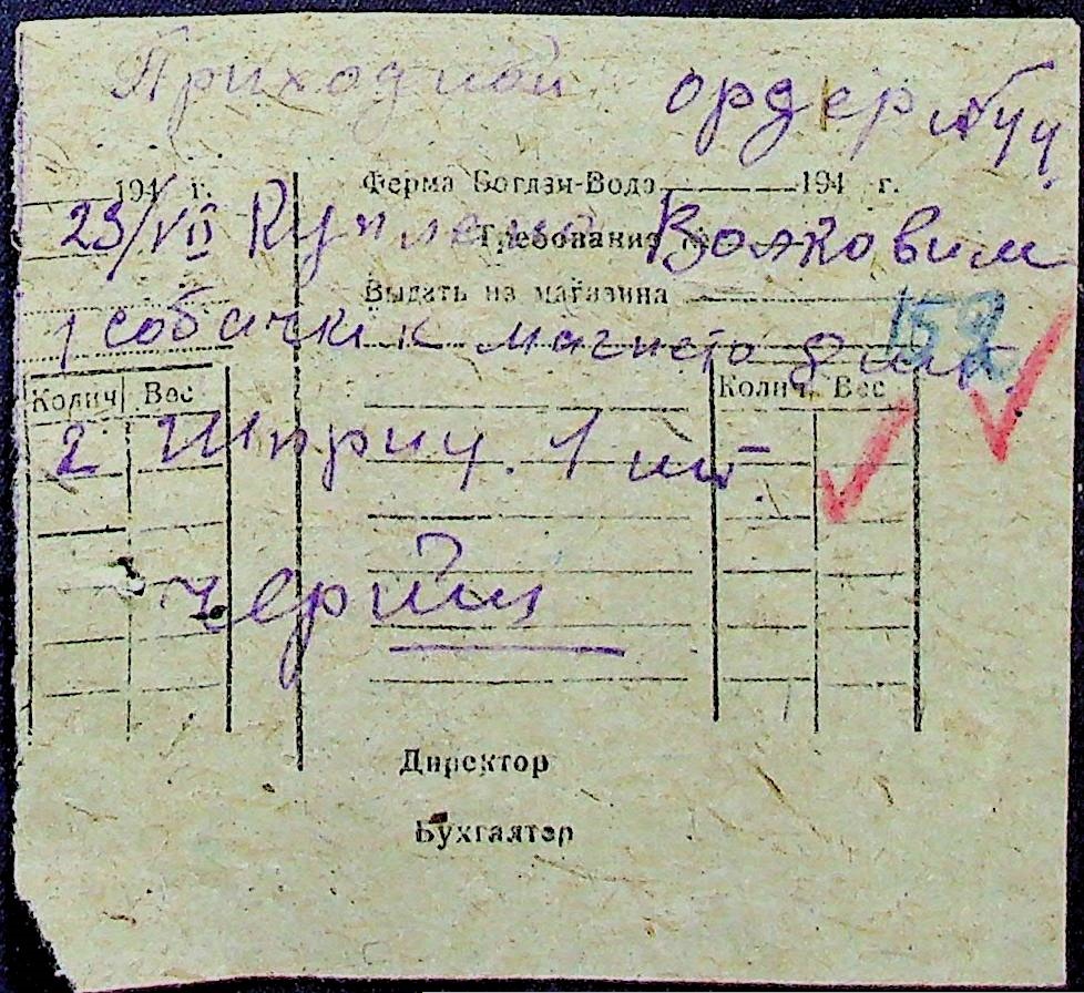 • • • • Справа № 31 “Відомість видавання продуктів робітникам і службовцям ферми за 1943 рік”