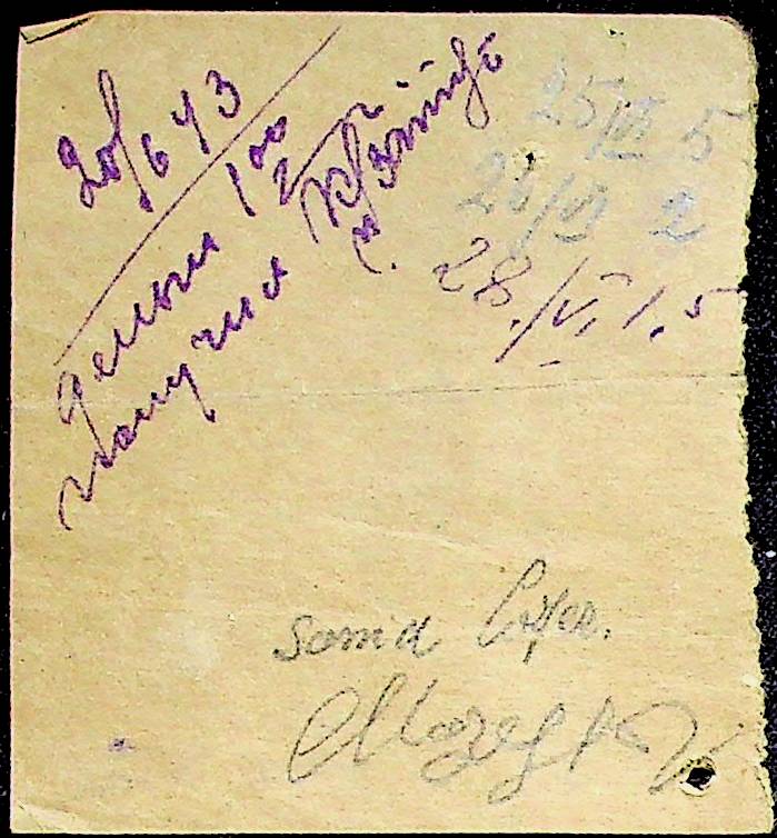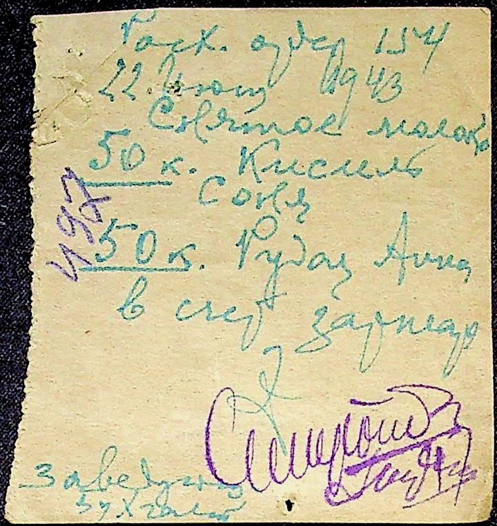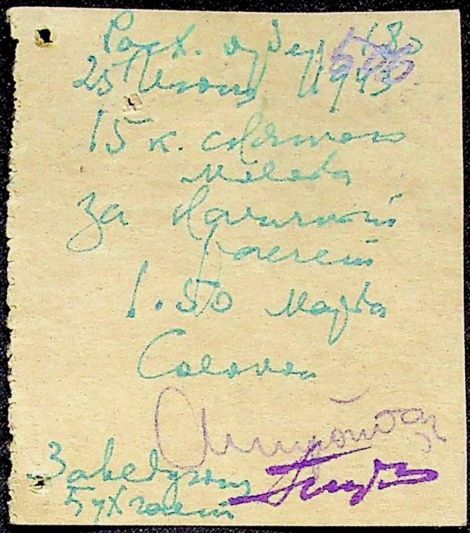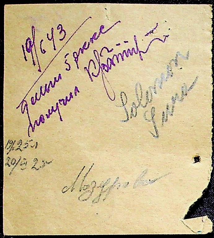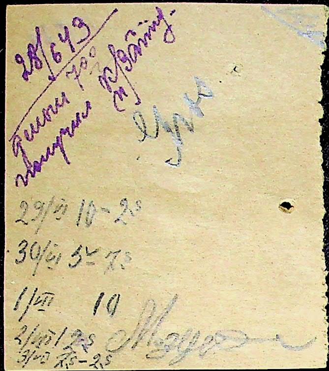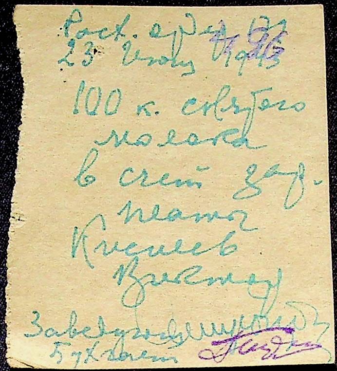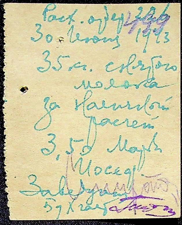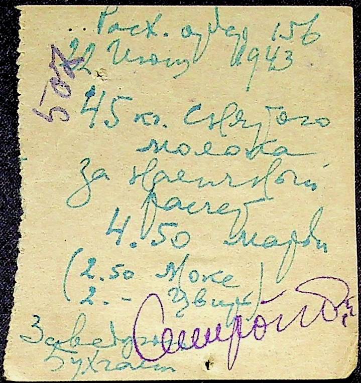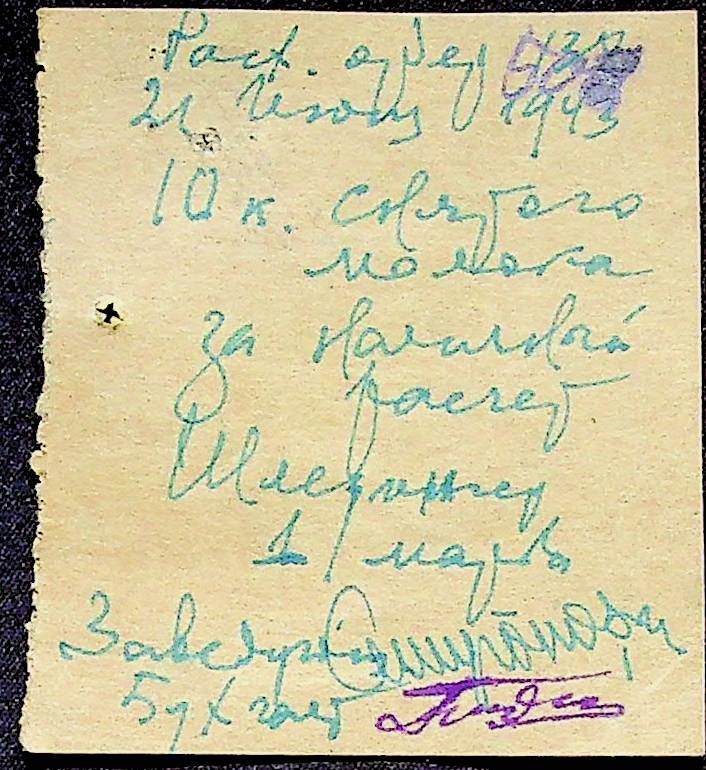 • • • • Справа № 33 “Відомості видавання продуктів робітникам ферми, ордери надходжень і видатків за 1943 рік”