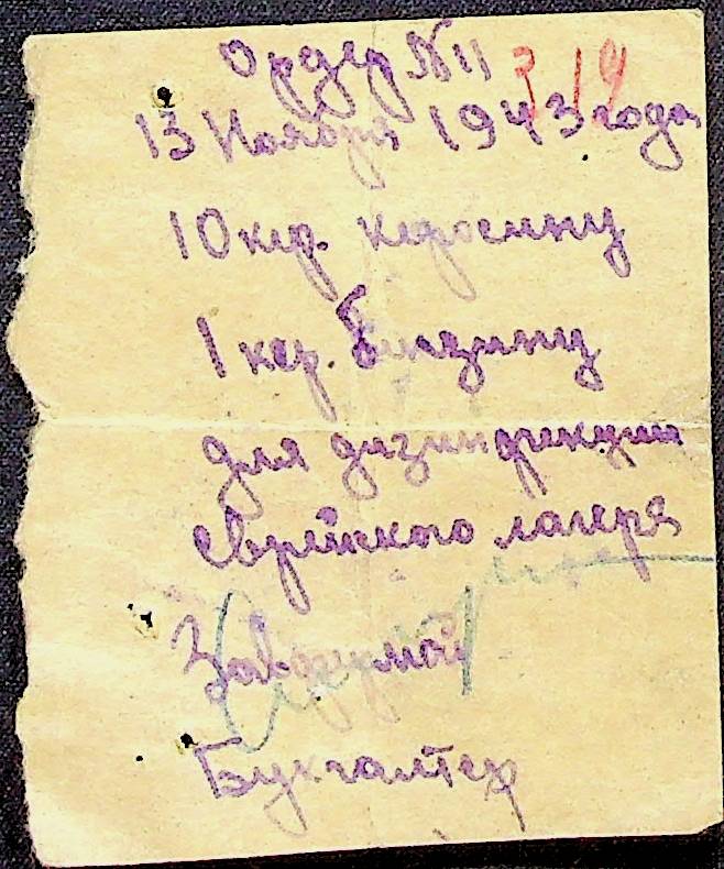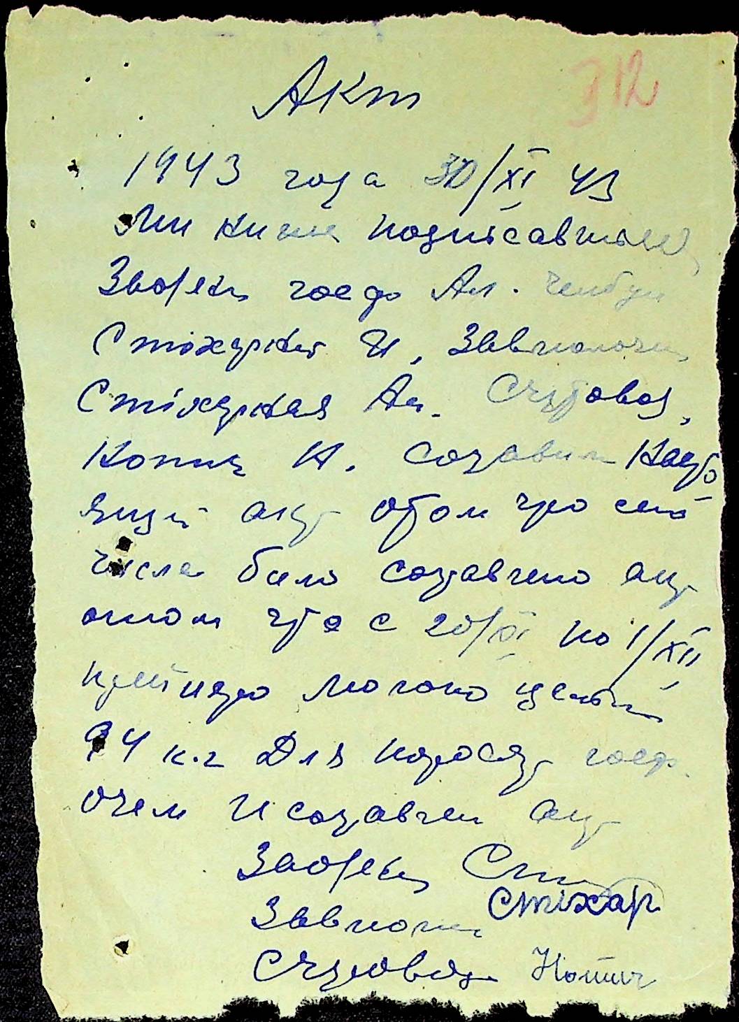 • • • • Справа № 34 “Відомості видавання продуктів робітникам і службовцям за 943 рік. Списки робітників-болгар, бессарабів і євреїв на 1943 рік”