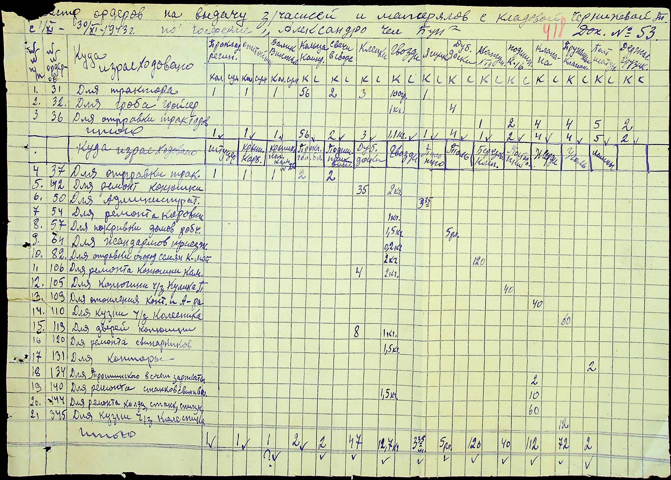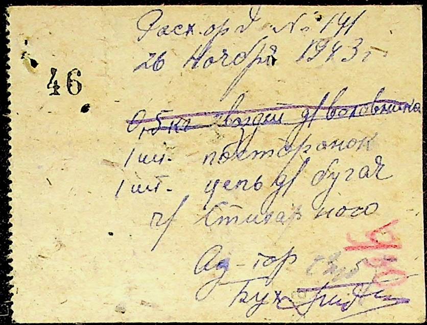 • • • • Справа № 34 “Відомості видавання продуктів робітникам і службовцям за 943 рік. Списки робітників-болгар, бессарабів і євреїв на 1943 рік”