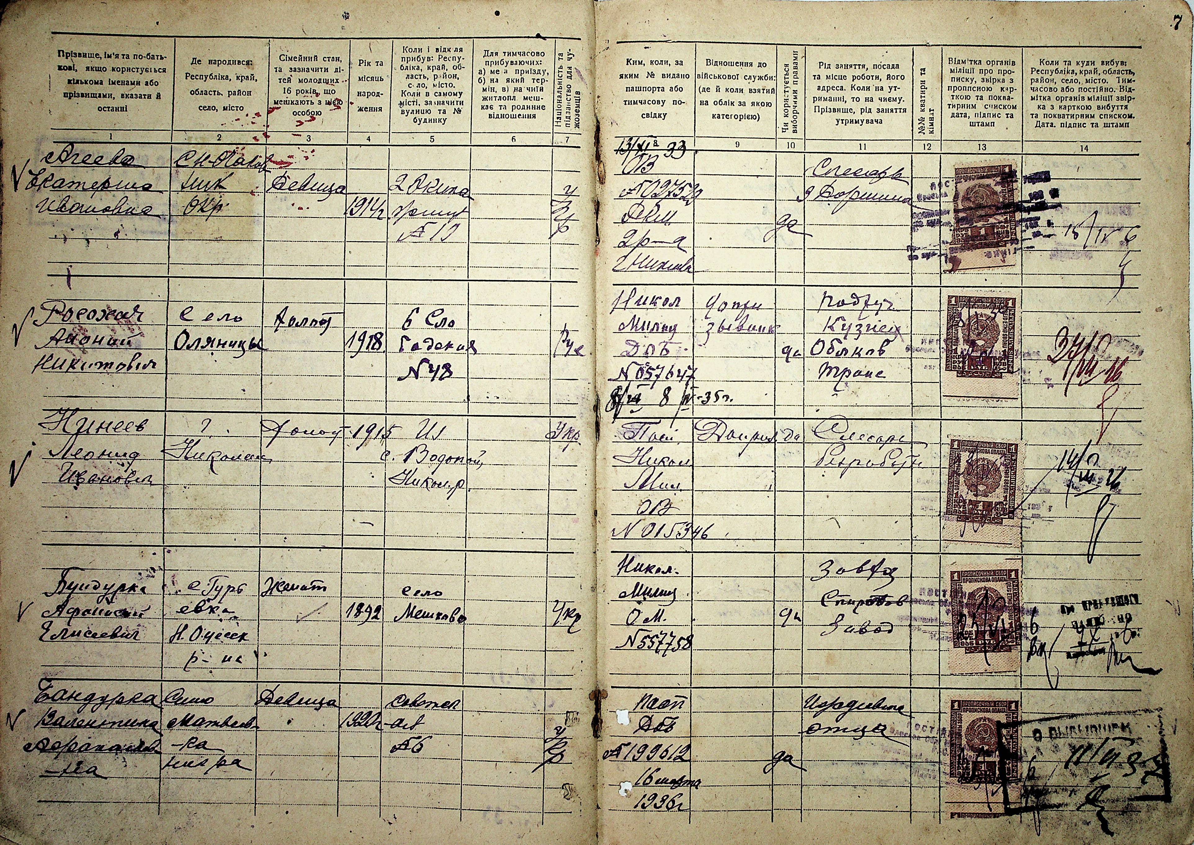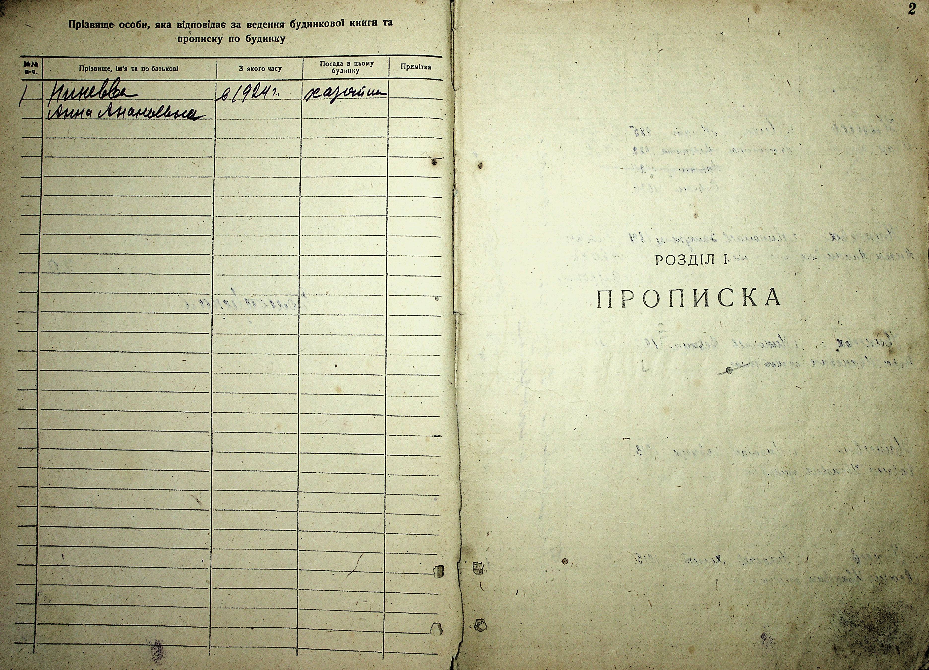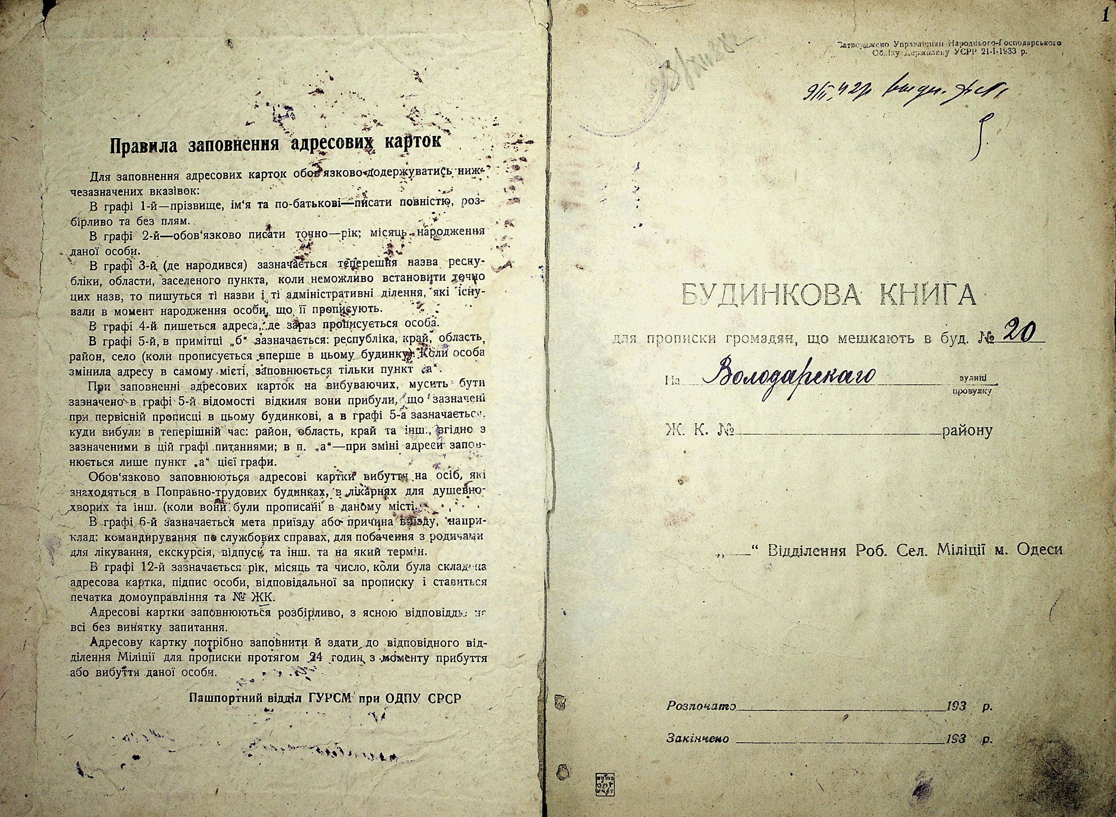 • • • • Справа № 15 “Будинкова книга для прописки громадян по вул. Володарського № 20”