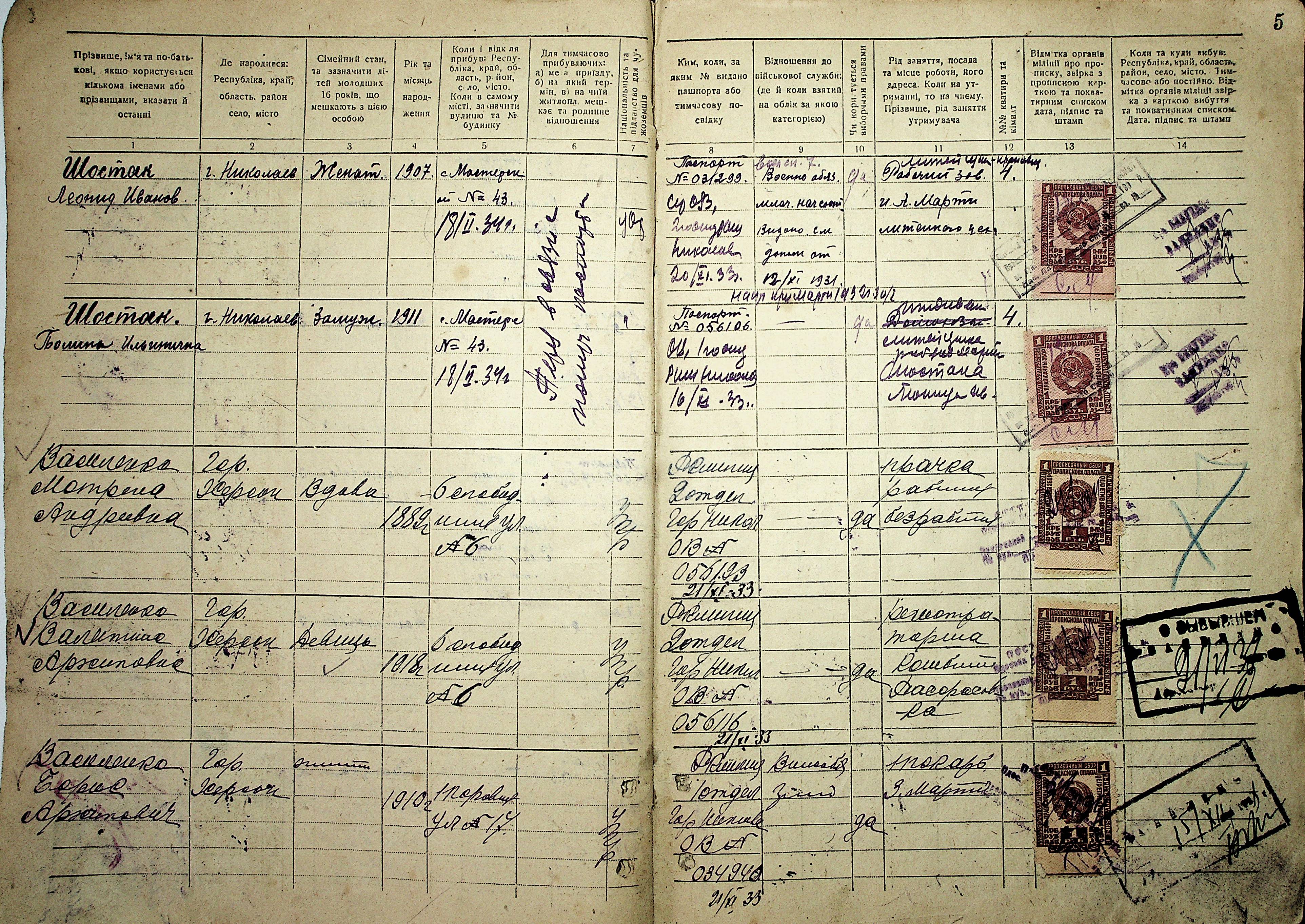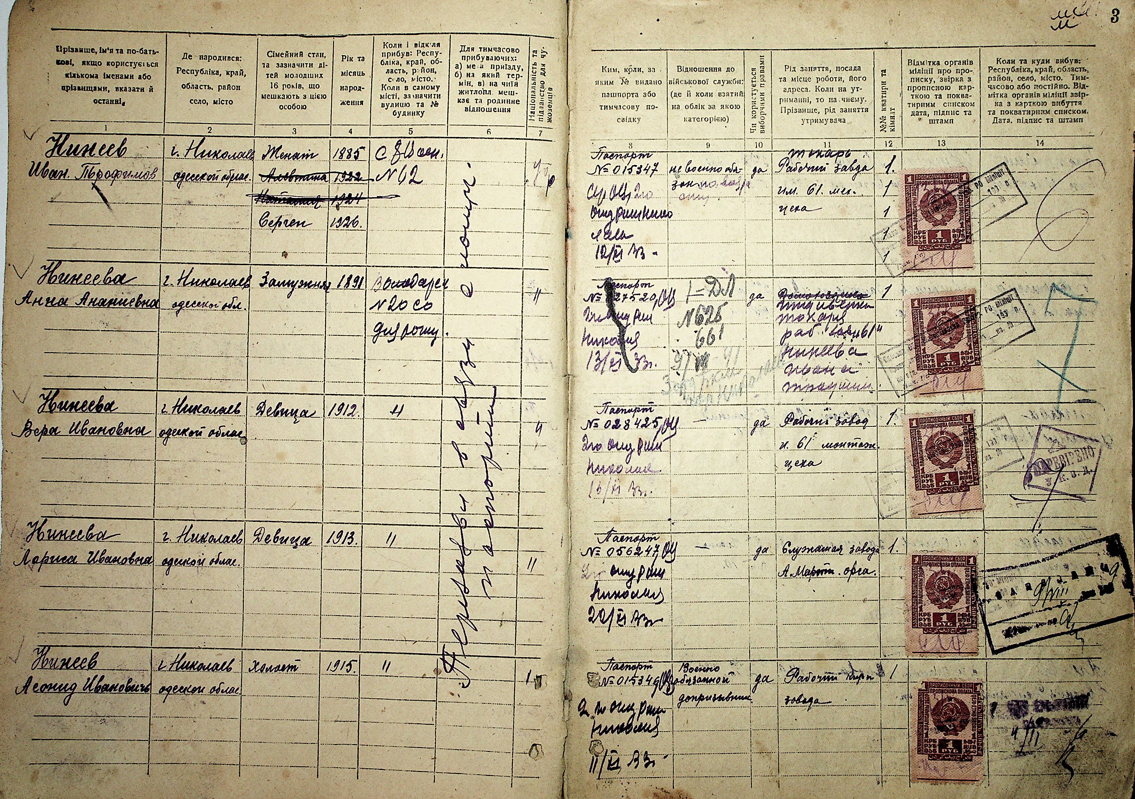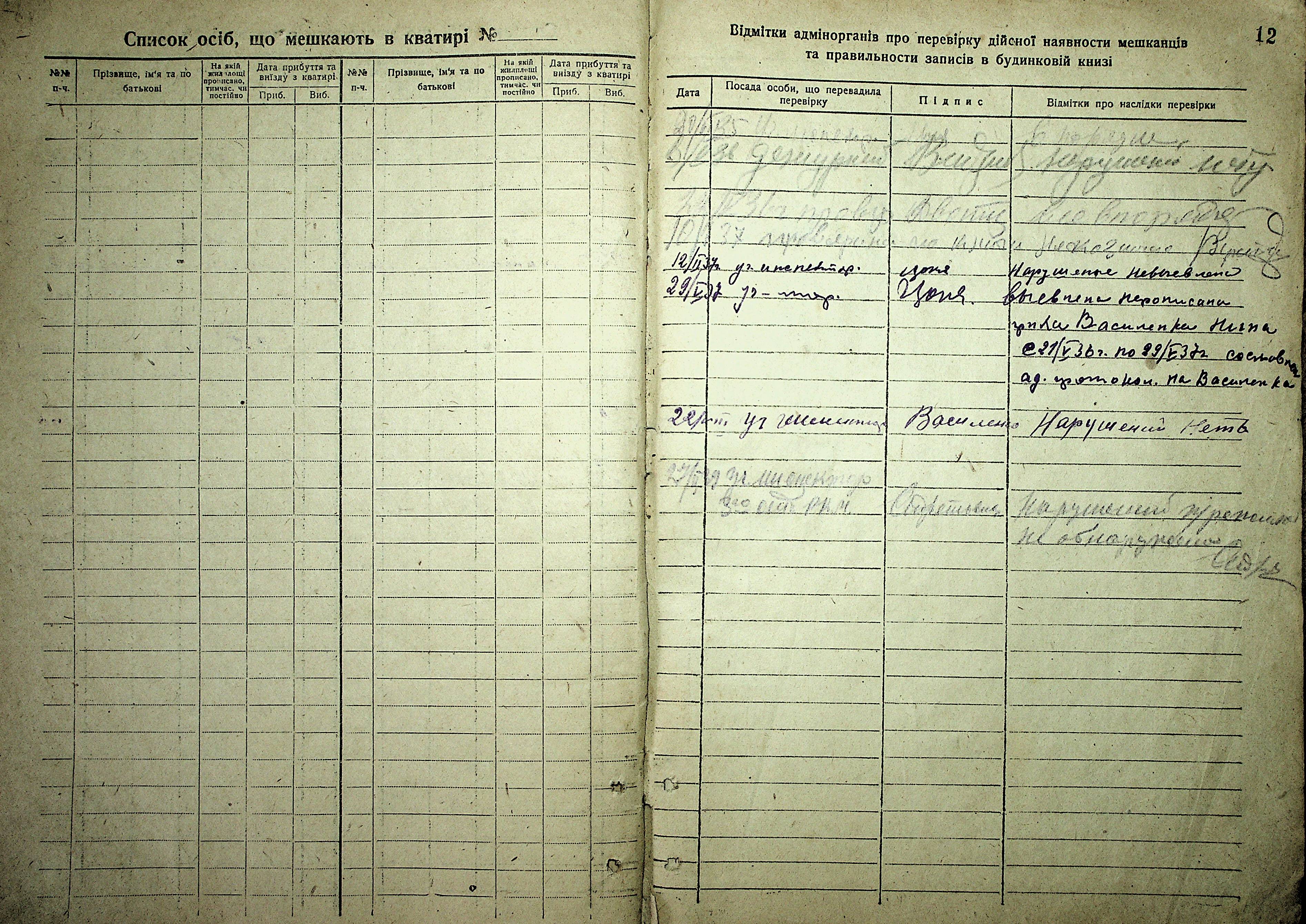 • • • • Справа № 15 “Будинкова книга для прописки громадян по вул. Володарського № 20”
