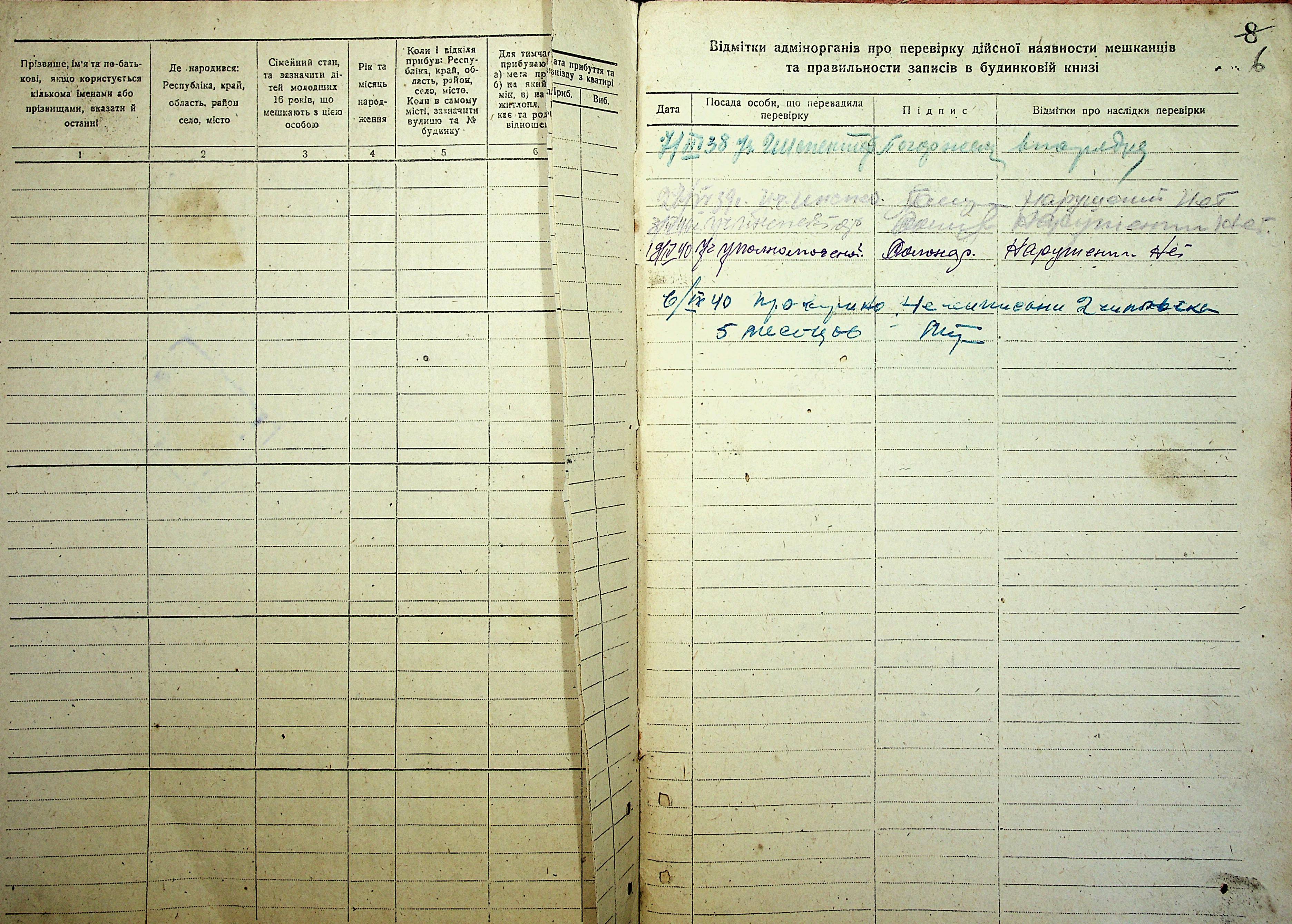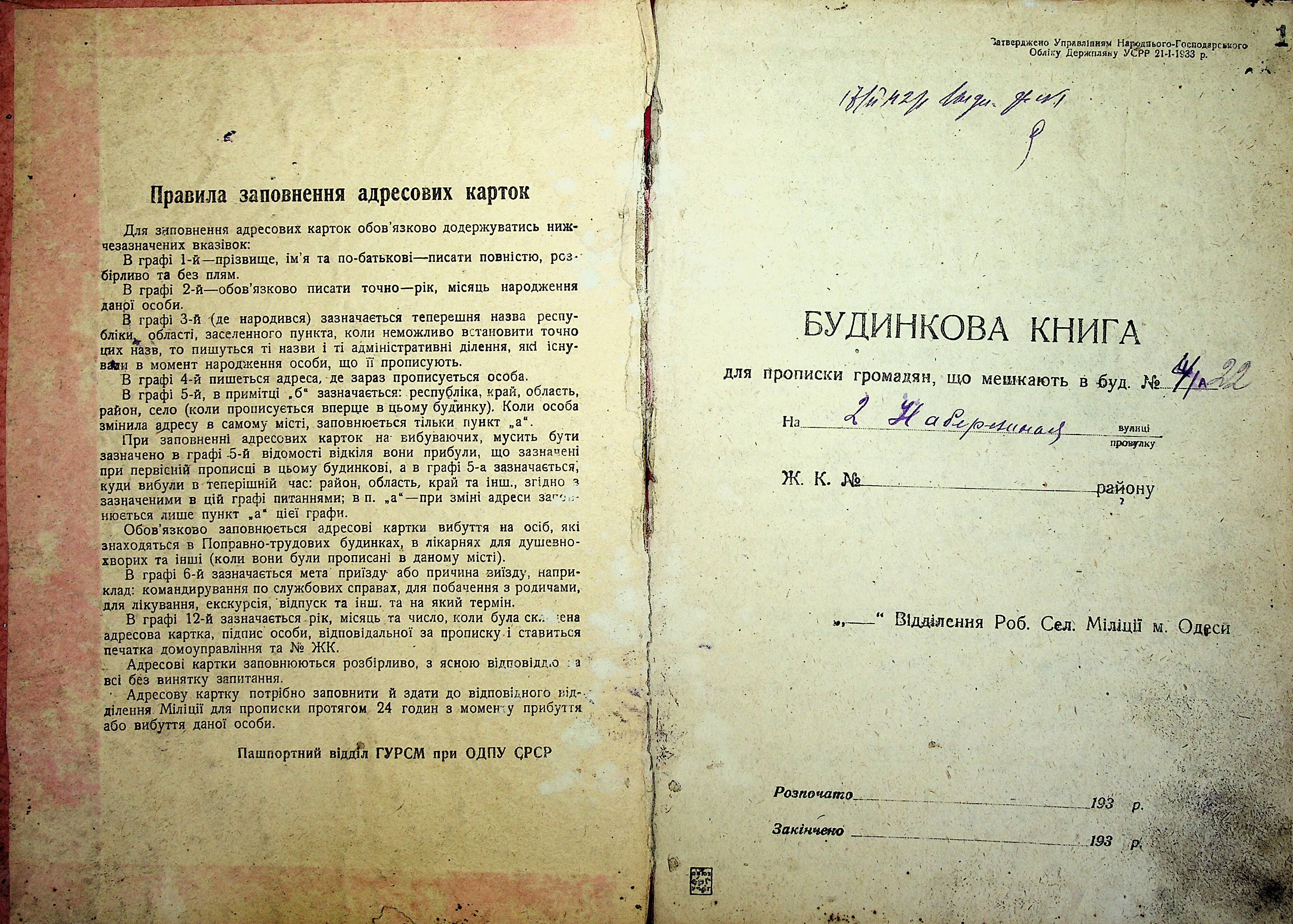• • • • Справа № 183 “Будинкова книга для прописки громадян по вул. 2-a Набережна № 22”