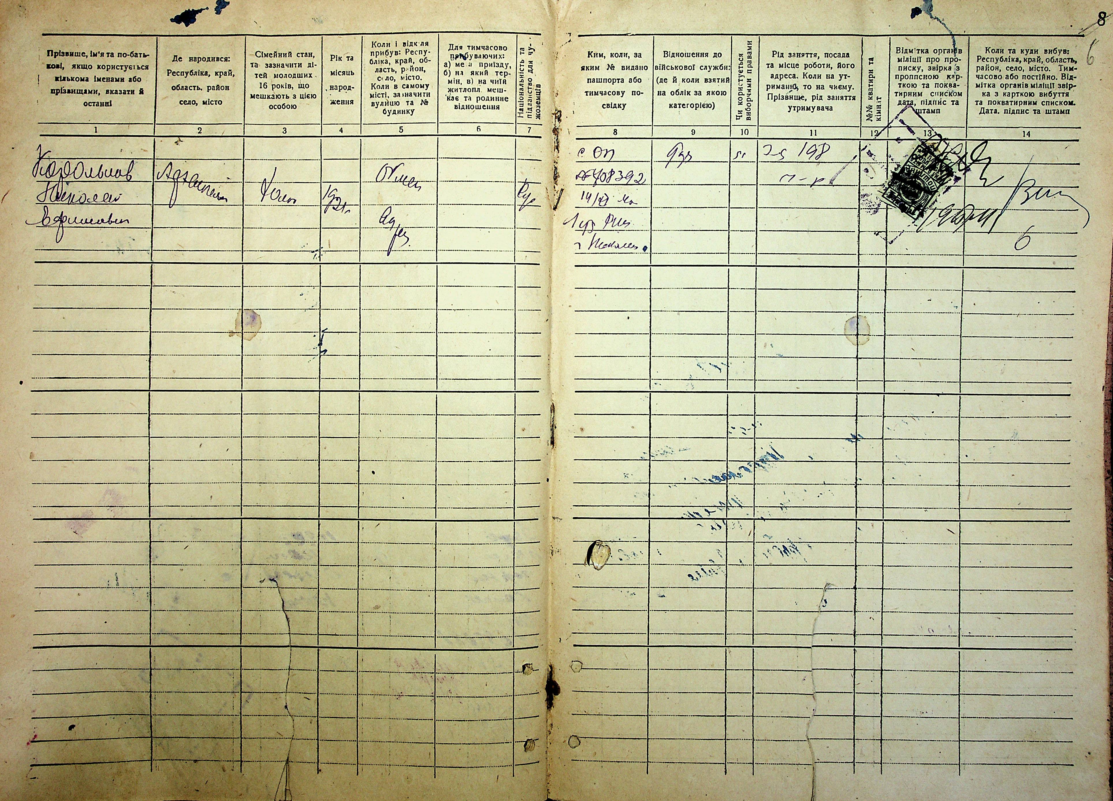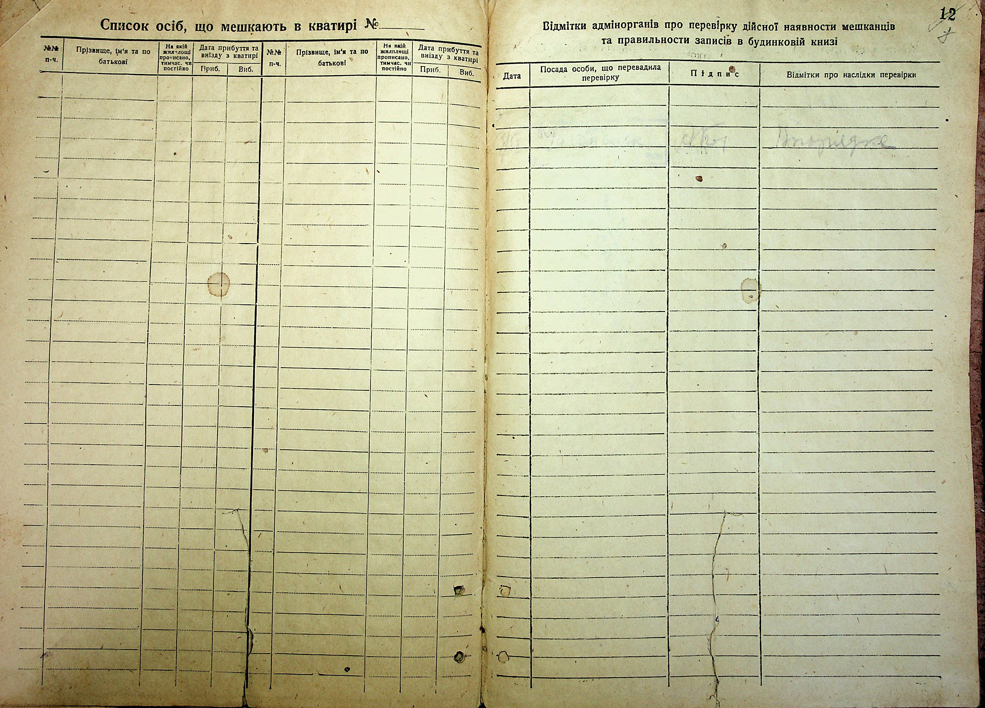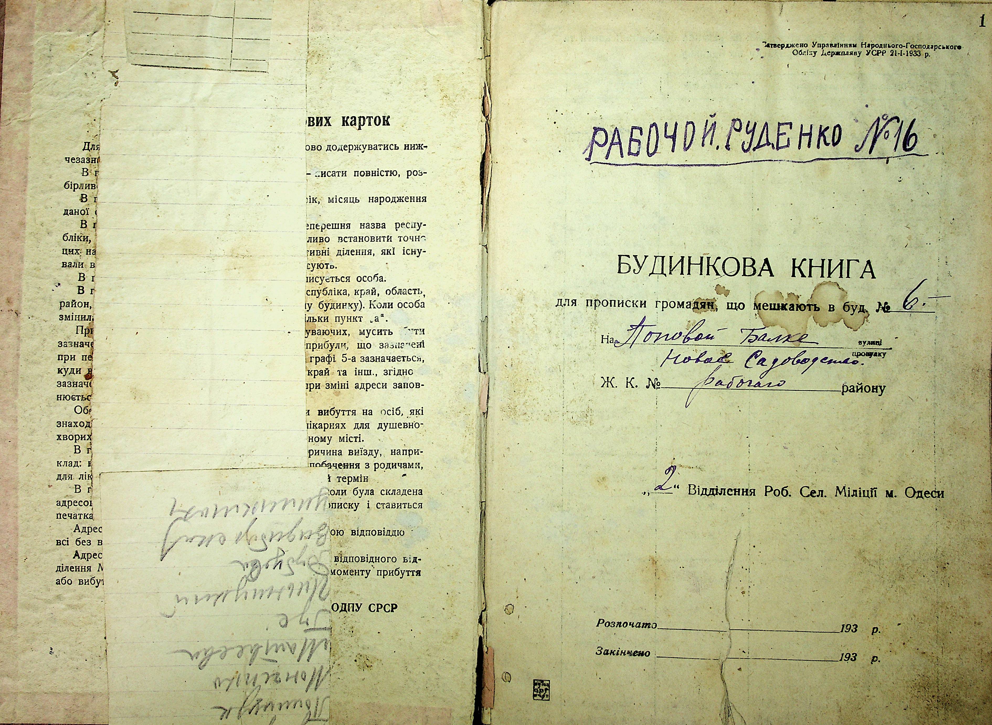 • • • • Справа № 457 “Будинкова книга для прописки громадян по вул. Робоче селище (Попова Балка) № 6”