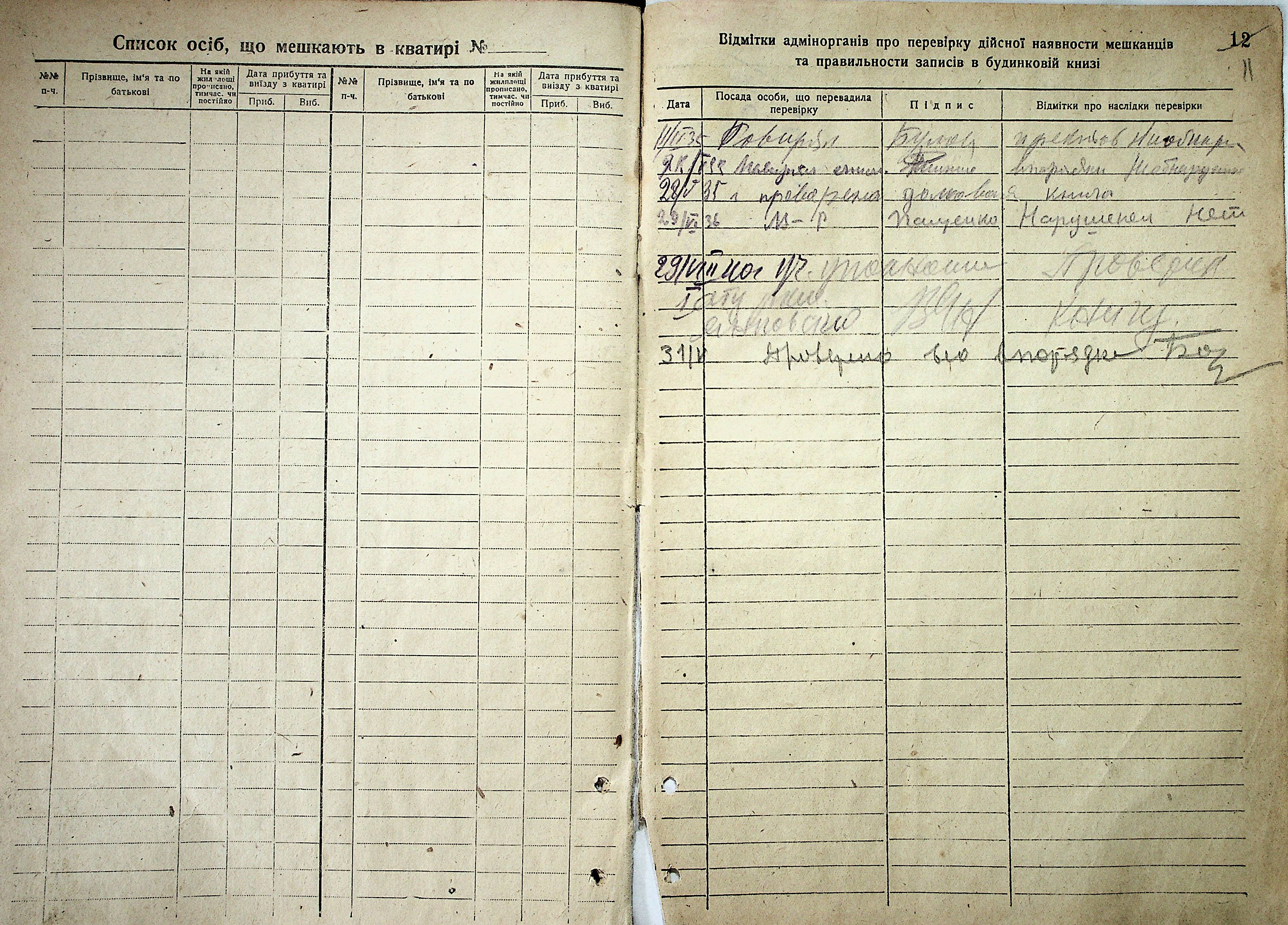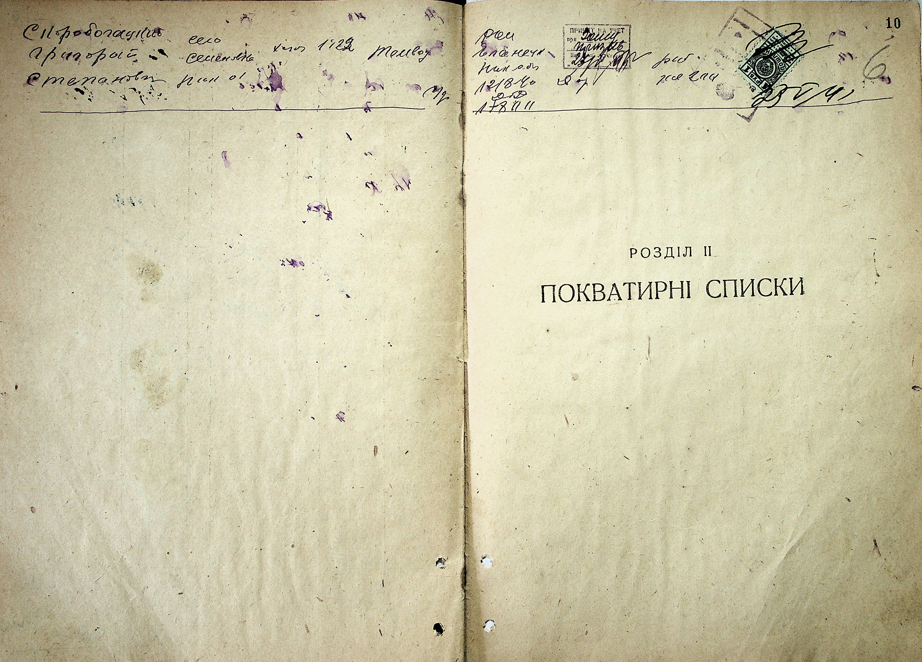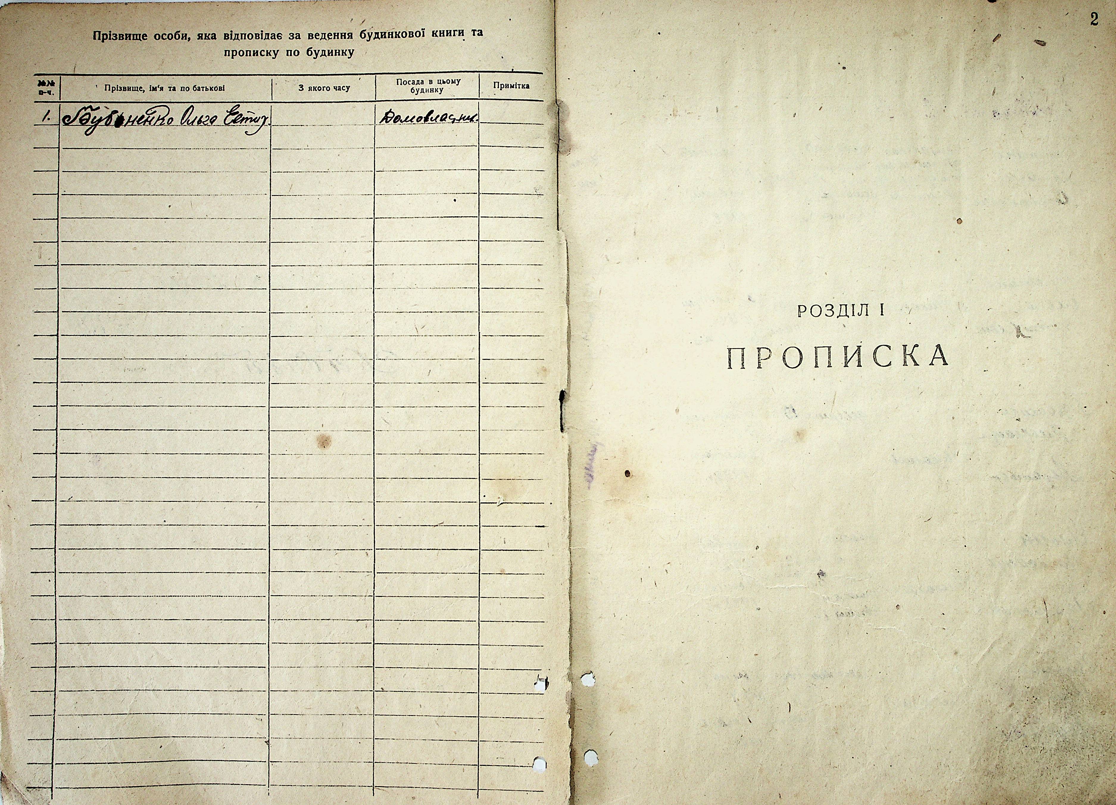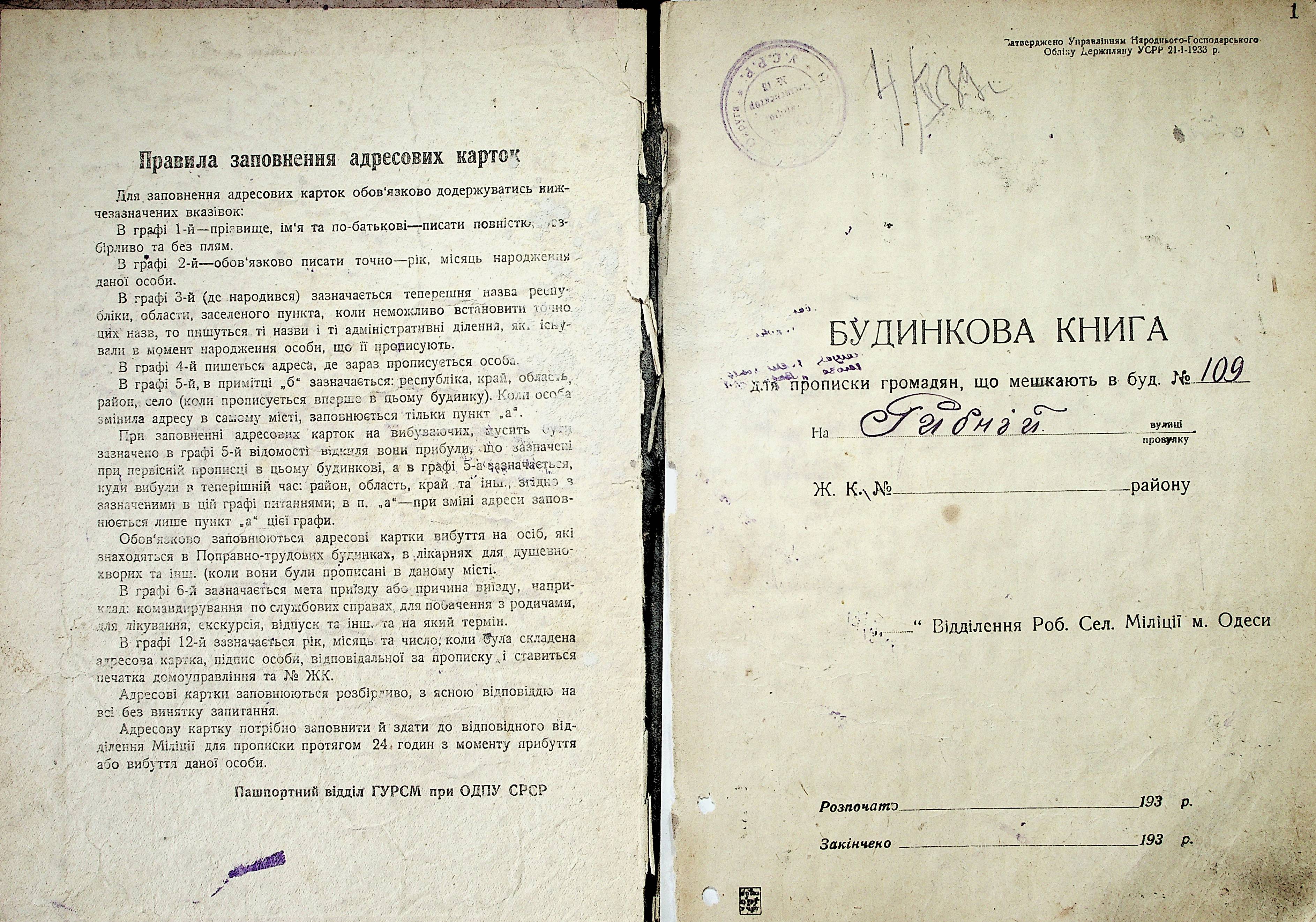 • • • • Справа № 774 “Будинкова книга для прописки громадян по вул. Рибна №109”