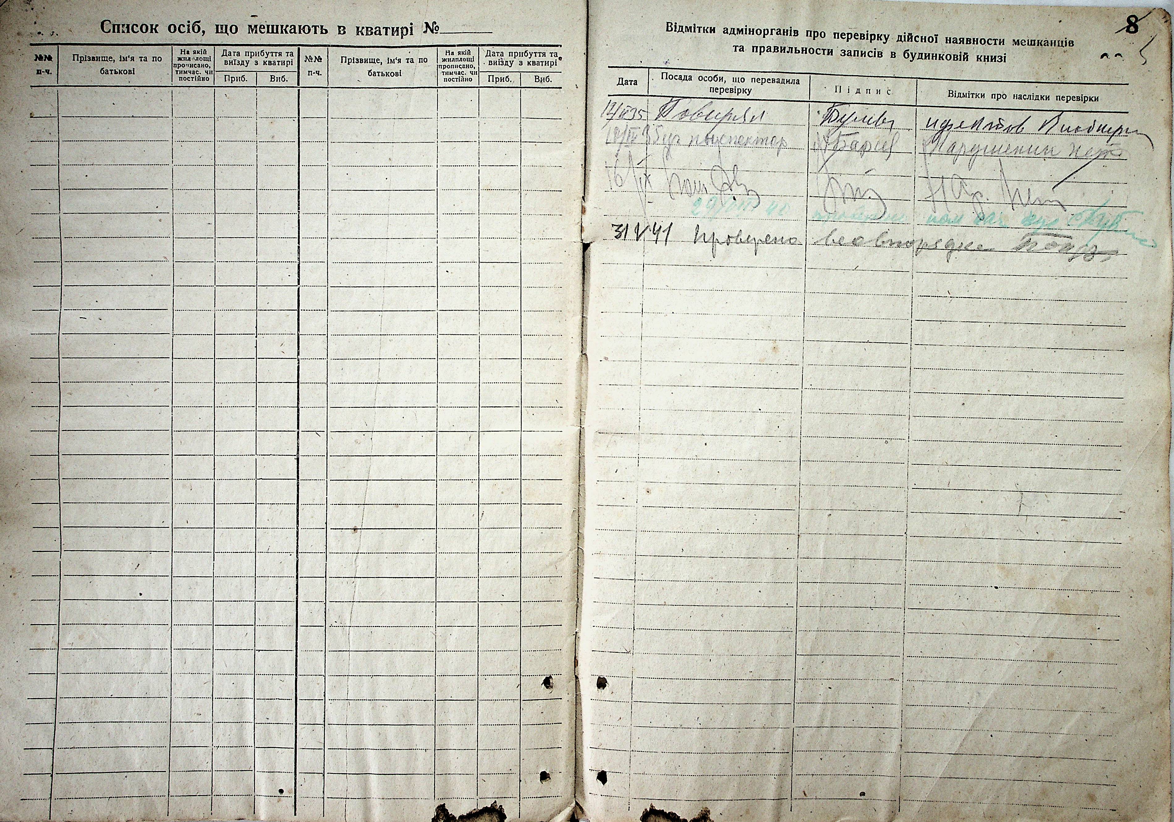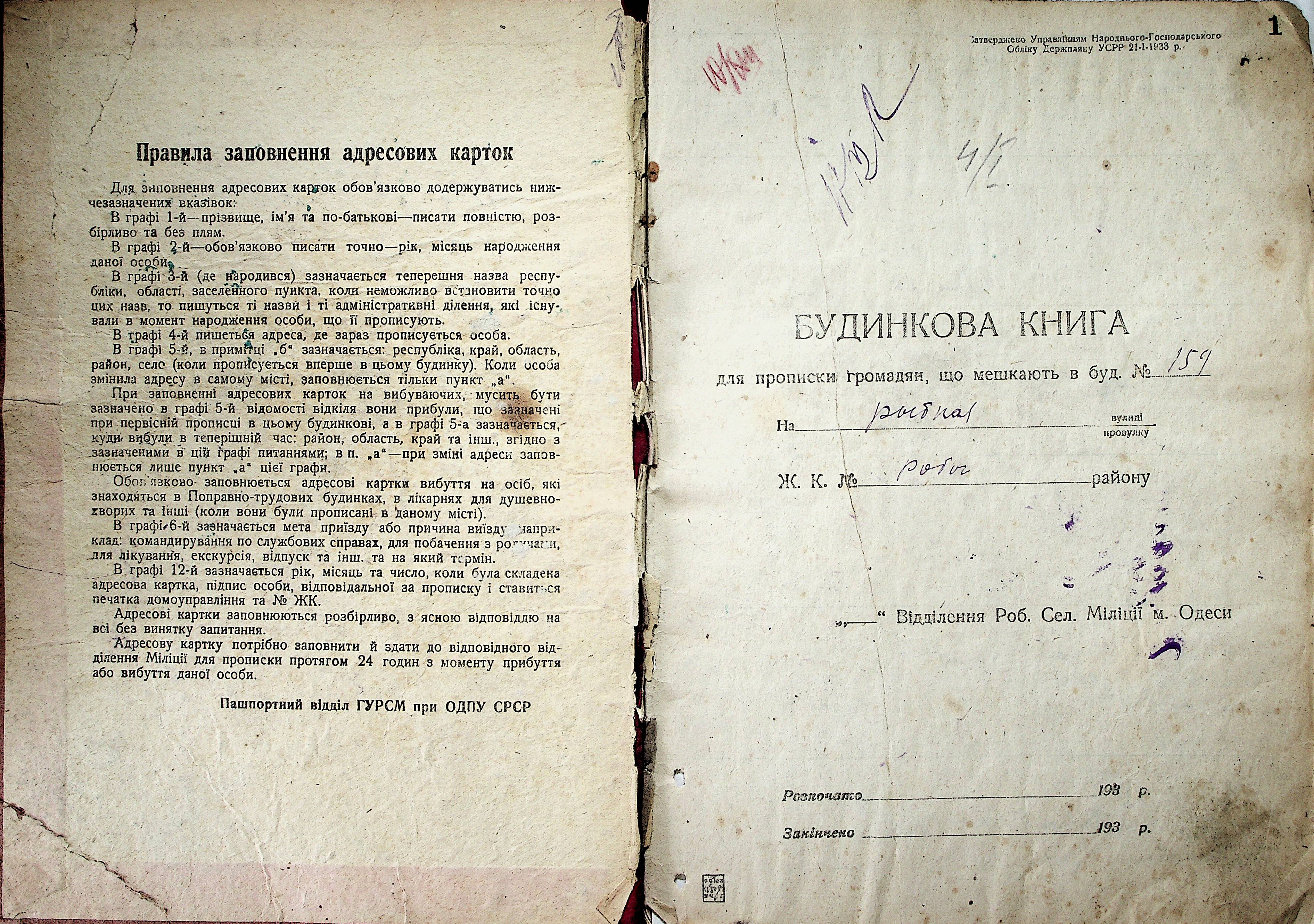 • • • • Справа № 800 “Будинкова книга для прописки громадян по вул. Рибна №159”