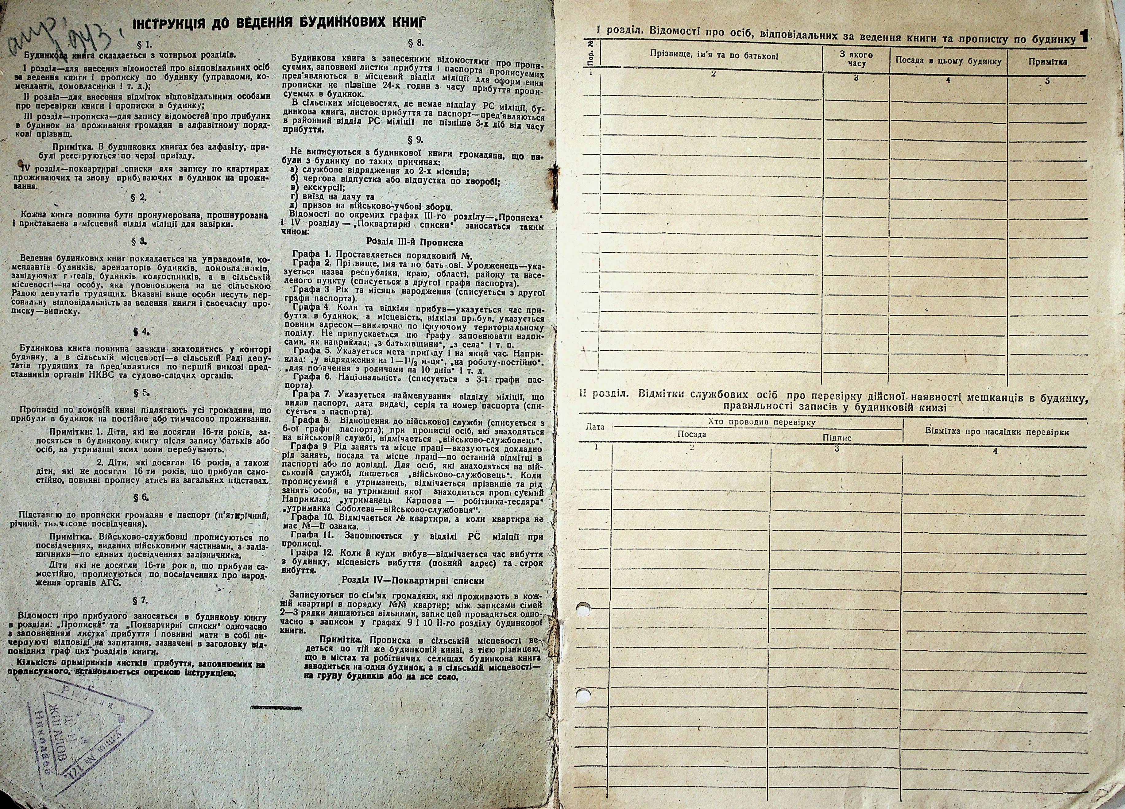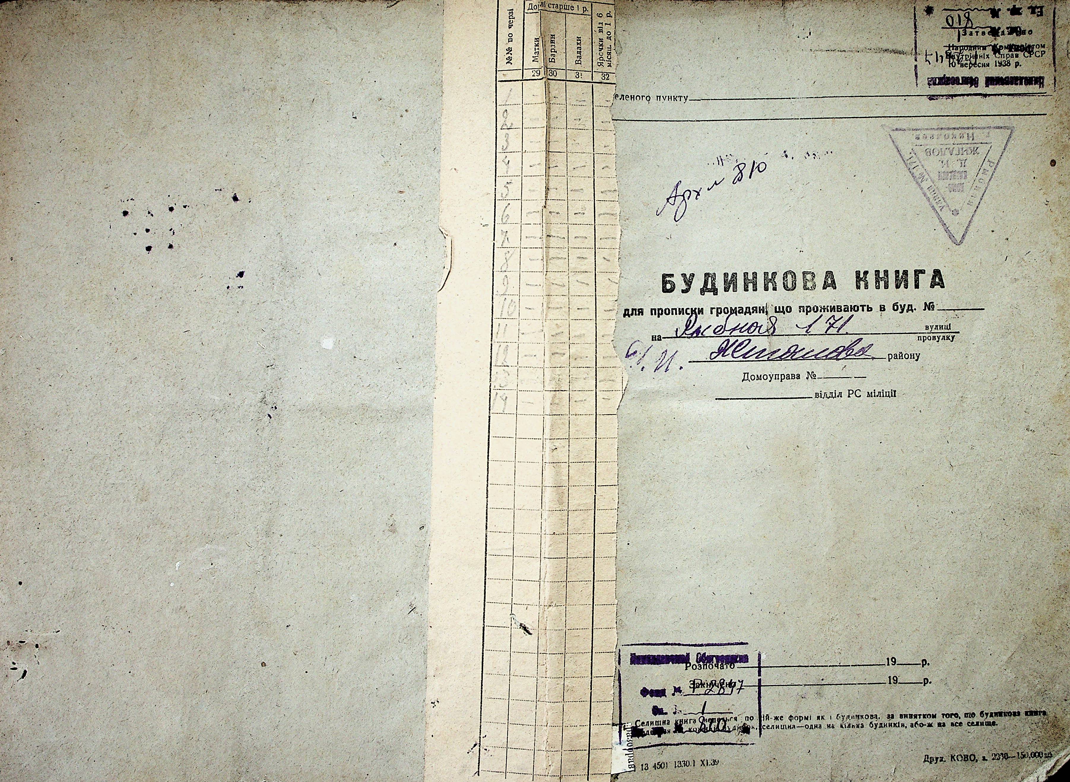 • • • • Справа № 810 “Будинкова книга для прописки громадян по вул. Рибна №171”