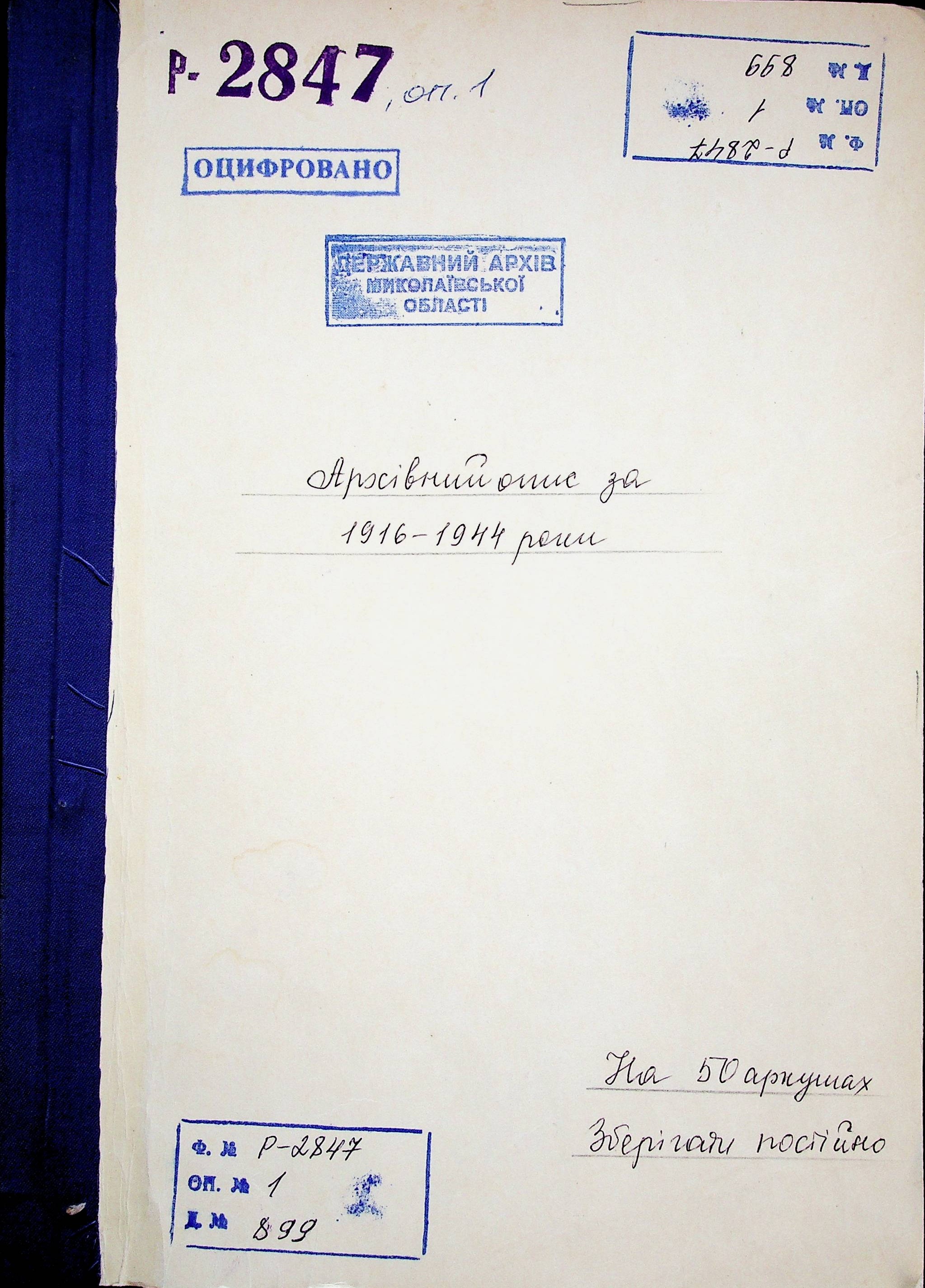 • • • • Справа № 899 “Архівний опис за 1916–1944 роки”