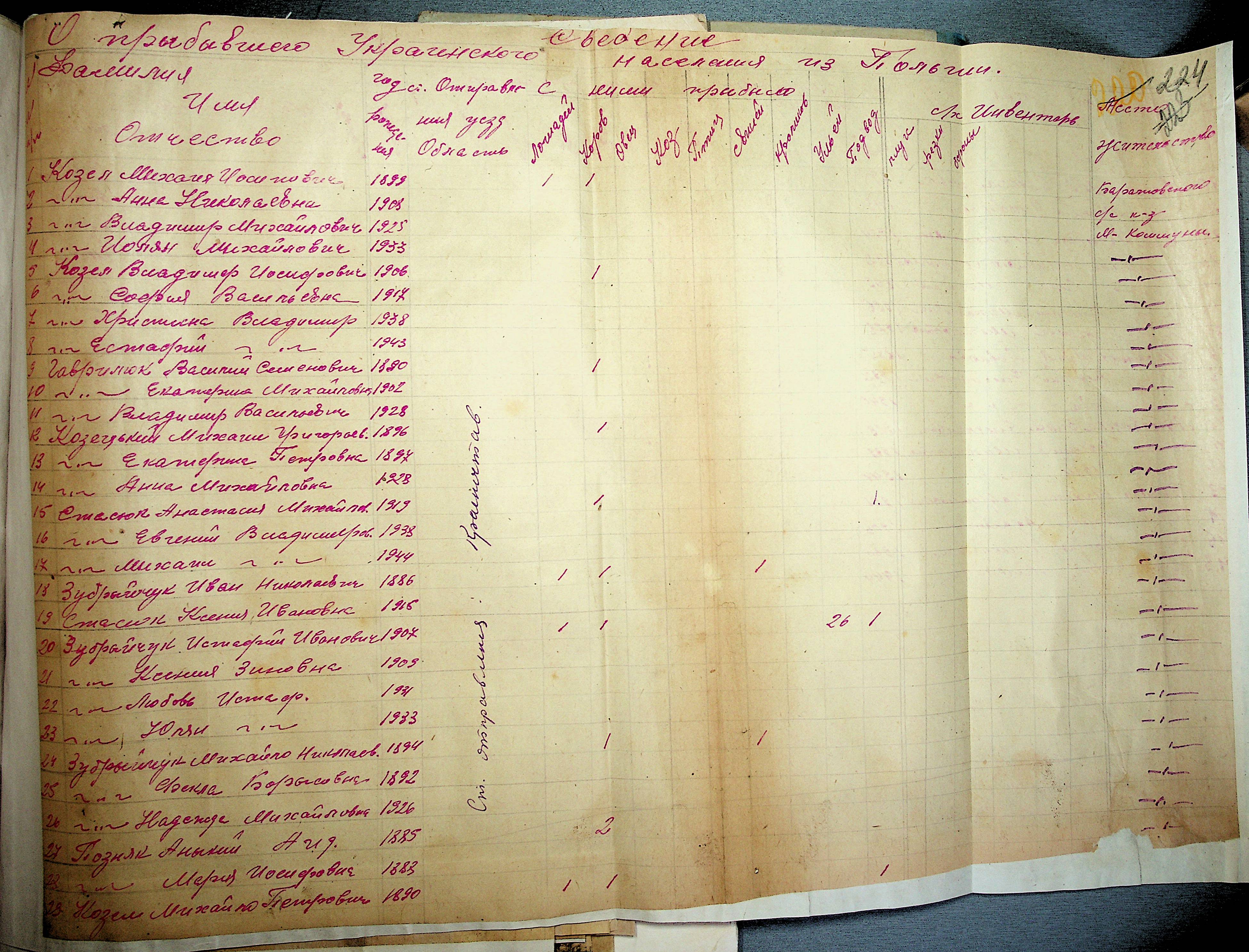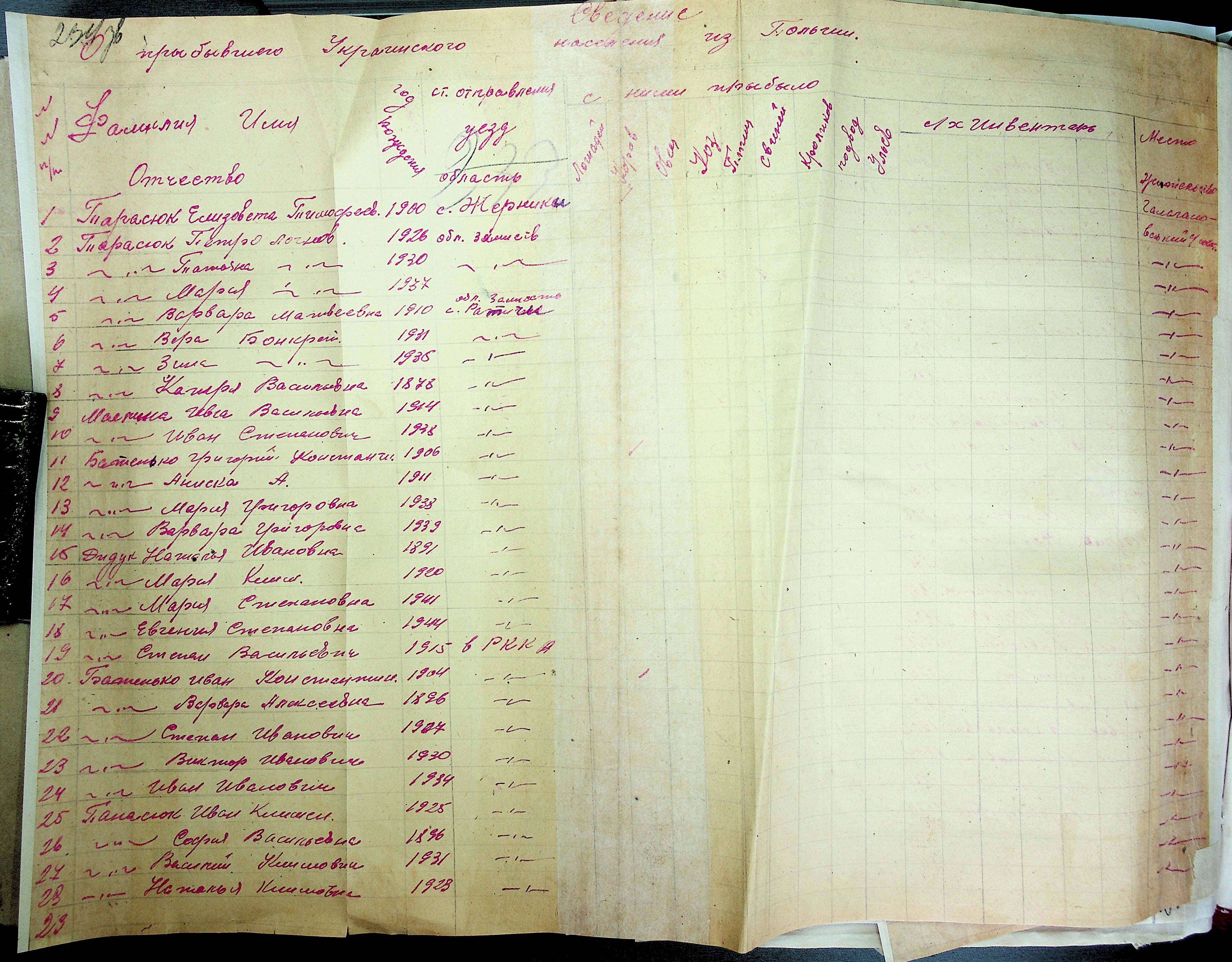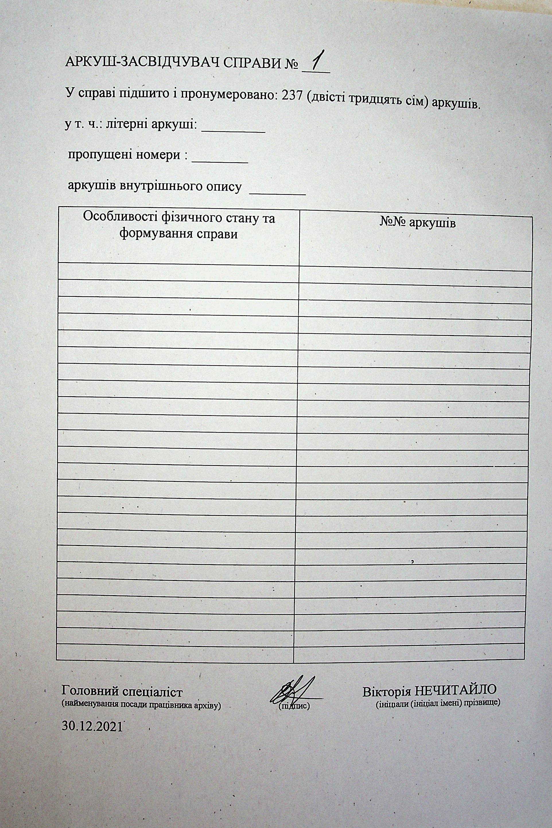 • • • • Справа № 1 “Документи (списки, відомості, переліки, листування) про евакуйовані українські сім’ї та господарства з Польщі, українців-переселенців, які прибули з західних областей УРСР, українських та білоруських громадян, які прибули з Казахстану до Миколаївської області на постійне місце проживання; про посіви, залишені в Польщі, кількість і наявність зернових, реманенту та худоби, привезених переселенцями”